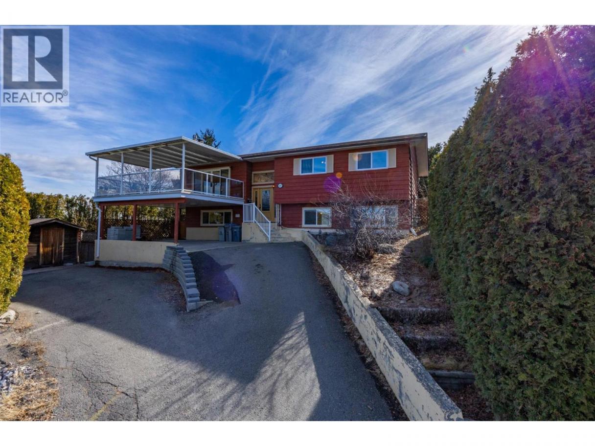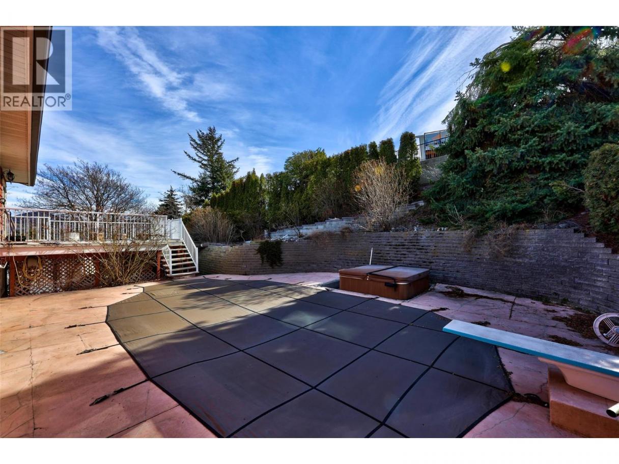 Located on a desirable Sahali cul-de-sac, this beautifully maintained home perfectly blends character and comfort with stunning city, valley, and mountain views. The open-concept main floor features custom cabinetry, refinished hardwood, updated trim, and fresh paint. Major updates provide total peace of mind, including a 3-year-old roof, windows and sliding doors replaced within 3–5 years, and a 1-year-old heat pump for efficient year-round comfort. The 4-bedroom, 3-bathroom layout offers great flexibility for generational living, featuring a bright kitchen that connects seamlessly to the dining area with easy access to both front and rear outdoor spaces. The lower level includes two additional bedrooms, a spacious family room, and a separate entrance—offering excellent future suite potential. The outdoor oasis is a true standout, designed for both relaxation and play. Enjoy the inground pool (with a liner, filter, and heater updated within 6 years), a year-round hot tub, and a private kids' fort sheltered beneath a massive tree. The yard is a gardener’s delight, featuring grape vines, a kiwi bush, raspberries, and strawberries, all supported by underground sprinklers. Practicality meets lifestyle with a dedicated pool shed, a tool shed, and a fenced ""doggy den"" for your pets. Whether you are hosting on the large front deck or enjoying the private, mature backyard, this home combines extensive updates and premium amenities in an ideal central setting. (id:6769)