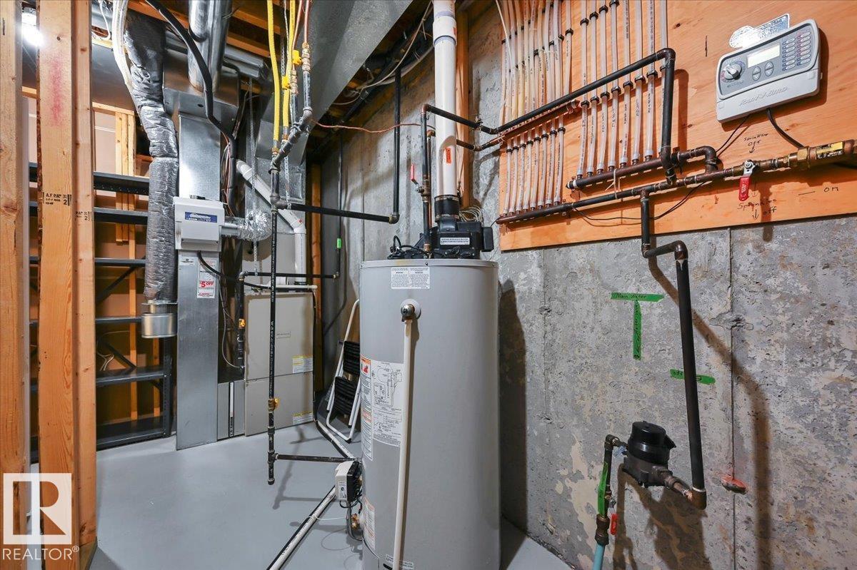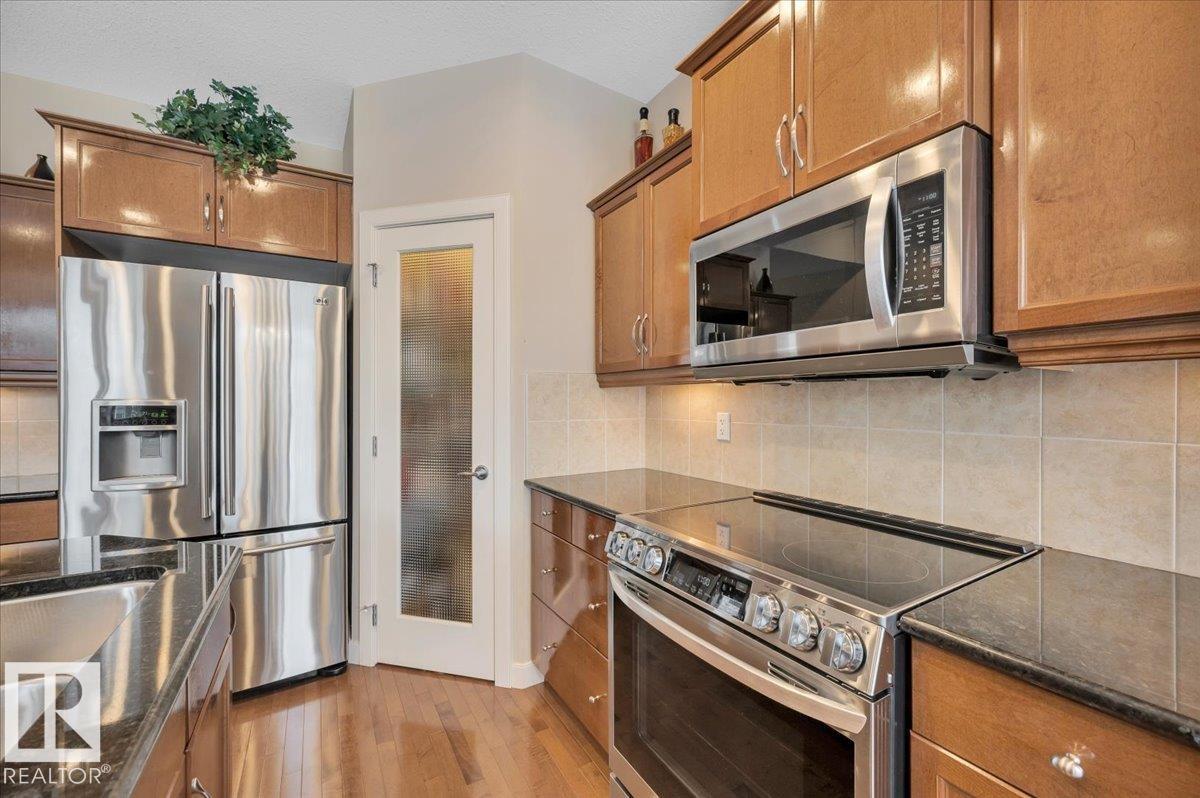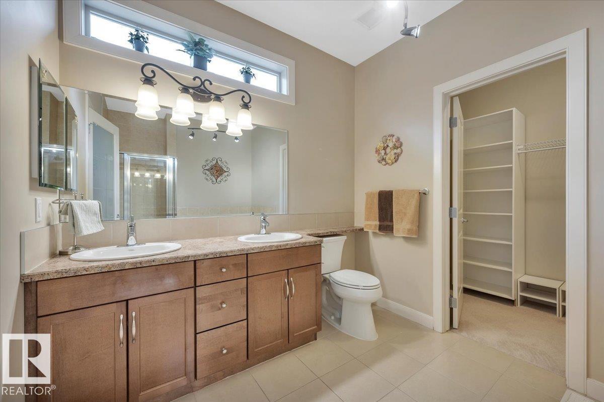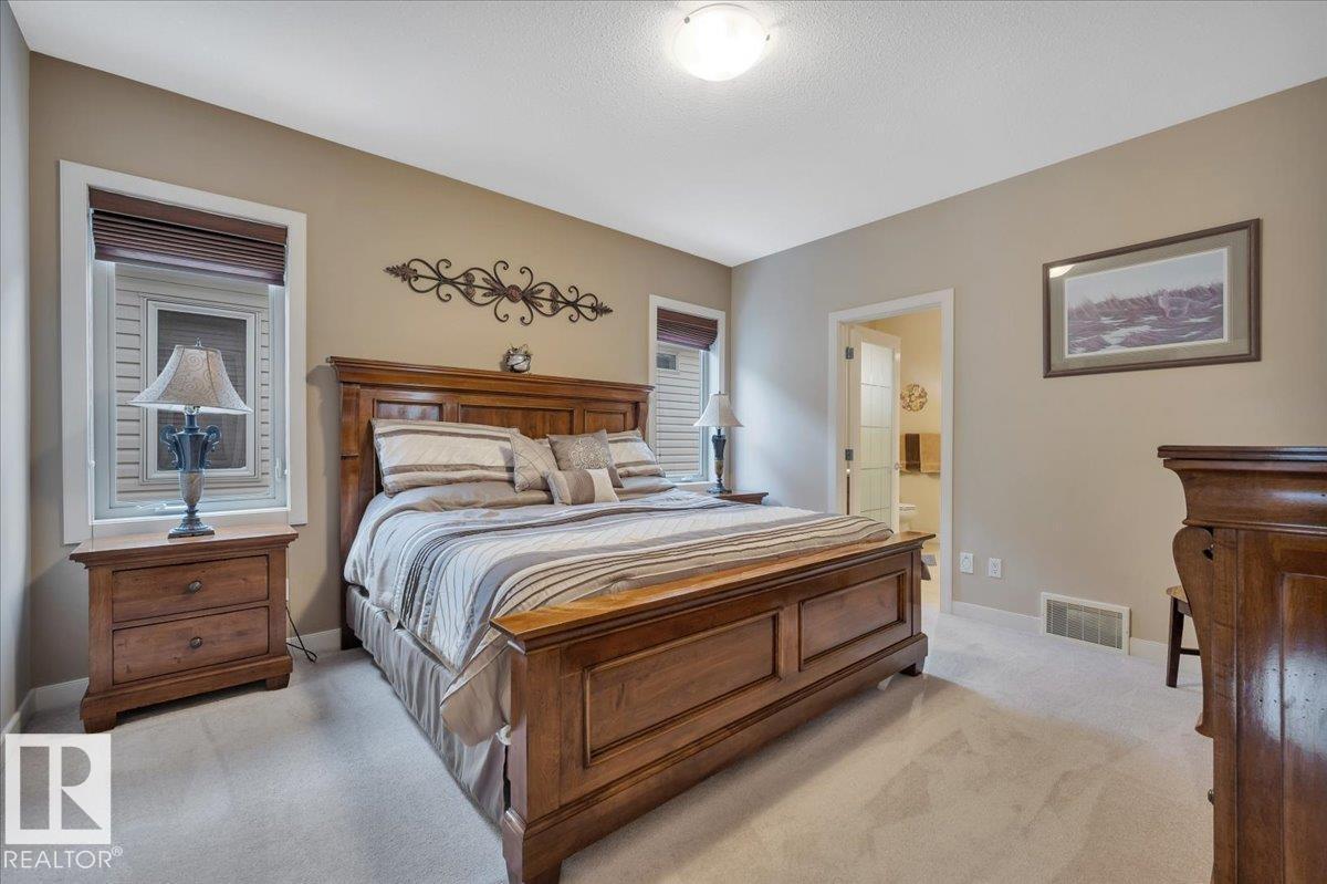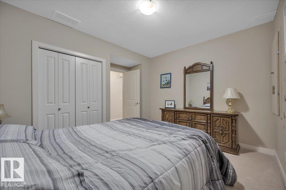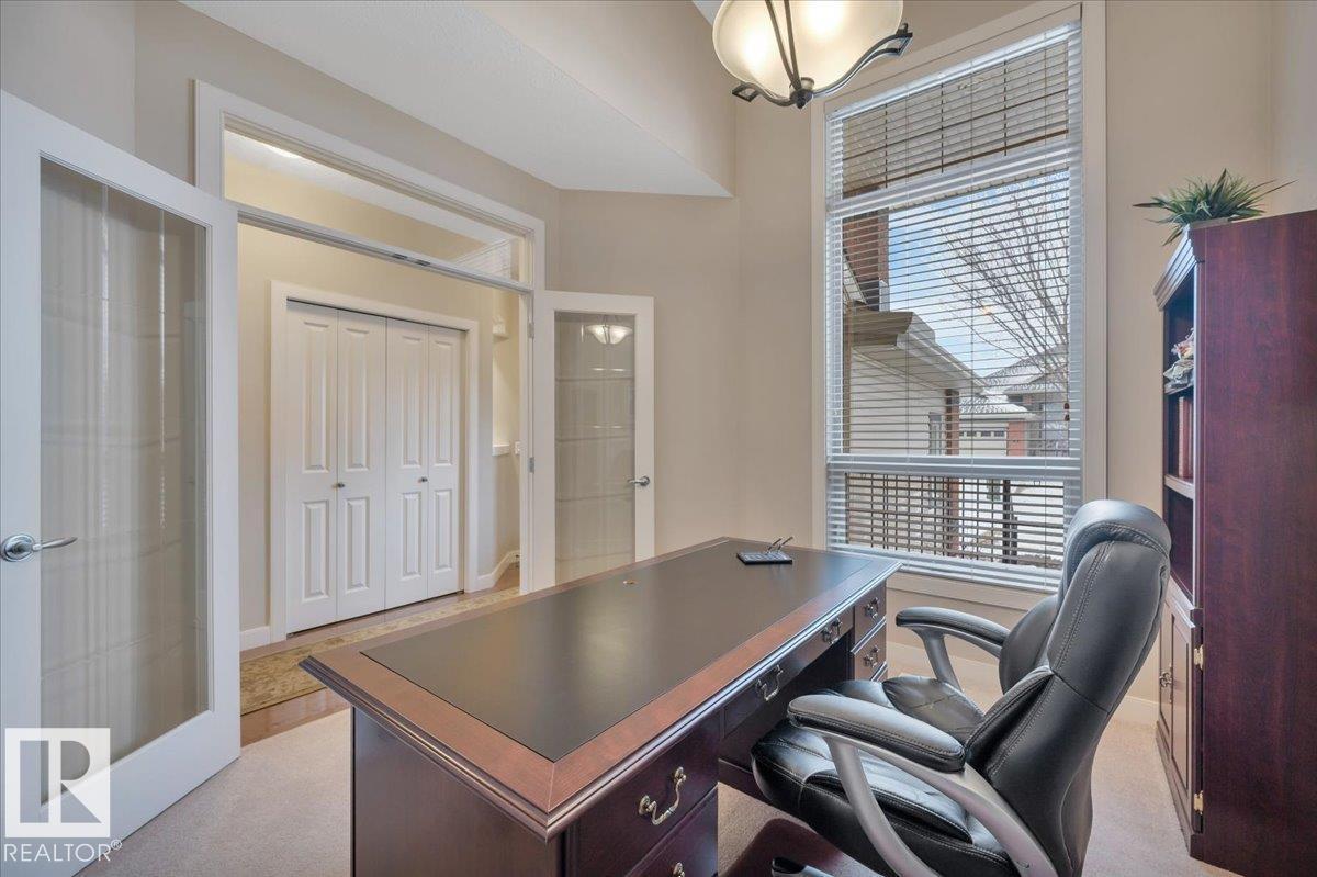 Welcome to BRINDAVAN ESTATES! The perfect retirement community consisting of half duplex bungalows situated in a private setting with only local traffic, adjacent to a large pond which attracts ducks & a variety of birds. This A/C home has an open design with high ceilings & huge windows allowing plenty of natural light. Spacious living/dining room with gas fireplace, hardwood floors, gorgeous kitchen with island, granite counters, stainless steel appliances & walk-in pantry. The den offers privacy with French doors, the primary bedroom has a 5 piece ensuite and walk-in closet. Additional guest bathroom & laundry room complete the main floor. Excellent basement development perfect for out of town guests with two bedrooms, 4 pce bath, big recreation area with second gas fireplace, wet bar & fridge plus a hobby room & plenty of storage. In summer enjoy BBQs on the large deck & take leisurely walks on the trails nearby. Quick access to shopping & Anthony Henday Dr. You'll love the easy lifestyle here! (id:6769)