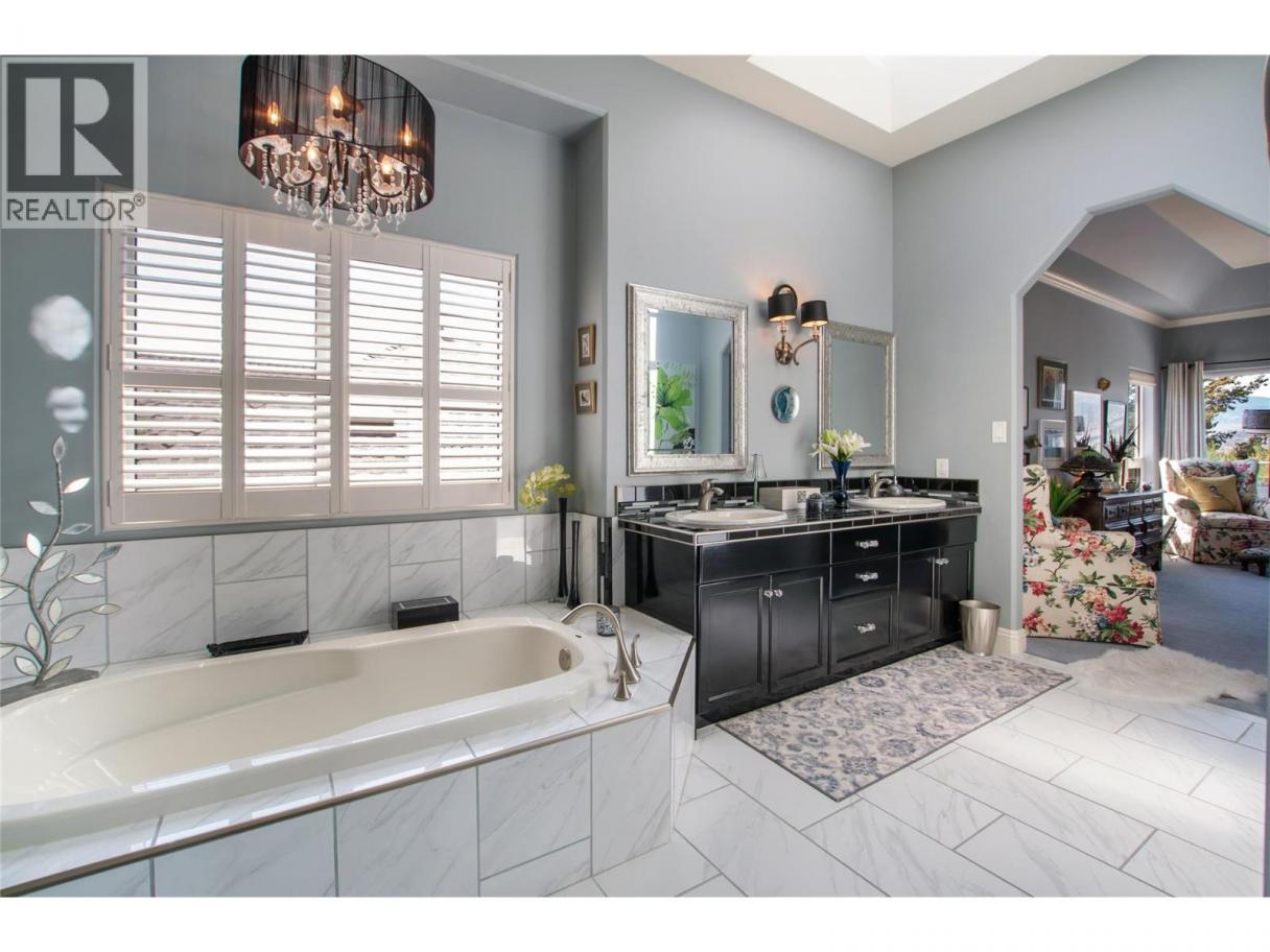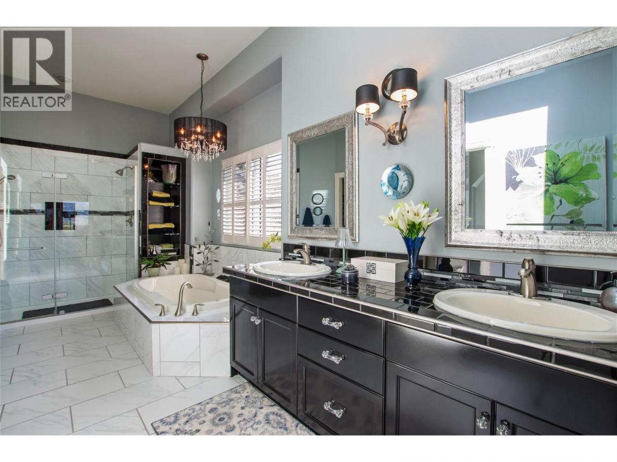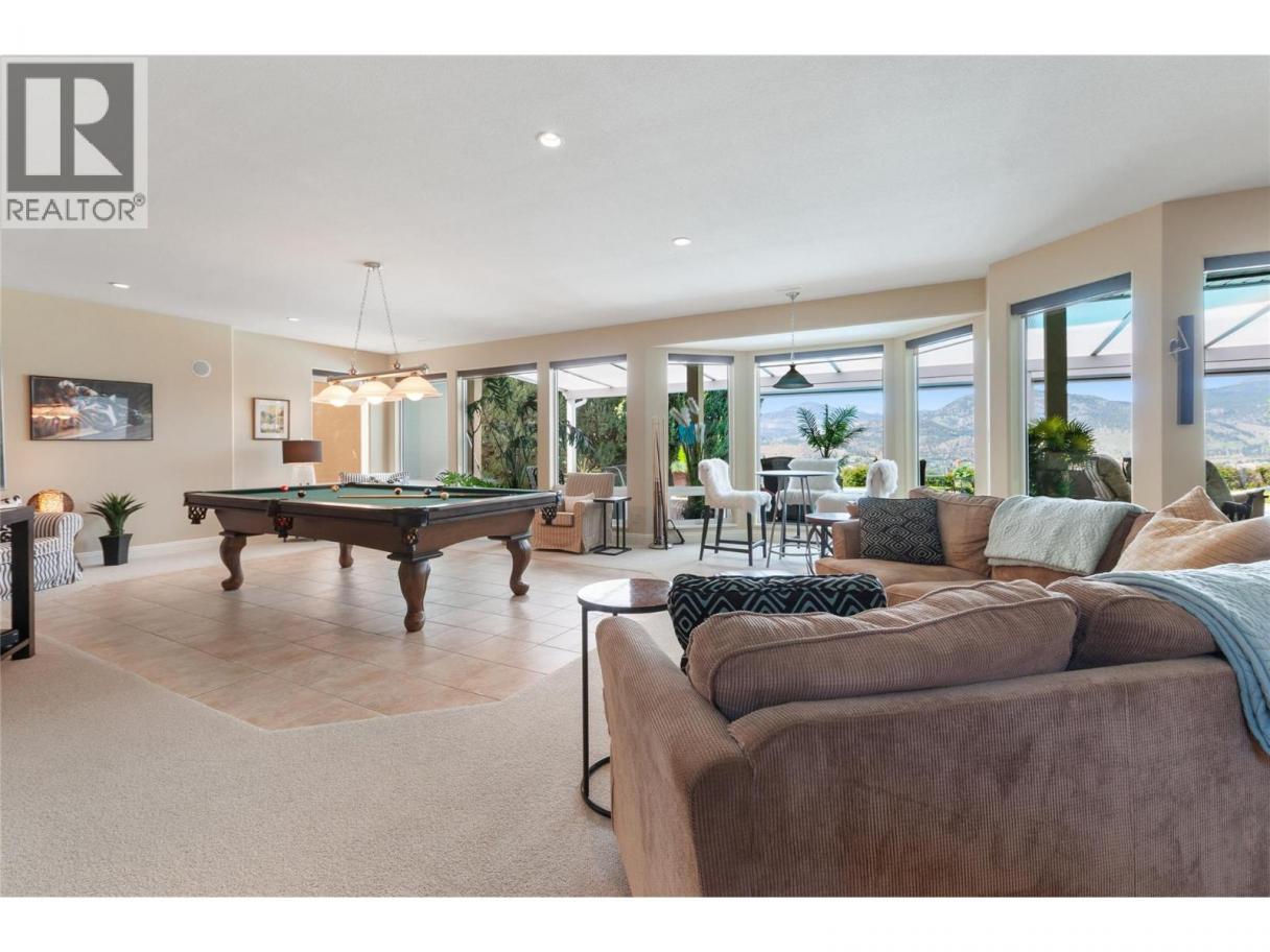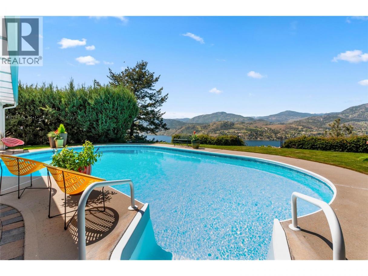 CLICK TO VIEW VIDEO! You have to come see this Heritage Hills executive home with stunning lake views & your own saltwater pool - an absolute outdoor entertainer's dream! With stunning curb appeal & over 4,000 sq.ft. interior living footprint, you are drawn into the big, bright open space of the living area that extends to a large upper deck to enjoy the breathtaking views of Skaha Lake. All living is on the main floor with 2 bedrooms and a primary bedroom that is spacious & complemented by a 5pc ensuite that feels more like a spa. There are two additional magic spots: first, it's a large covered outdoor living area that flows seamlessly from a massive family room downstairs to the swimming pool area and deck. The entire wall of glass windows on the lower level and the staircase leading to it will remind you of a Palm Springs architectural design. It's easy to feel like a rockstar when you're entertaining in that space. The second: a 832 sq.ft. garage with custom cabinets that is perfect for a car collector or a wicked man-cave. Plenty of parking. New HWT. Light cement shingles that will last a lifetime. This is a premier neighbourhood where homes don't often come up for sale. Call us to book a showing. (id:6769)
