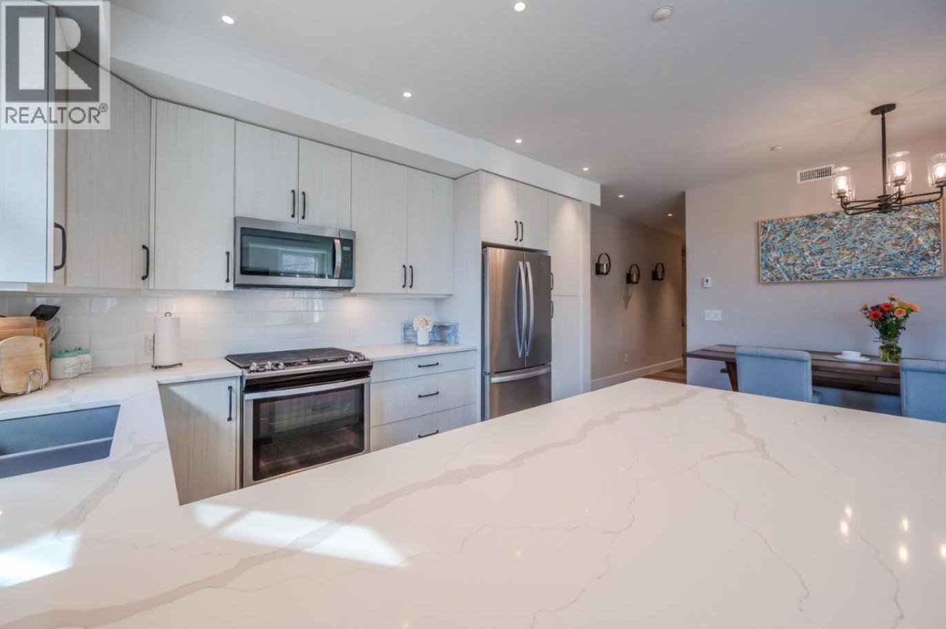 Welcome to elevated downtown living!! The bright and beautifully positioned corner two-bedroom, two-bathroom home in one of Penticton’s most desirable modern residences. Bathed in natural light from its south-east exposure, this thoughtfully designed suite offers a warm, inviting atmosphere from the moment you step inside. Perfectly located in the heart of the city, you’re just steps from Okanagan Lake, sandy beaches, the farmers market, and an incredible selection of local cafes and restaurants. The open-concept layout is ideal for both everyday living and entertaining, featuring a stylish kitchen with quartz countertops, stainless steel appliances, and a gas range that anchors the space. Enjoy your morning coffee or evening unwind on the private balcony complete with a natural gas BBQ hookup. With secure entry, low-maintenance living, and pet and rental flexibility (with restrictions), this home is perfectly suited for full-time living, a lock-and-leave lifestyle, or investment. Opportunities like this corner unit don’t come up often, experience the best of Penticton living today. (id:6769)