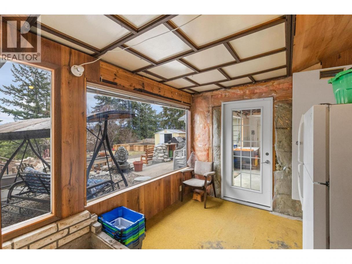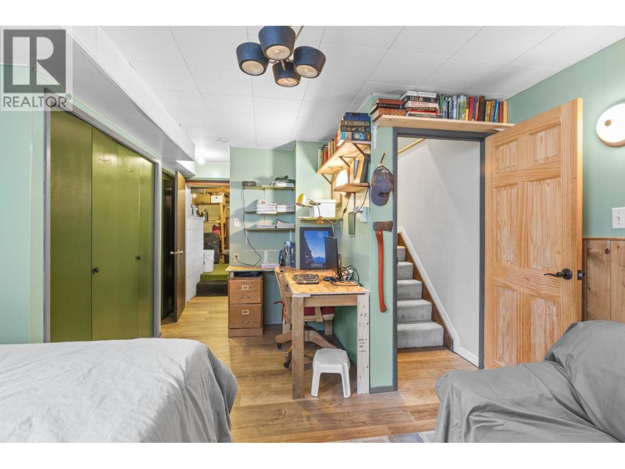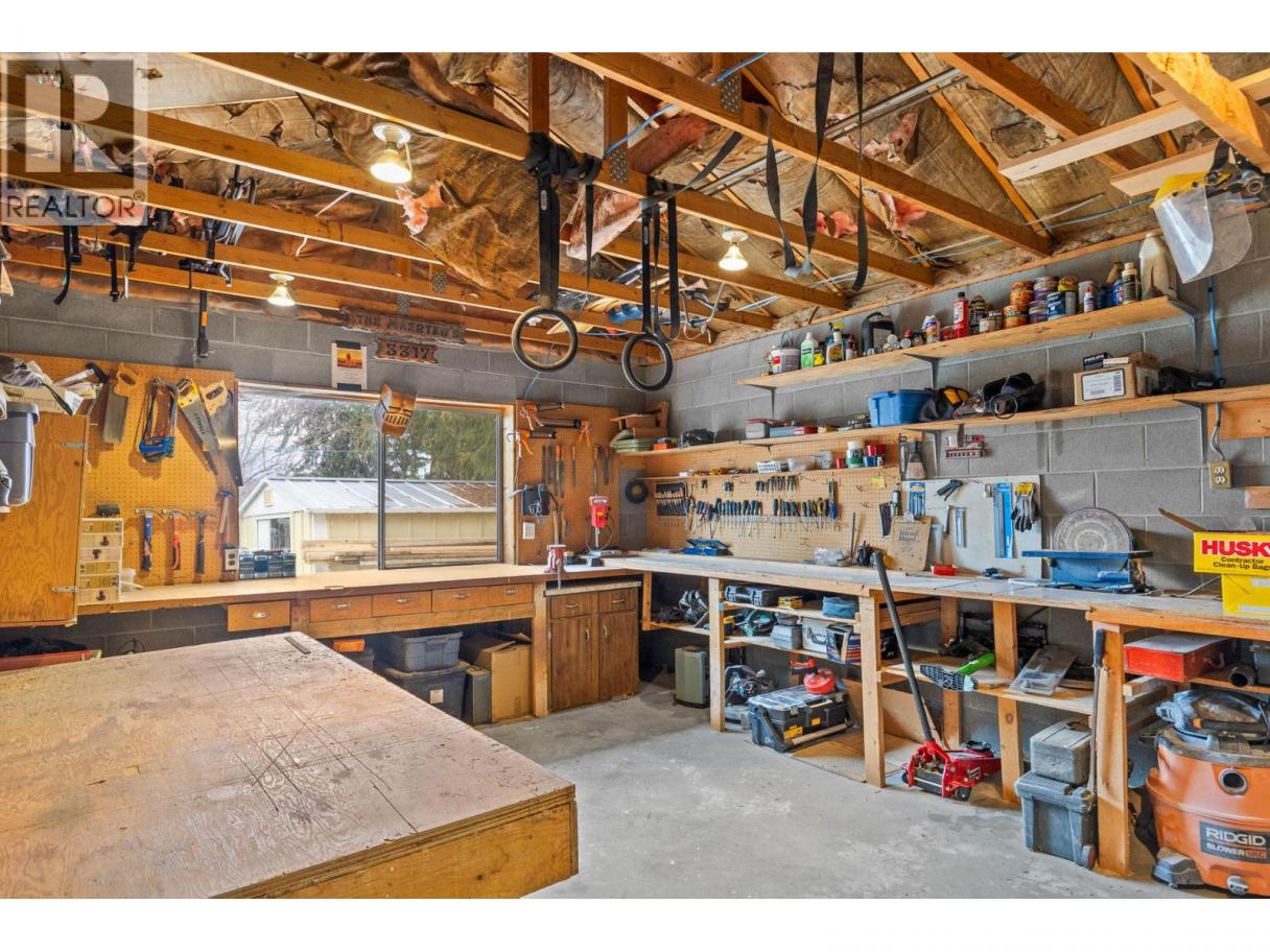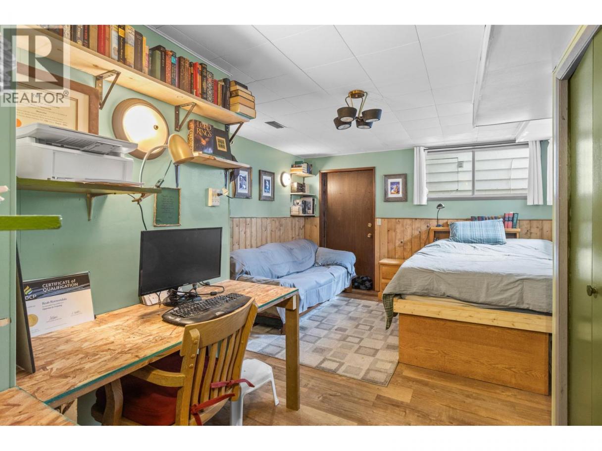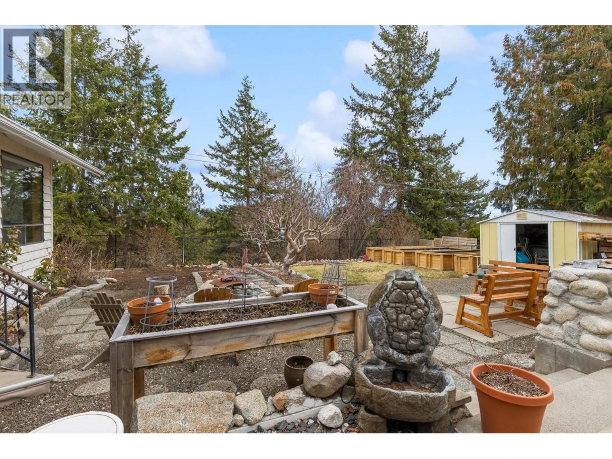 PRIVACY backing on to Powers Creek Canyon and a WORKSHOP lovers Dream property! Covered porch on front to visit neighbours or retreat to your totally private backyard patio with granite outdoor countertop for BBQ piped w/natural gas. Raised garden beds w/irrigation, low maintenance landscaping. Large patio w/room for a swing, lawn chairs and outdoor dining. 2 generations have loved this home. Desirable main level living with tons of storage, and partial basement with 3rd bedroom, office and unfinished utility room + canning room - bsmt with door to outside access. Decadent spacious Master bedroom with 3 piece ensuite and space for yoga! Hardwood floors, functional kitchen with dining area. Large 2nd bedroom, 4pc main bath with soaker tub and plenty of shelving. Cozy living room with wood burning fireplace, Adjacent Sunroom/home gym/Bonus-Games room. Copper plumbing, 8yr old H20 tank, 200 amp/220 volt service for workshop! 4-5 yr new Asphalt Shingle roof. Sewer levy paid off in Jan 2027. Macintosh & Golden Delicious apple trees, blueberries, clover. Gate to access walking path in Canyon. Amazing family friendly neighbourhood with parks, school & hiking trails nearby. (id:6769)