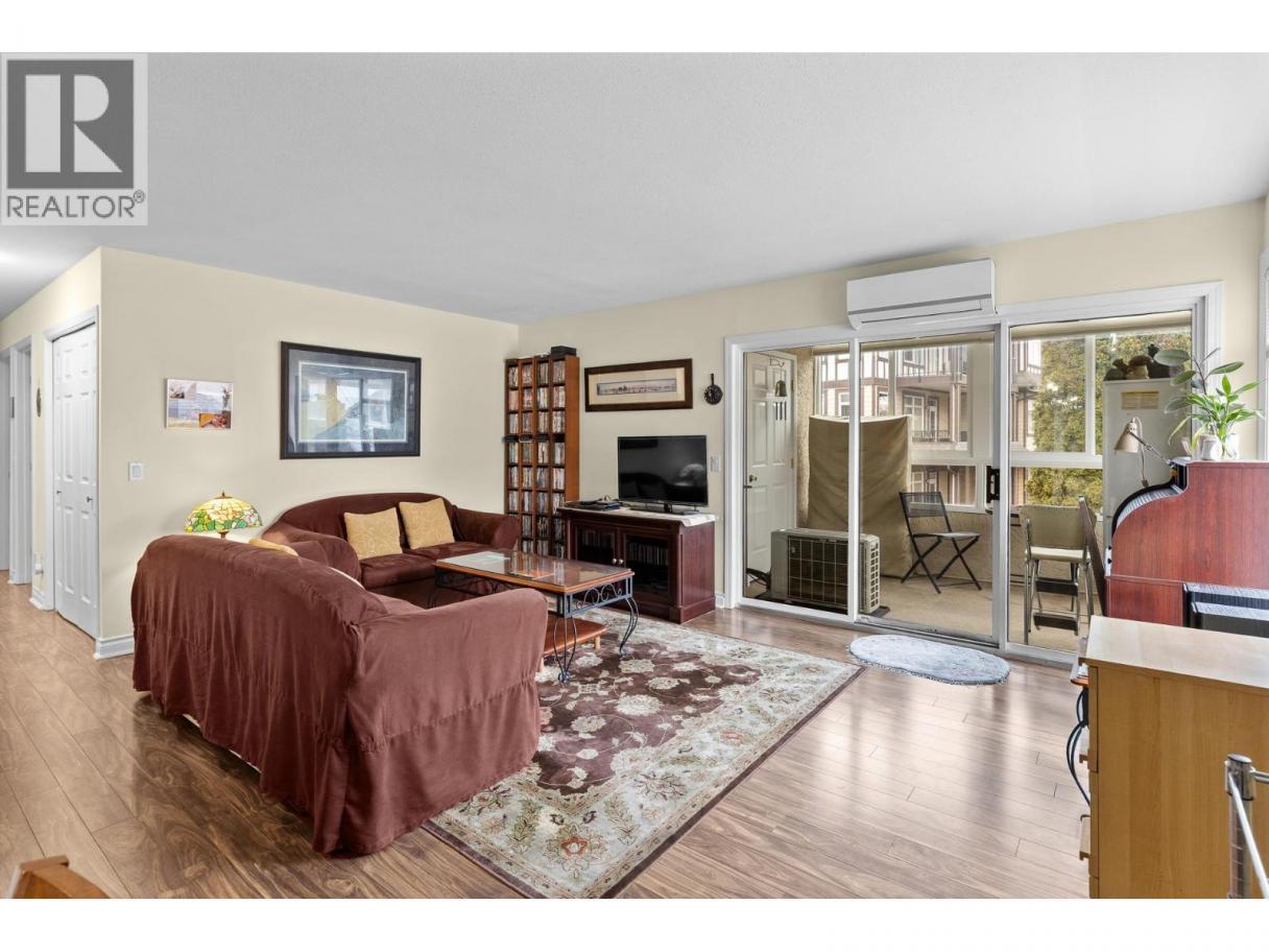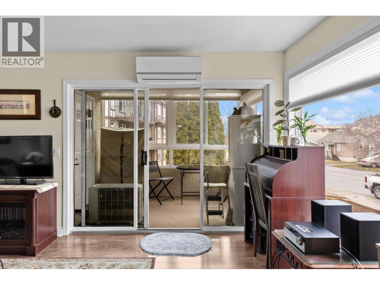 Welcome to this bright Corner Unit in Leisure Terrace. Spacious condo In highly desirable 55+ complex in the heart of West Kelowna. This lovingly maintained 2nd floor unit offers 2 bedrooms, 2 bathrooms, laundry with raised platform for stacking washer/dryer. Bright and functional layout. Convenient in-floor heating, updated appliances (approx 2 years old) in kitchen, pot lights, tile backsplash, arborite countertops & pantry cabinet. Dining room adjacent to kitchen with ceiling fan. New windows on the balcony with privacy film, air conditioning unit (approx 2-3 years old) to keep you comfortable in warmer months. The enclosed balcony/sunroom adds additional living space with plenty of natural light, and includes a convenient storage room. Honeycomb blinds with remote for convenience. Secure underground parking, RV parking (pending availability). 1 pet welcome w/restrictions. Building is known for its quiet, community-oriented atmosphere with Hobby Room to meet your neighbours and small workshop in the underground parkade. Access to gardening beds with Strata Approval & a nominal fee. Walk to grocery stores, restaurants, cafes, medical clinics, pharmacies, banks, and more. Just minutes to Johnson Bentley Aquatic Centre, Westbank Towne Centre, and a short drive to Okanagan Lake, wineries, orchards, and hiking/biking trails. This is an incredible opportunity to live in one of West Kelowna’s most convenient and desirable areas. (id:6769)