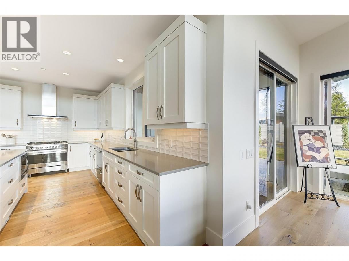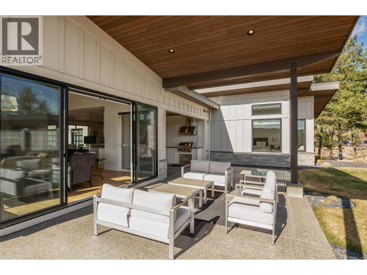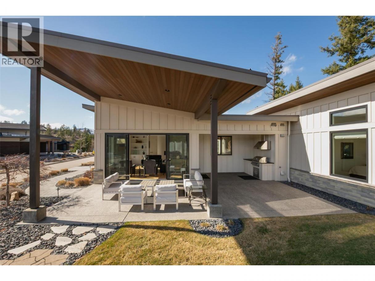 Immaculate executive rancher in the prestigious resort community of Predator Ridge. This beautifully crafted Rykon home offers luxury, privacy, & exceptional design, featuring 3 spacious BRs, den & 3 bathroom (2 w/ ensuites) all w/ heated floors. The bright, open-concept LR showcases soaring 14-foot vaulted ceilings w/ floor-to-ceiling gas fireplace. The chef-inspired kitchen is designed to impress, w/ premium Fisher & Paykel appliances, a 5-burner gas stove w/ electric oven, double-drawer dishwasher, French-door fridge, built-in coffee bar, pantry, & 9-foot quartz island that is perfect for entertaining. The primary suite is a true retreat, w/ a walk-in closet & spa-like ensuite w/ double sinks, a soaker tub, & separate shower. Large windows throughout the home capture the beauty of the natural surroundings and valley views, seamlessly blending indoor and outdoor living. Just off the living room, the covered patio features an outdoor kitchen, gas BBQ, and fire pit, all surrounded by expansive landscaping & added privacy. The oversized garage w/ golf cart bay has beautiful epoxy floors & lots of room for your toys. Enjoy resort-style living w/ two award-winning 18-hole golf courses, a fitness centre w/ lap pool, hot tub, & steam rooms, year-round tennis & pickleball, 35 km of hiking & biking trails, access to KurSpa at Sparkling Hill, dining, Commonage Market w/ Starbucks all within this secure, amenity-rich community offering exceptional lifestyle appeal year-round. (id:6769)