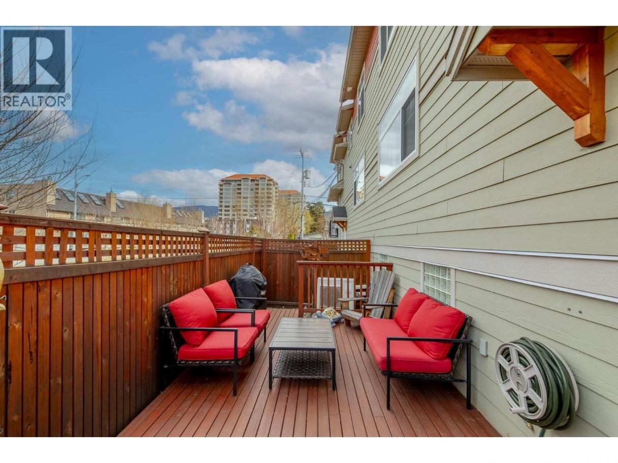 Dream location! Just steps from Okanagan Lake, downtown and the farmer's market, this 2-bedroom + den, 3 bath townhouse offers the kind of walkable living people come to Penticton for. Bring your kayaks, your paddleboards, your swimsuits, your bikes and enjoy the true easy Okanagan lifestyle. Stroll to the restaurants and pubs, take in summer events like Peachfest and the farmer's market, visit craft breweries and wine bars, ride your bikes up the boardwalks and on the KVR trail. At the end of your day, relax on your private enclosed deck and soak up the sunshine! This well appointed townhouse features its own attached garage, private secure storage area, welcomes your dogs and cats and is family friendly. It's a home you can enjoy and take pride in! Both bedrooms feature their own private ensuites and the den is ideal for guests, or a home office. Beautiful hardwood flooring, S/S appliances, warm wood accents, and calming colors create a serene, inviting ambience in which to relax and entertain. In Spring and Summer, your front garden explodes with blooms and color, inviting you to enjoy beauty and greenery with low maintenance. This is the gem you've been waiting for. Come view today! (id:6769)