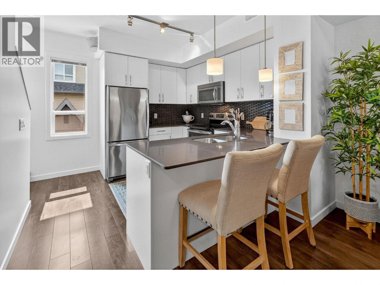 Welcome to Brighton in Kelowna's desirable Lower Mission! This stunning centrally located 2-bedroom, 2-bathroom corner unit townhome is meticulously maintained and filled with natural light. The bright open layout features stylish finishes and quality craftsmanship throughout. The kitchen showcases stainless steel appliances, beautiful cabinetry, and a quartz countertop with an island that is perfect for entertaining. The garage provides ample storage with secured parking for one vehicle plus a covered carport for the second. Additional highlights include in-suite laundry, two striking plaster feature walls, air conditioning, two generous sized bedrooms and two full bathrooms. Newly painted and move-in ready, this home offers a clean slate for its next owner. Enjoy the unbeatable convenience of being just a short walk or bike ride to the lake, beaches, highly rated schools, H2O, and all that Lower Mission has to offer. Built in 2016 by Mission Group, this private pet-friendly residence is a rare find in the complex, boasting additional fenced outdoor yard space- ideal for extra enjoyment. Don't miss the chance to make this easy-to-care-for gem your new home! (id:6769)