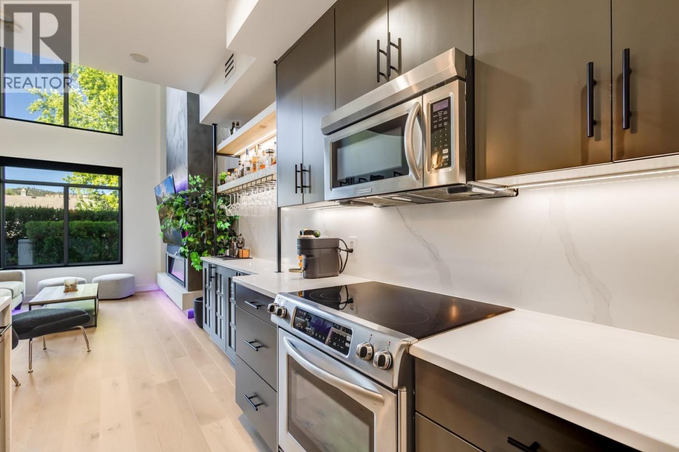Not all condos are created equal - and this one decided to break the mold entirely. With over 1,000 sq. ft. of space, soaring ceilings, and a design that feels more townhouse than typical high-rise unit, this home blends style, comfort, and individuality. The six-figure renovation delivers a fresh, move-in-ready interior that shows like a magazine spread. New high-end hardwood flooring, quartz countertops with a custom quartz backsplash, all new light fixtures, a stunning floor to ceiling fireplace surrounded by a custom tile feature wall, an entertainer's dream bar, a custom walk in closet, and wireless blackout shades are just some of the features that truly set this home apart from the rest! The open loft layout flows effortlessly to a massive private patio with its own entrance - ideal for everything from coffee catch-ups to evening wine with friends. Inside, the feeling of openness is matched by modern finishes and thoughtful details. Are you a pet lover? Dogs and cats are welcome with dogs up to 60lbs allowed here! The building itself spoils you with a rooftop pool, hot tub, and sauna, a gym, guest suites, and even a conference room, so your needs are covered without ever stepping outside. But when you do, you’re just steps to downtown, groceries, transit, and all the best city living offers - without the constant buzz on your doorstep. Places like #124-1495 Graham don't come up often so make sure you move quick on this one! (id:6769)