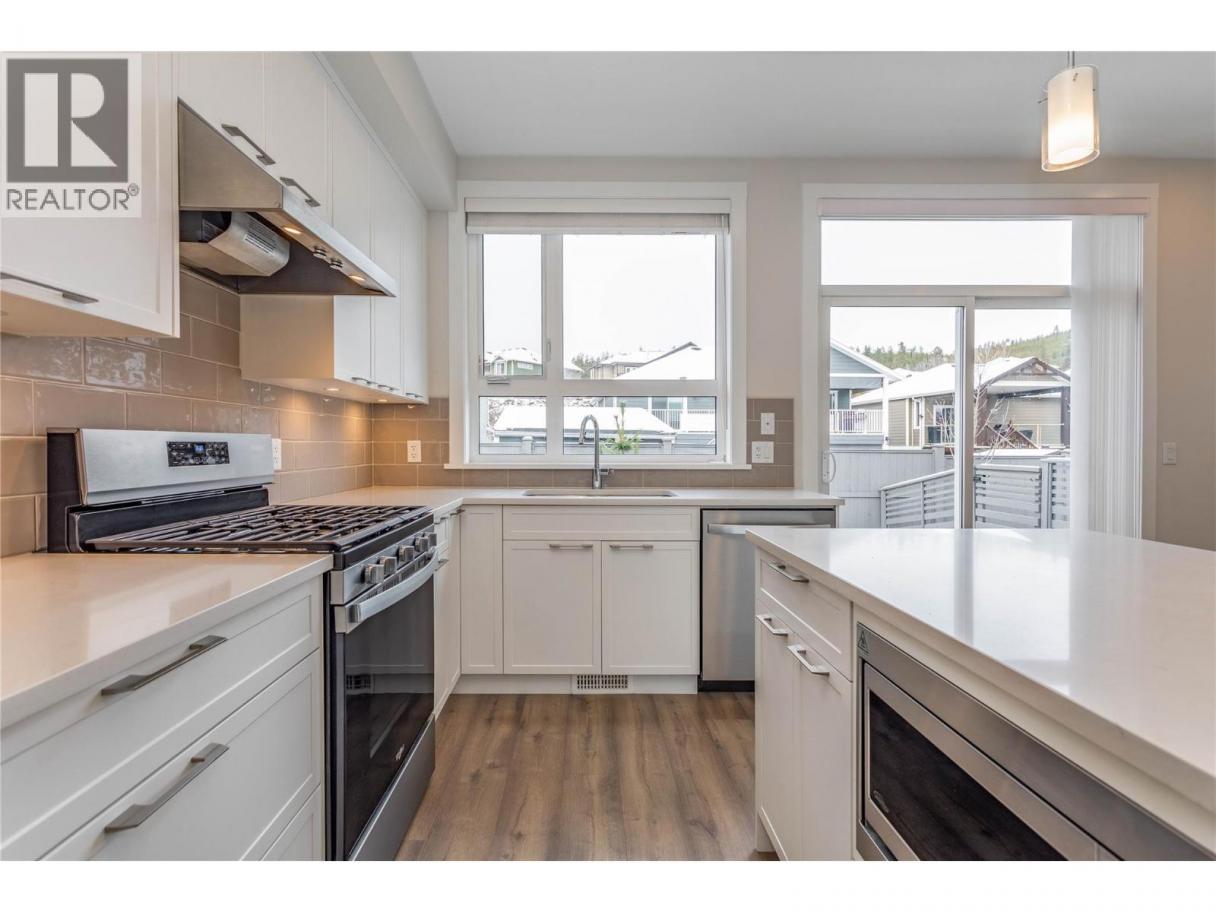 Nestled in one of the province's fastest-growing communities, this stunning 3 bedroom, 3 bathroom END unit townhome in APEX at the Lakes with geothermal heating and cooling offers the perfect blend of style, convenience, and functionality for active family living. Revel in the updated appliance package with a SS hood vent over the gas range, Quartz countertops, a microwave tucked neatly under the eat up island, while the under cabinet lighting adds a touch of elegance to your culinary space. The patio, with natural gas for your BBQ, and green space directly off the kitchen and dining room makes this the perfect spot for family gatherings and entertaining guests. The living area is bathed in natural light, thanks to expansive windows that create a bright and airy ambiance. Retreat upstairs to the 3 bedrooms and primary ensuite, where a walk-in shower awaits as well as another full bathroom. A tandem two-car garage with room for storage ensures your vehicles and recreational equipment are safely tucked away. This family-friendly community boasts a nearby playground and numerous hiking trails, perfect for family outings and recreation. Plus with Wood Lake and Okanagan Lake just minutes away, water enthusiasts will feel right at home. Oh, and don’t forget the close proximity to the award winning wineries! Don’t miss out on this amazing home and investment for your families future. *Photos were taken prior to tenants recently moving in while in transition between homes* (id:6769)