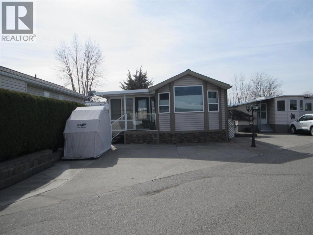 Enjoy the Sweet Life in Holiday Park Resort! The Park Model has been immaculately maintained where comfort meets style. The open concept style is complemented by the vaulted ceilings to create a bright, spacious and welcoming entertainers delight. The living area is filled with lots of natural light for indoor living. The spacious kitchen features an island with extra seating, ample counter space and lots of storage. Step through the french doors onto your expansive composite deck with views where the summer fun begins. The yard is low maintenance so you have more time to enjoy the Okanagan lifestyle. There is parking for 2 vehicles plus a golf cart. You are conveniently located between the Recreation Complex, (indoor pool, hot tub, hair salon, gym, dinners and dances, social events) and the Family Activity Centre, (coin laundry, thyme at Ellison restaurant, shuffleboard, outdoor pool and hot tub). Enjoy all the amenities that Holiday Park Resort has to offer - pools, hot tubs, golf course, pickleball, games room, library, dog park plus more. The Annual Maintenance Fee for 2026 is $5763. Includes is security, water, sewer, use of the amenities, maintenance of the common areas, snow removal and garbage disposal area. There is no Property Transfer Tax. Long and short term rentals are allowed. The leases are registered with the Federal Government. Lease term to 2046. Measurements are approximate. . (id:6769)