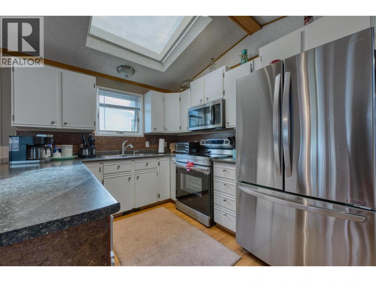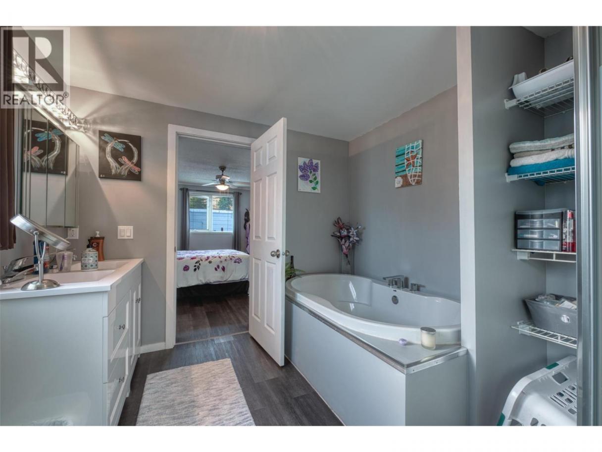 Discover this beautiful 2 bedroom, 2 bathroom home in Kalview MHP, a park with no age restrictions, perfectly situated to offer an amazing view of Kalamalka Lake. The home features an open-concept kitchen with stainless steel appliances, ideal for entertaining. Recently upgraded, the home also features a luxurious new master ensuite, complete with a stylish double-sink vanity and a relaxing, large soaker tub. The property is ideal for those who need extra space for hobbies and vehicles. You'll find tons of parking, with room for multiple cars or even your RV. Plus, there is a large detached 12'x21' workshop ready for any project. This is a fantastic opportunity to enjoy comfortable living with a stunning lake backdrop! (id:6769)