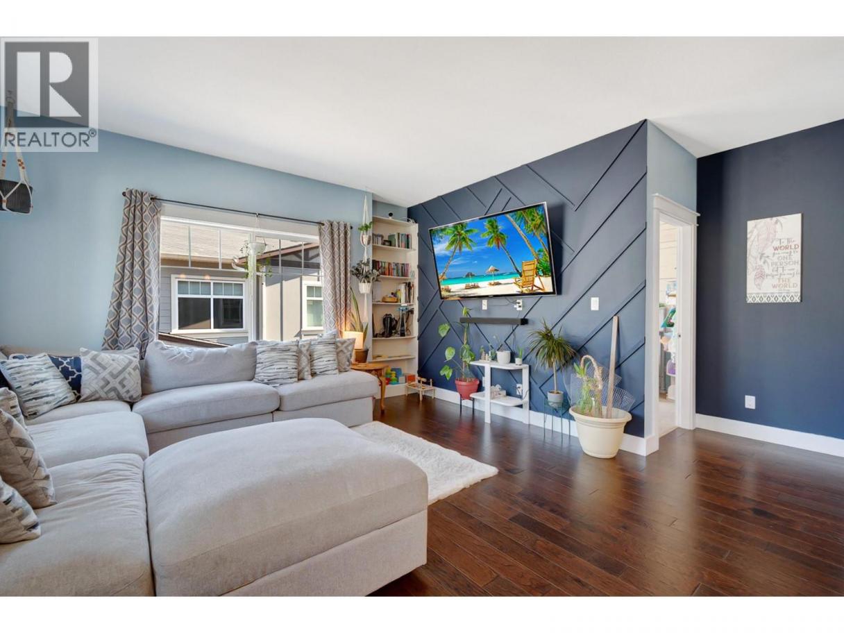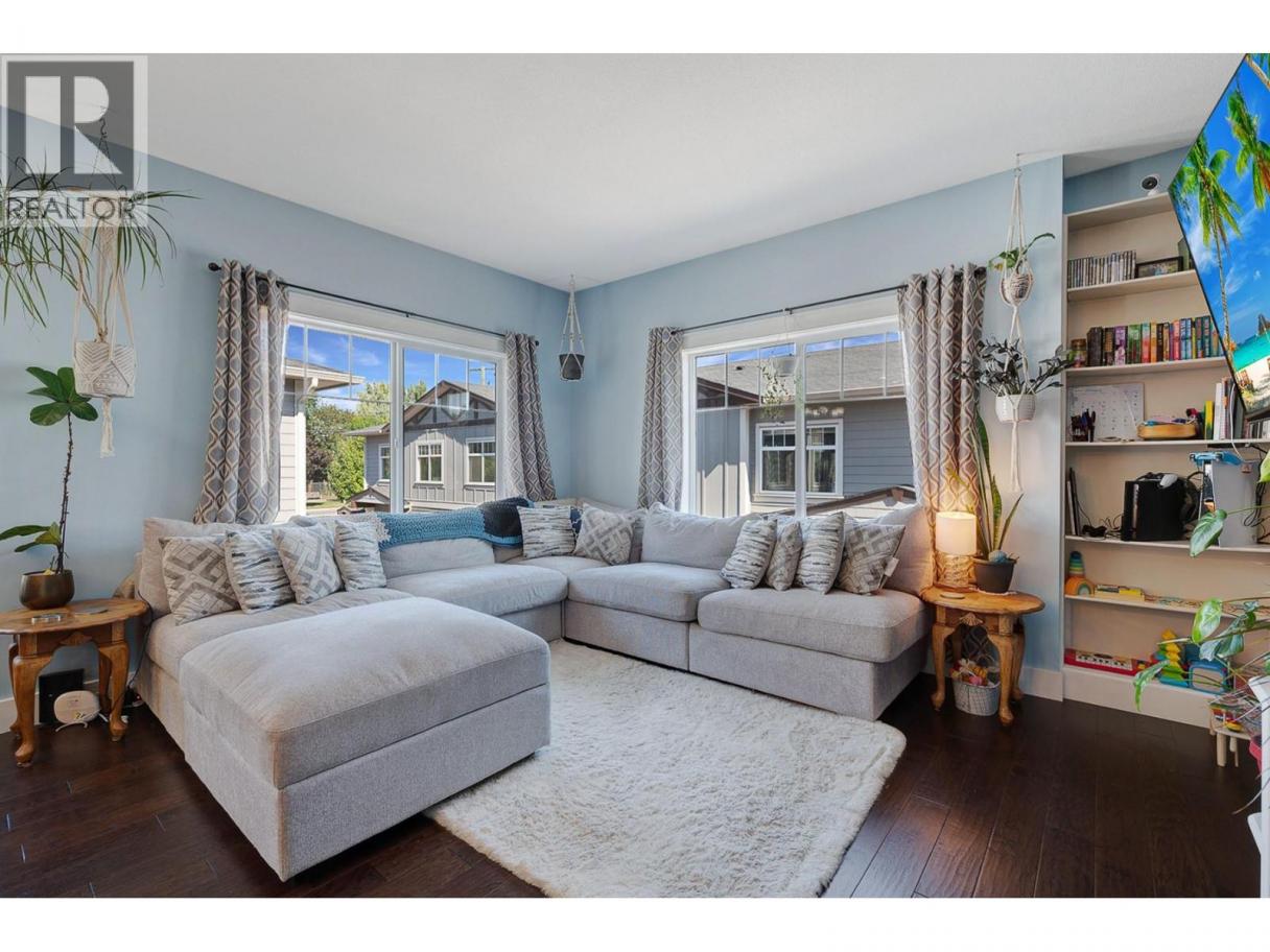 Welcome to Cornerstone Townhomes – Quiet, Quality Living! Tucked at the back of this well-maintained 10-unit complex, this immaculate 3- bedroom + den townhome offers rare privacy and serenity – all just minutes from Vernon’s best amenities. With garage parking and an additional assigned stall right next to the unit, convenience is built right in. Thoughtfully designed with timeless craftsmanship and an open- concept layout, the home welcomes you with a spacious kitchen featuring a large island and quality appliances. The seamless flow to the living and dining areas makes it perfect for hosting or relaxing. The main level features a generously sized primary suite with a spa-inspired ensuite, a second bright bedroom, and a full guest bath. On the entry level, a cozy den, third bedroom with sliding doors to a private patio, an extra bath, and laundry area round out the functional layout. Storage is abundant throughout, and the unit backs onto the quiet side of the development, adding to the peaceful atmosphere. This pet-friendly complex embraces a warm, community feel with LOW strata fees and pride of ownership throughout. Conveniently located close to the hospital, schools, downtown shops, Nature’s Fare, Kin Beach, and extensive recreation – including pickleball, sports fields, walking trails, and more. Don’t miss your chance to own in this tightly held community where quality, quiet, and comfort come together. (id:6769)