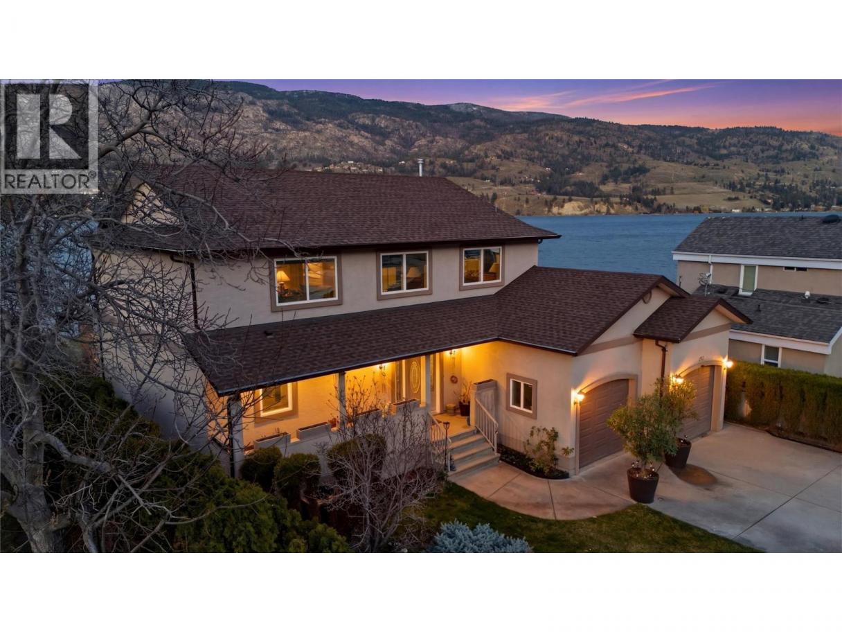 CLICK TO SEE THE VIDEO! If you've been to Kaleden, then you know it's a magical community on the outskirts of Penticton, which you just don't want to ever leave. It offers a quiet lifestyle with many local amenities for your family to enjoy. A local beach, park, boat launch, tennis/pickleball courts, ice hockey rink in the winter, KVR trail is just outside your door. Plus, enjoy the community events throughout the year. This home, with a gated driveway, sits on a 60' x 180' waterfront lot with a sandy beach. Built in 2002, it only needs your personal touch to make it your own. With ground-level entry, all your living can be done on the main floor. The large living room has a gas fireplace and beautifully crafted built-in cabinets. The primary bedroom's view is something out of a travel magazine - a jaw-dropping blend of water and mountains. The upper and lower floors feature large vinyl decks. Double-car garage with ceilings to accommodate your car lift. But that's not what you will be buying. This place is for creating memories.... coffee on the deck with a sunrise, waterski session before breakfast, and smores by the bonfire on the beach at night. This is where playing all year round is right outside your door. Imagine watching kids from inside of your home while they are jumping off your future new dock (we have a quote for it). This is a rare chance to own waterfront property in the beautiful South Okanagan. Call the listing agent for details. (id:6769)