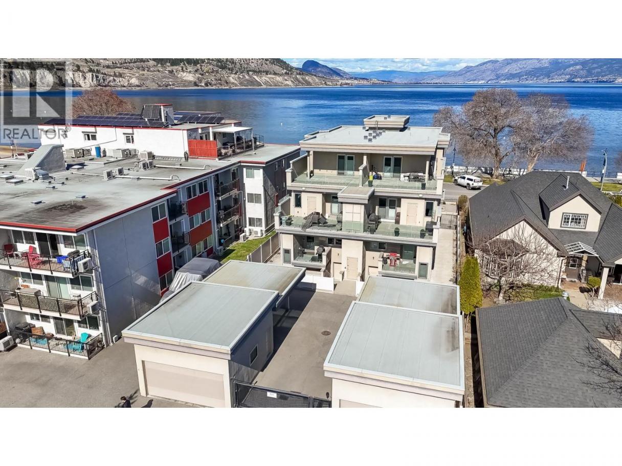 OPEN HOUSE | SATURDAY MARCH 28 - 11:00 -12:30. Located directly across from one of Okanagan Lake’s finest beaches, this luxury 2-bedroom condo/townhome offers an unbeatable lifestyle in a premier location. Set along the “street of dreams,” you’ll enjoy commanding lake views just steps from the sandy beach, lakeside boardwalk, popular restaurants, shops, and the farmers market. This immaculate, like-new home features an elevated main floor that maximizes sightlines to the lake. A rare and highly sought-after feature is the 540 sq. ft. basement storage area that is secure, heated, and ideal for all your gear, from bikes and paddleboards to kayaks and seasonal storage. Inside, you’ll find gorgeous hardwood floors, a spacious kitchen with abundant cabinetry, and an open-concept layout ideal for entertaining. Cozy fireplaces in both the living room and primary bedroom add warmth and charm. Enjoy two generous patios—one with lake views and the other off the primary bedroom facing south—offering the perfect balance of sun and shade. Additional highlights include two covered parking stalls within a secure gated entrance. The home offers 1,391 sq. ft. of living space, plus 540 sq. ft. of storage and 260 sq. ft. of outdoor patio space. Okanagan living at its finest. (id:6769)