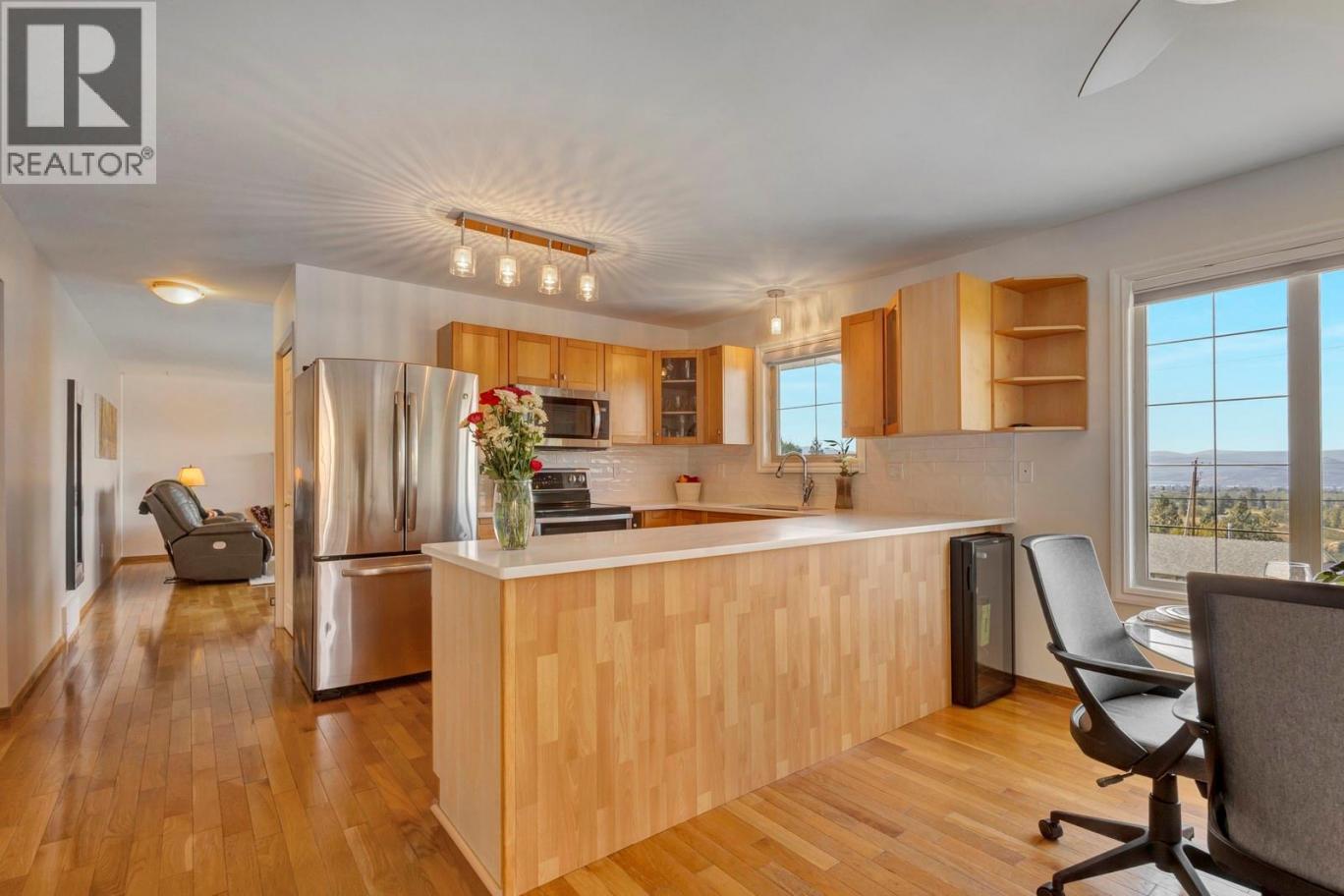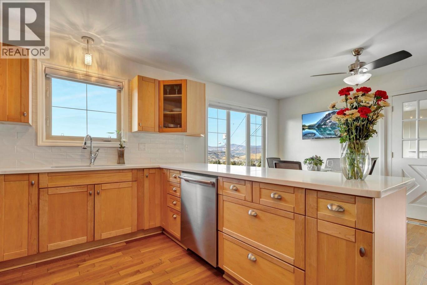 Perched above the valley, 1197 Bentien Road offers commanding panoramic views of the city, mountains and lake. You'll love the deck and multiple outdoor sitting areas plus a fully grassed backyard—perfect for kids, pets, gardening and alfresco entertaining. Thoughtfully updated and maintained inside, the main floor features an expanded layout with a living room, updated kitchen and a room for dining/ family that flows effortlessly to outdoor entertaining spaces; two bedrooms upstairs and a renovated bathroom provide comfortable living quarters. Downstairs there is a additional 2 bedrooms, a full bathroom and a recreation room, plus a built-in private sauna for relaxation and wellness. The home includes an oversized two-car garage and a large drive way, ample room for multiple vehicles plus a RV. Three wood-burning fireplaces add warmth and character throughout, and the flexible configuration accommodates families, guests, a home office or creative studio. Located in sought-after Black Mountain, this property pairs tranquil hillside living with closer-than-usual access to shopping, schools and amenities, offering move-in-ready comfort and generous outdoor space. Schedule a viewing to experience this property in person. (id:6769)