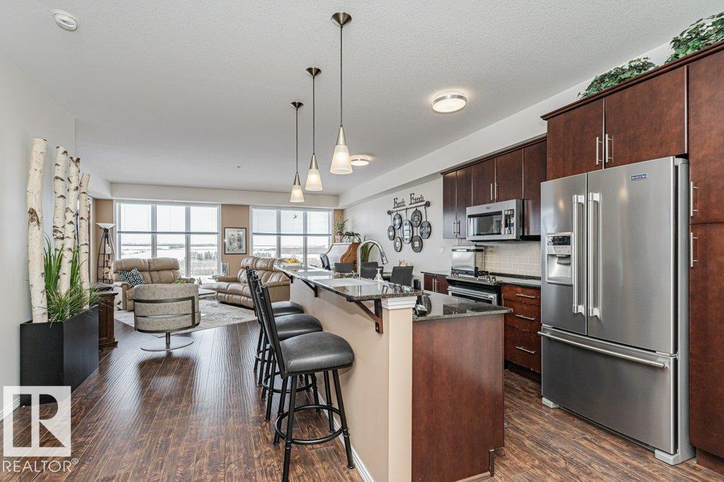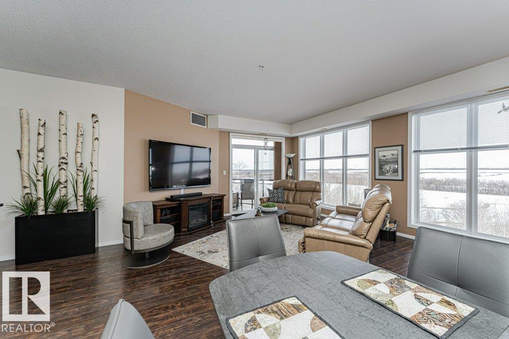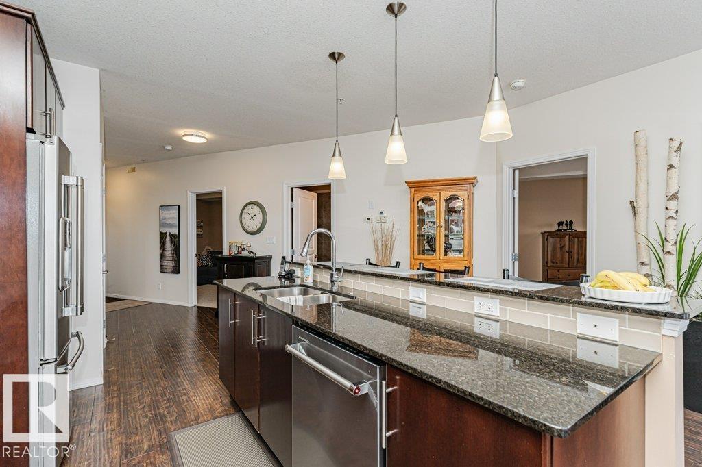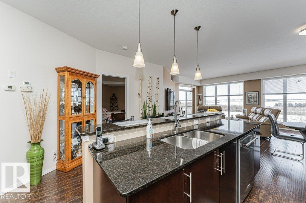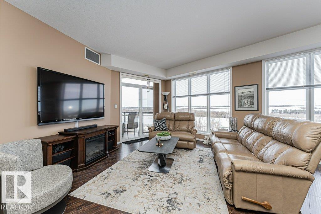 Wow—unobstructed River Valley views! Welcome to Sherridon View in sought-after Sherridon Heights. This stunning 2 bedroom, 2 bathroom condo is perfectly suited for a professional couple or empty nester seeking style and convenience. Featuring engineered Hardwood & Ceramic floors, a modern open-concept layout, and floor-to-ceiling windows that flood the space with natural light and showcase breathtaking views of the North Saskatchewan River Valley. The chef-inspired kitchen offers granite countertops and stainless steel appliances. Spacious bedrooms include a primary with full ensuite. Enjoy Central A/C, in-suite laundry, and a sunny balcony with dual gas outlets for BBQ and Fire table option — perfect for entertaining while taking in incredible sunsets. Includes TWO titled underground heated parking stalls. Steps to walking trails, parks, shopping, and public transit. Don’t miss this opportunity! (id:6769)