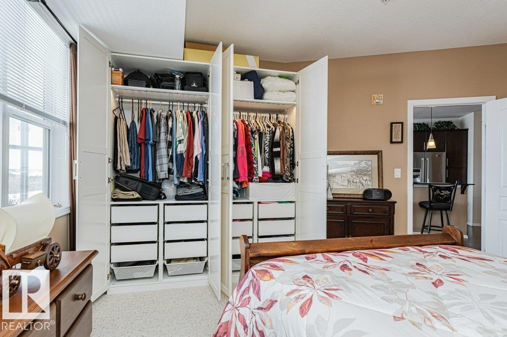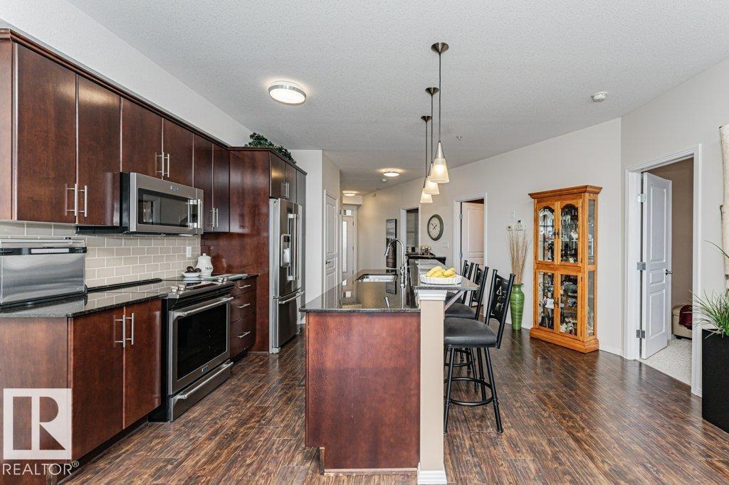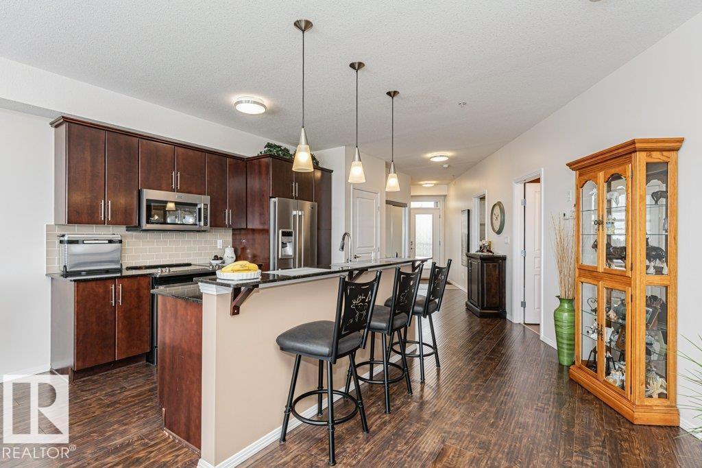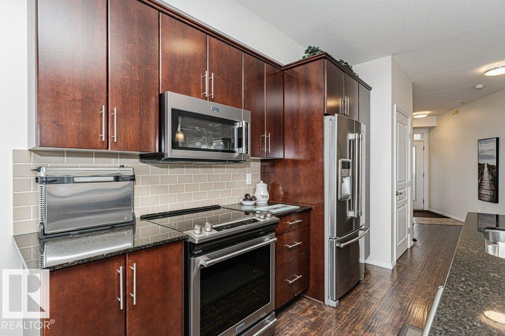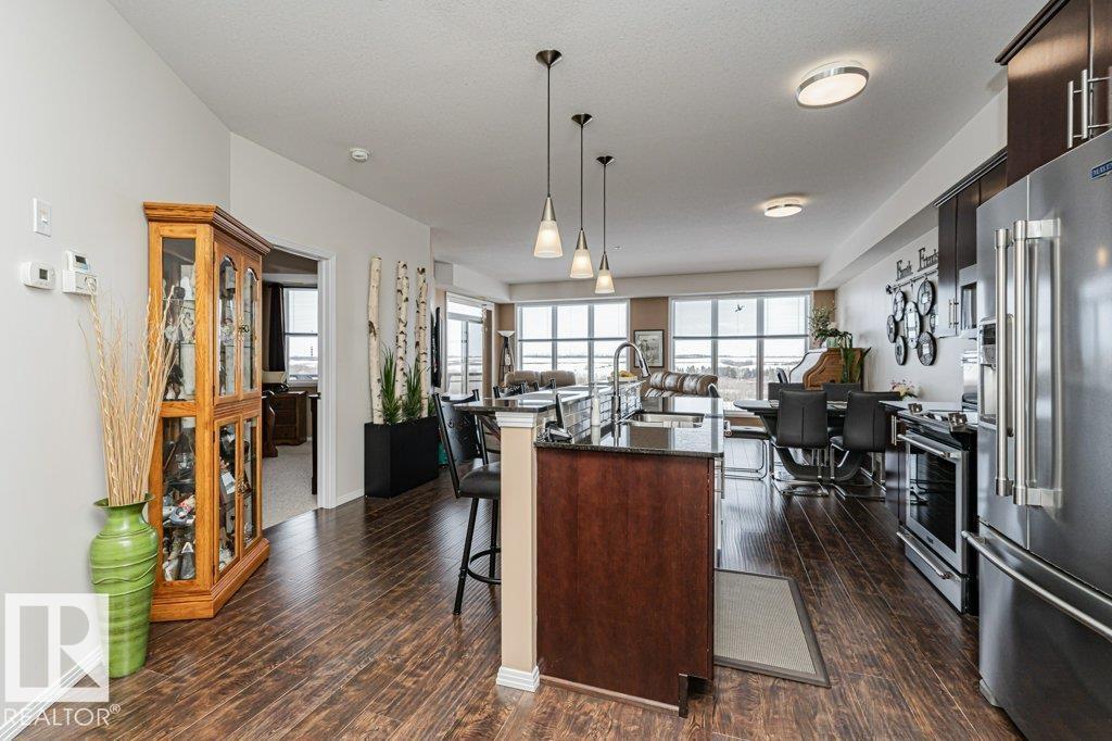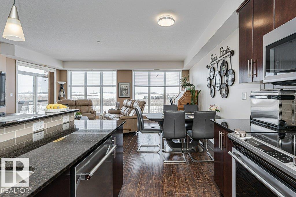 Wow—unobstructed River Valley views! Welcome to Sherridon View in sought-after Sherridon Heights. This stunning 2 bedroom, 2 bathroom condo is perfectly suited for a professional couple or empty nester seeking style and convenience. Featuring engineered Hardwood & Ceramic floors, a modern open-concept layout, and floor-to-ceiling windows that flood the space with natural light and showcase breathtaking views of the North Saskatchewan River Valley. The chef-inspired kitchen offers granite countertops and stainless steel appliances. Spacious bedrooms include a primary with full ensuite. Enjoy Central A/C, in-suite laundry, and a sunny balcony with dual gas outlets for BBQ and Fire table option — perfect for entertaining while taking in incredible sunsets. Includes TWO titled underground heated parking stalls. Steps to walking trails, parks, shopping, and public transit. Don’t miss this opportunity! (id:6769)