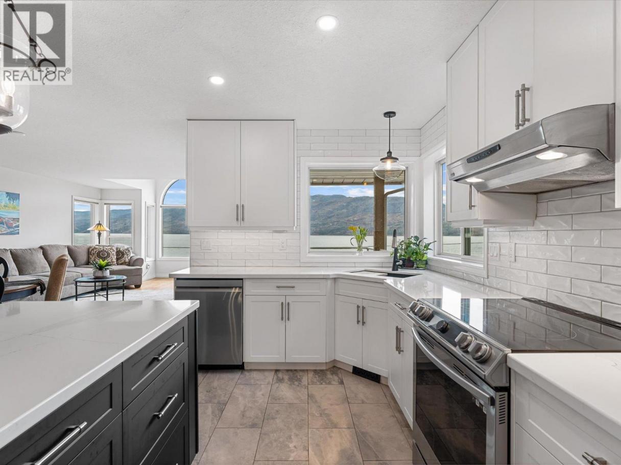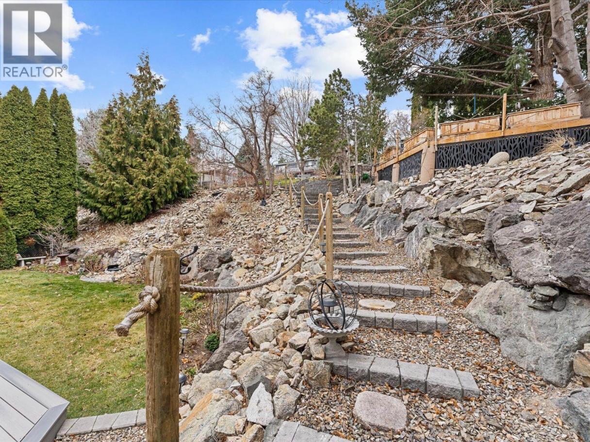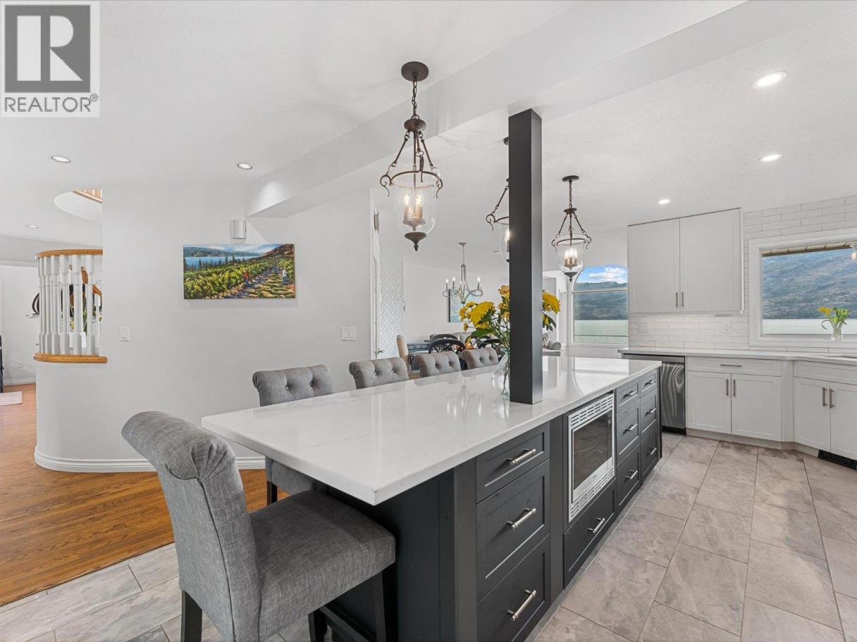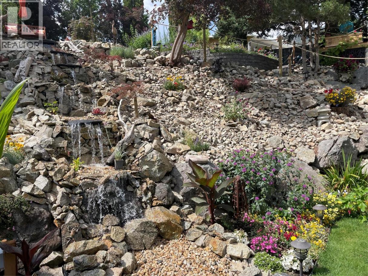 Set along the lakefront in Peachland, this well maintained home offers beautiful lake views, a peaceful setting, and direct access to Okanagan Lake with a licensed private buoy. Inside, hardwood floors and large windows create a bright, welcoming feel. The recently updated kitchen features quartz countertops, stainless steel appliances, a beverage fridge, additional prep sink, and a 10 foot long island that naturally becomes the heart of the home. The sunken living room is warmed by a gas fireplace and framed by the lake, creating a space that feels both open and comfortable. The layout includes 4 bedrooms, a den, a workshop and a spacious recreation room ideal for a pool table, games area, or flexible family use. The primary ensuite includes a jetted tub, separate shower and walk in closet closet, while additional home features such as the built-in vacuum and geothermal heating and cooling add everyday comfort and efficiency. Outside, you will be Impressed by your outdoor retreat that showcases beautifully maintained grounds with multiple decks, hot tub and a stunning rock water feature. The greenhouse, raised vegetable beds, and irrigation with timed drip lines are a gardener's dream. Plus, the multiple fruit trees add to the park like feel of the property. Complete with a pristine double garage with epoxy flooring and an additional parking in front of the property often used for boats or RVs. This is a home that is best appreciated in person - book your showing today! (id:6769)