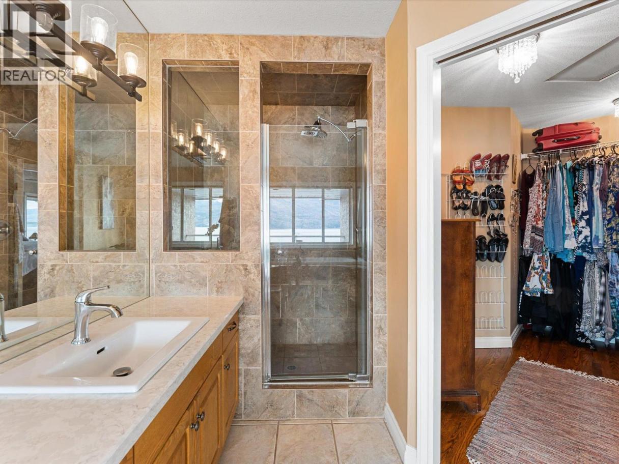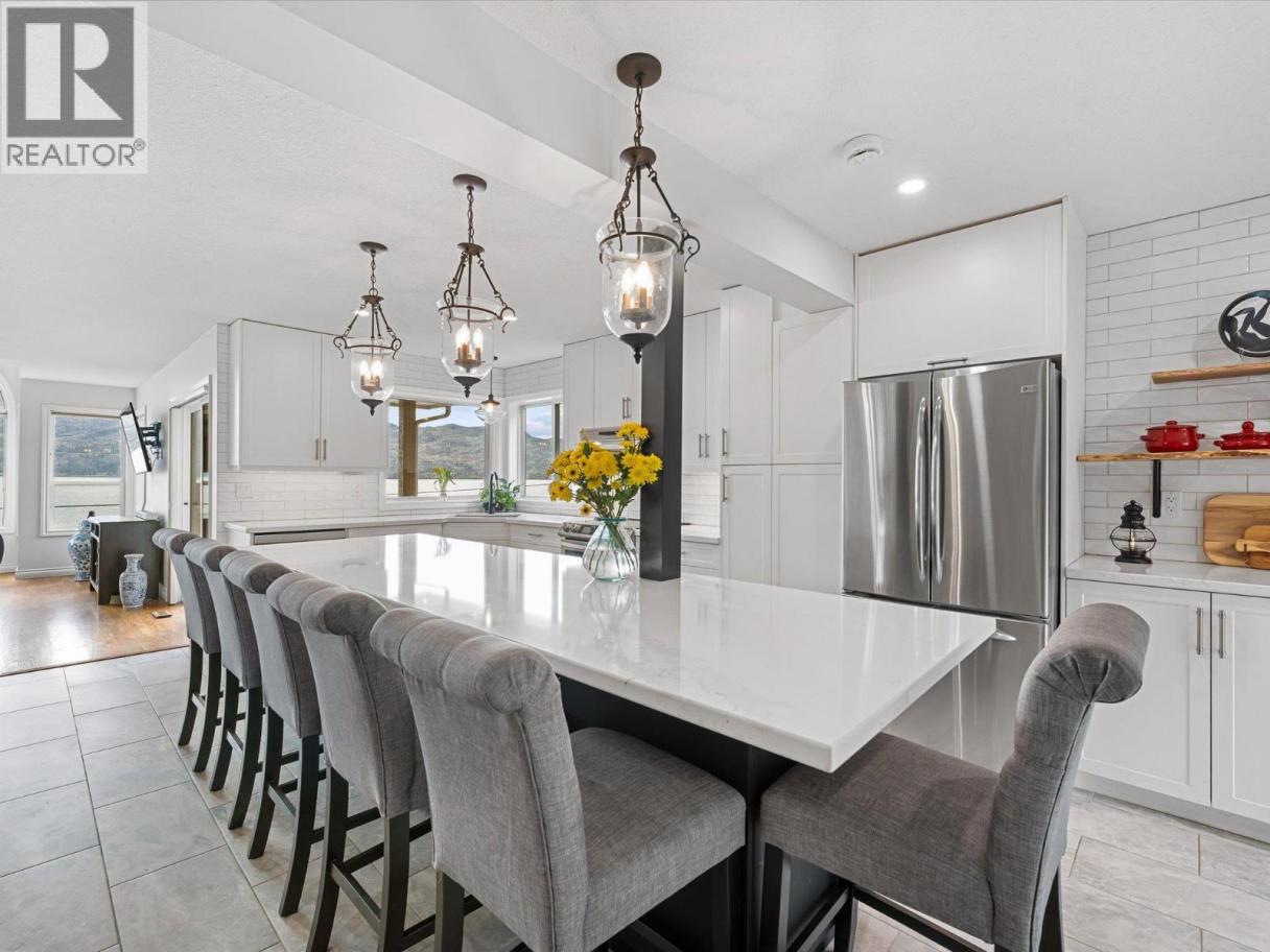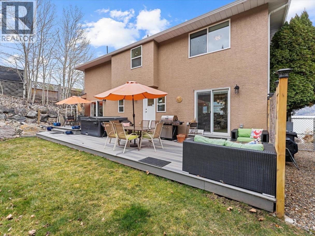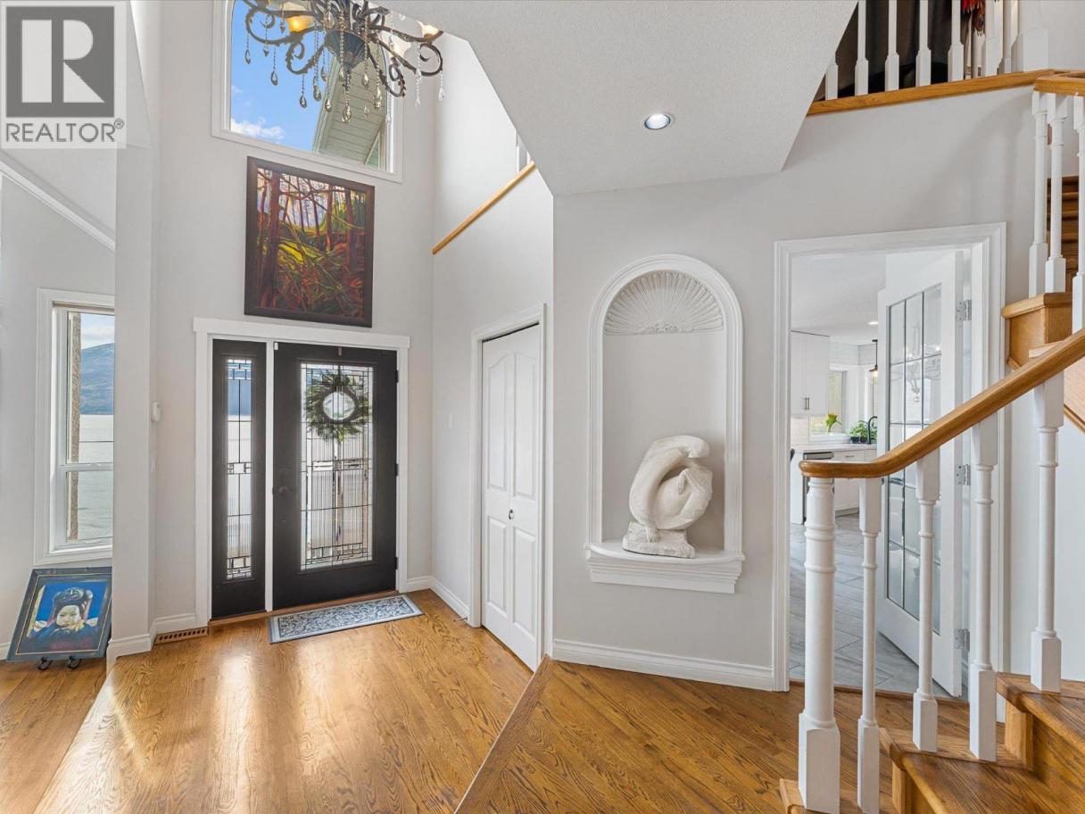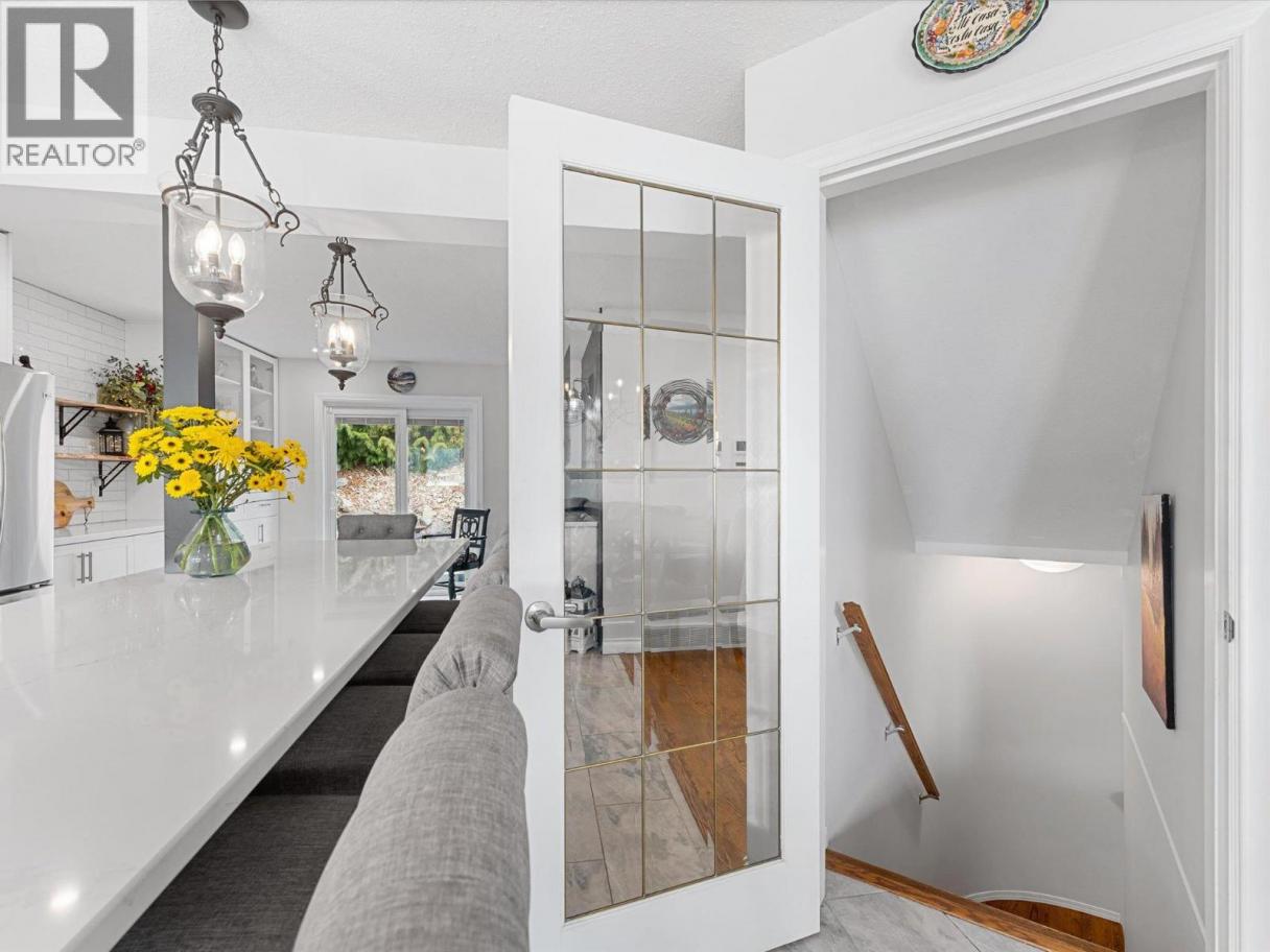 Set along the lakefront in Peachland, this well maintained home offers beautiful lake views, a peaceful setting, and direct access to Okanagan Lake with a licensed private buoy. Inside, hardwood floors and large windows create a bright, welcoming feel. The recently updated kitchen features quartz countertops, stainless steel appliances, a beverage fridge, additional prep sink, and a 10 foot long island that naturally becomes the heart of the home. The sunken living room is warmed by a gas fireplace and framed by the lake, creating a space that feels both open and comfortable. The layout includes 4 bedrooms, a den, a workshop and a spacious recreation room ideal for a pool table, games area, or flexible family use. The primary ensuite includes a jetted tub, separate shower and walk in closet closet, while additional home features such as the built-in vacuum and geothermal heating and cooling add everyday comfort and efficiency. Outside, you will be Impressed by your outdoor retreat that showcases beautifully maintained grounds with multiple decks, hot tub and a stunning rock water feature. The greenhouse, raised vegetable beds, and irrigation with timed drip lines are a gardener's dream. Plus, the multiple fruit trees add to the park like feel of the property. Complete with a pristine double garage with epoxy flooring and an additional parking in front of the property often used for boats or RVs. This is a home that is best appreciated in person - book your showing today! (id:6769)