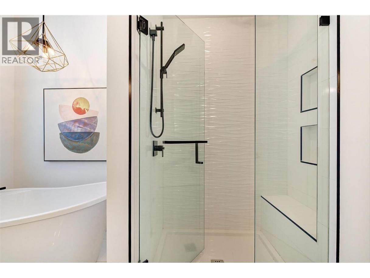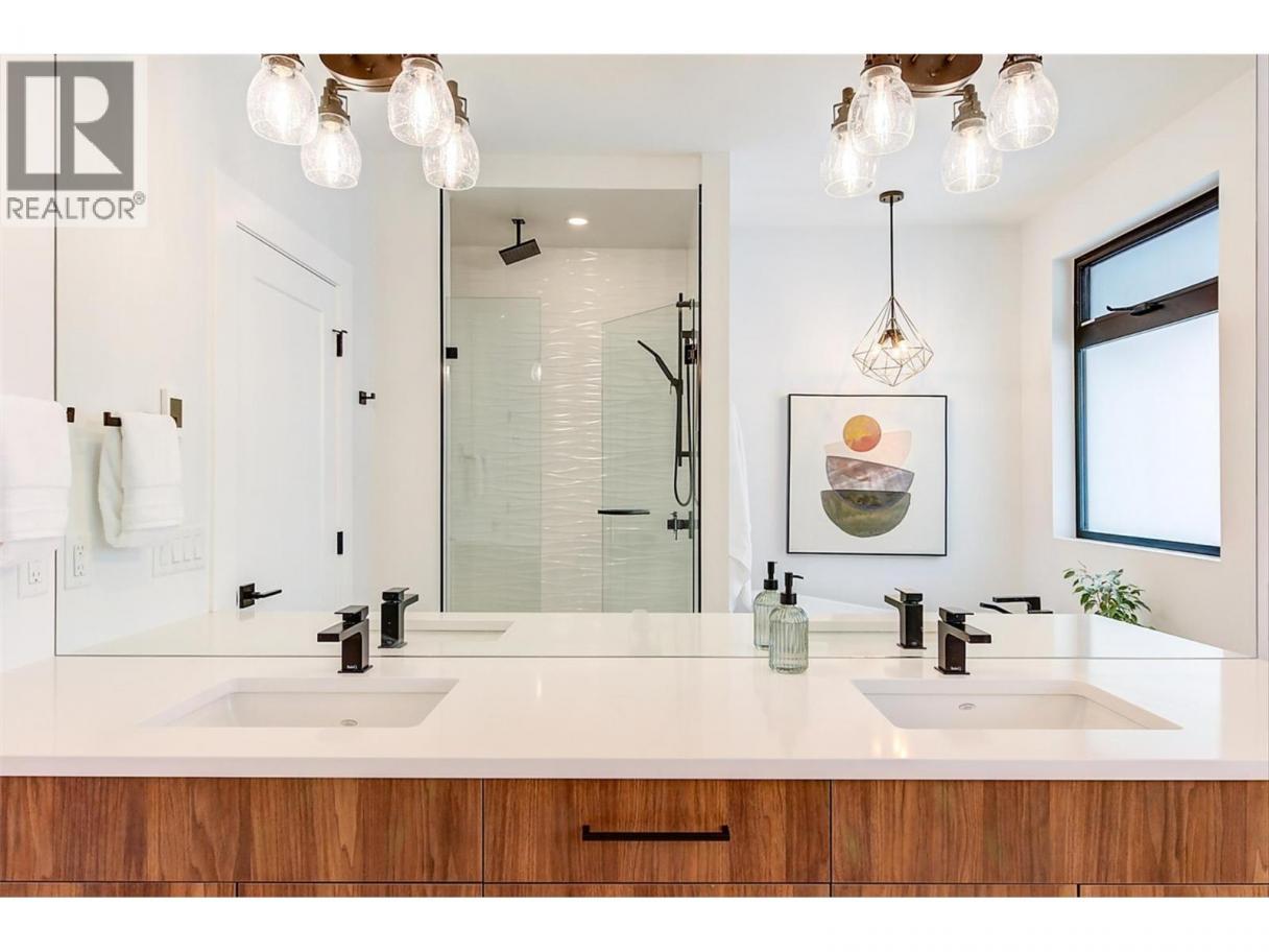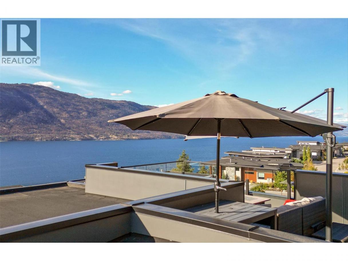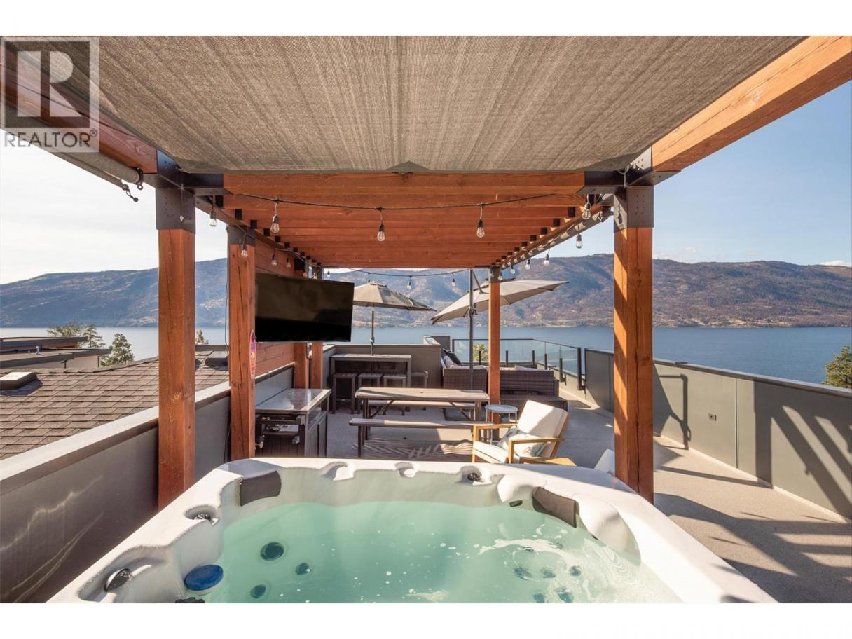 FANTASTICALLY RARE FIND in McKinley Beach!!! This Perfect Home Retreat has a 725 SF ROOF TOP PATIO W/ HOT TUB & LOUNGE OVERLOOKING OKANAGAN LAKE. BE THE ENVY OF THE NEIGHBOURHOOD while basking in the sun taking in breathtaking 180 degree; western views. Custom Crafted home built by one of Kelowna's finest Award Winning builders features an open concept floor plan w/ eat in kitchen that includes a large quartz, waterfall island & high end appliance package including a 36"" gas range. Rare again, large fenced backyard seen from your kitchen sink. Picturesque Walls of Windows facing East & West spray sunshine into your home no matter the season. Luxurious Primary Bedroom hosts an ideal ensuite escape that includes heated floors, 2 sinks, spacious shower & stand alone tub. 2 added bedrooms, full bath, 4th bedroom/den & laundry room complete this main residence. Find a Legal 1 bedroom Suite fitted with a private side entrance & separate patio, is the perfect space for guests when they come to visit, family or rent out for extra revenue. TOPPING all of this off is an incredible oversized double car garage with Epoxy floors & extra parking on the driveway. The McKinley Beach Association membership share a $5M amenity centre fittingly named ""Our Place"" includes a secure clubhouse w/ gym, indoor pool & hot tub. Outdoor community features include Pickle ball, Tennis & Basketball courts, Community Gardens, Beach, Marina (5 min walk or cruise down in a golf cart) & endless Hiking Trails. (id:6769)