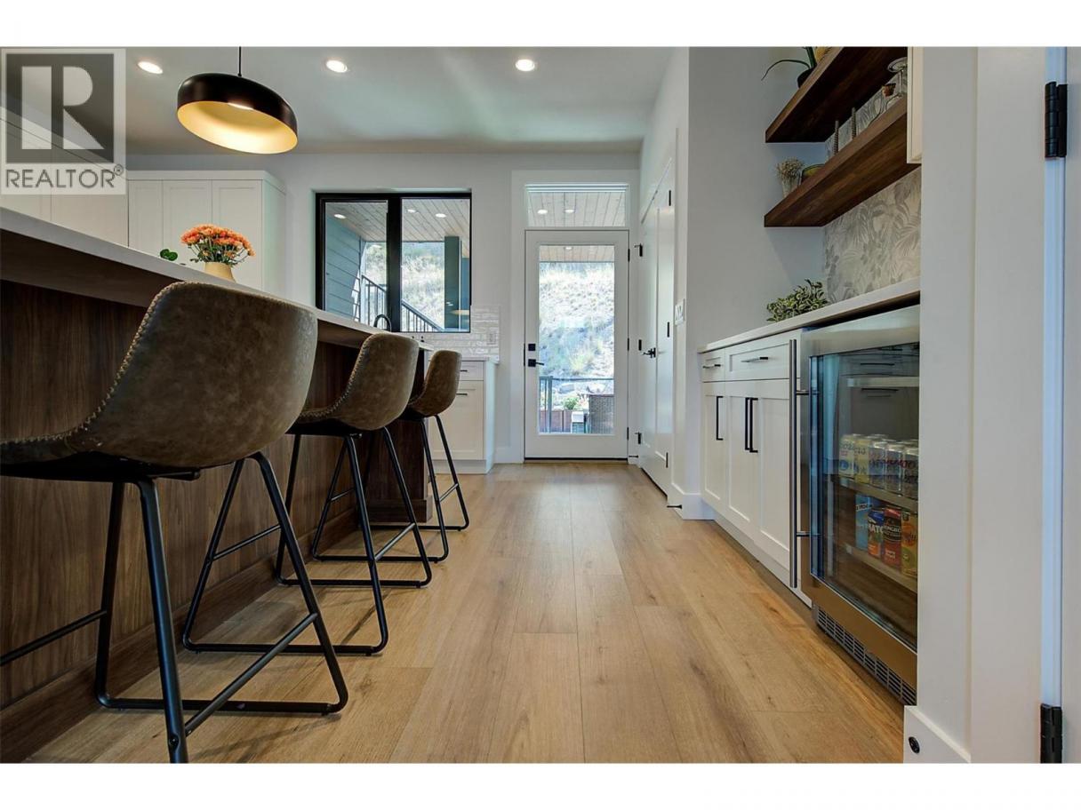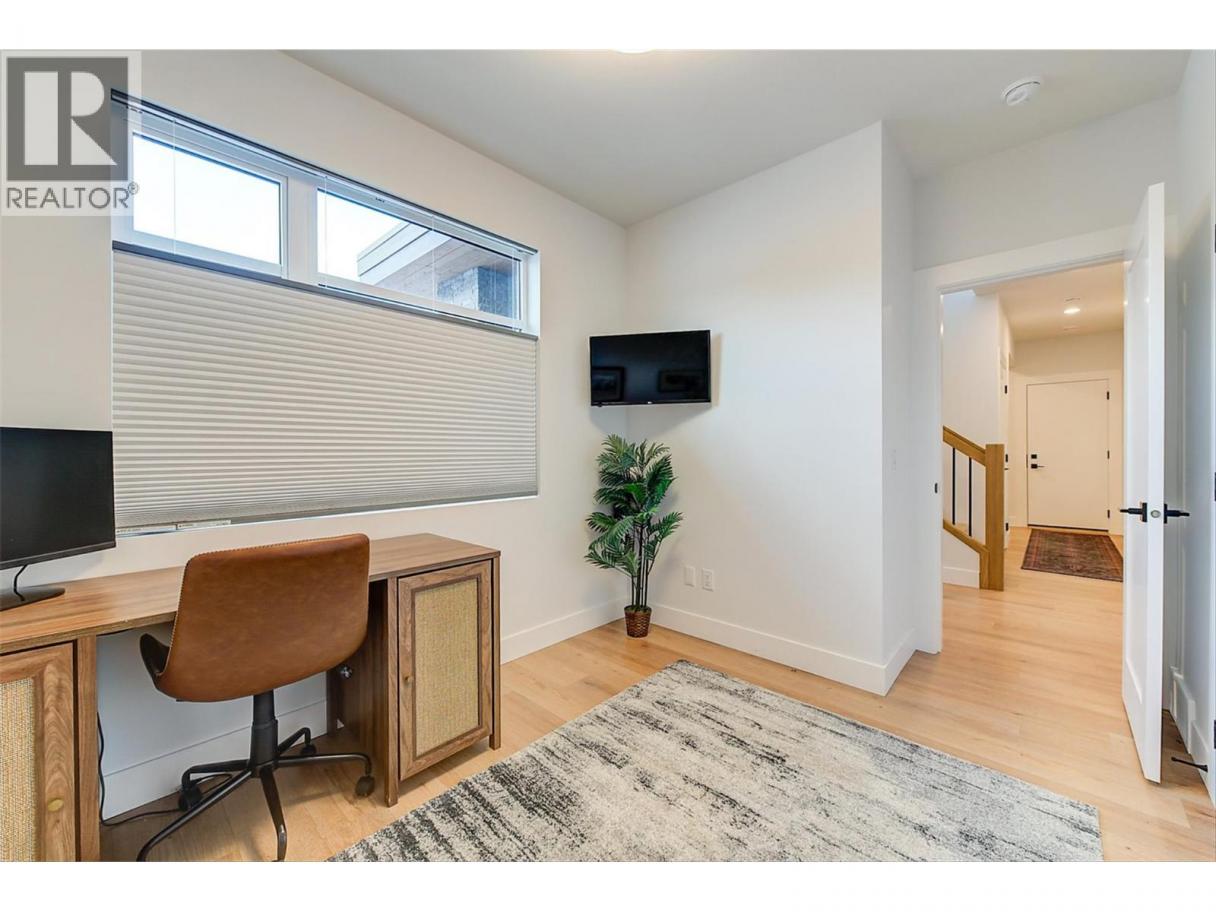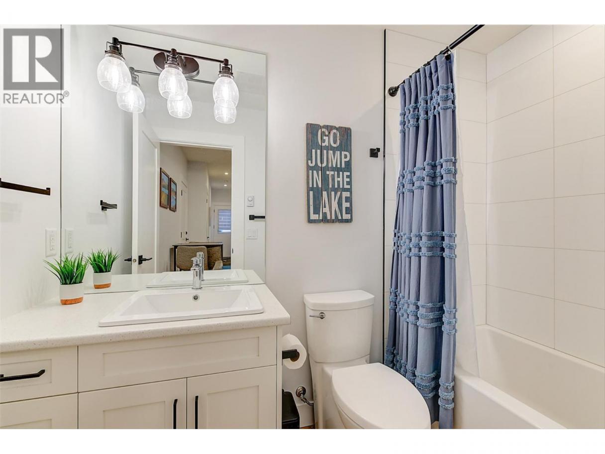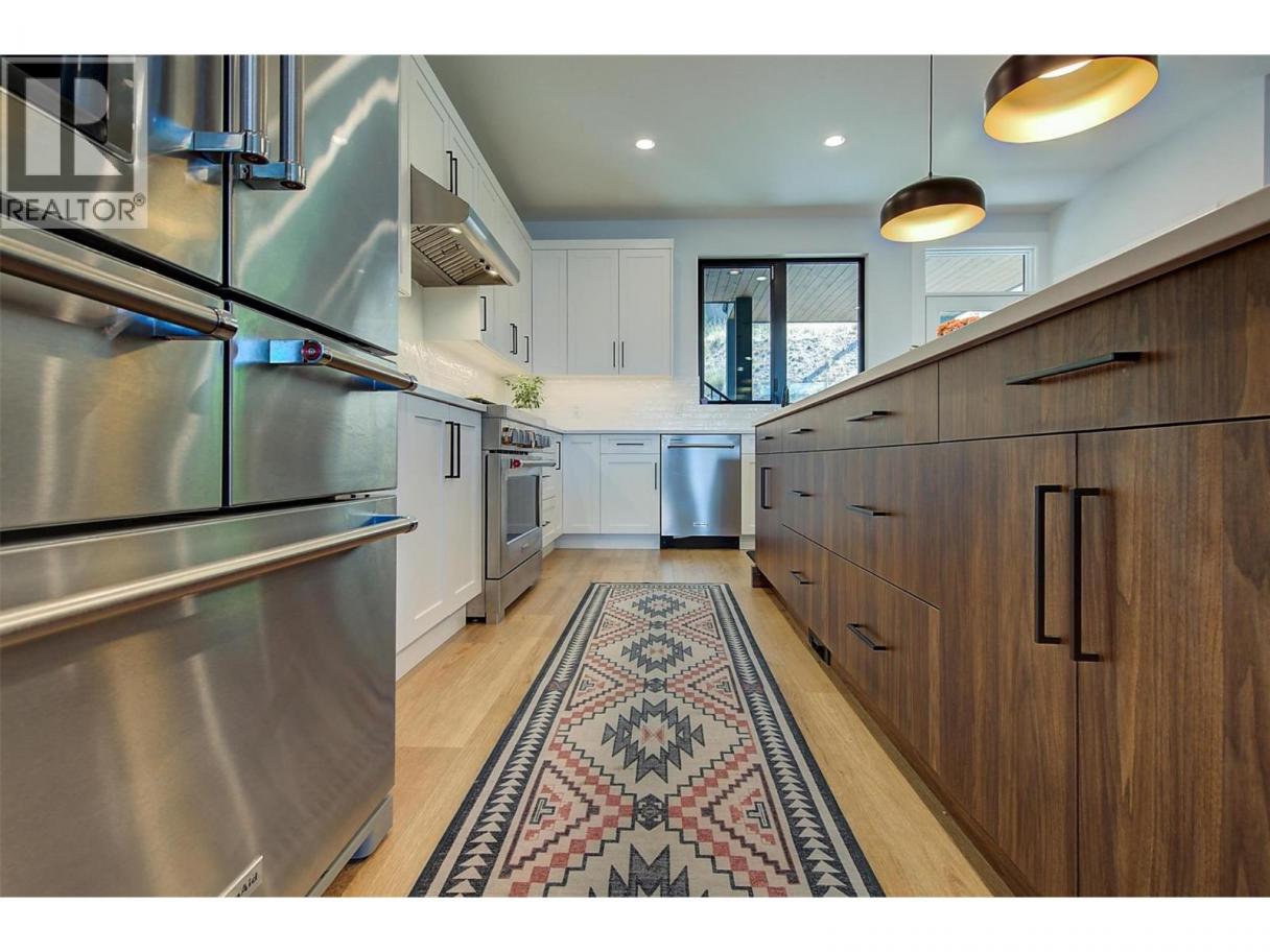 FANTASTICALLY RARE FIND in McKinley Beach!!! This Perfect Home Retreat has a 725 SF ROOF TOP PATIO W/ HOT TUB & LOUNGE OVERLOOKING OKANAGAN LAKE. BE THE ENVY OF THE NEIGHBOURHOOD while basking in the sun taking in breathtaking 180 degree; western views. Custom Crafted home built by one of Kelowna's finest Award Winning builders features an open concept floor plan w/ eat in kitchen that includes a large quartz, waterfall island & high end appliance package including a 36"" gas range. Rare again, large fenced backyard seen from your kitchen sink. Picturesque Walls of Windows facing East & West spray sunshine into your home no matter the season. Luxurious Primary Bedroom hosts an ideal ensuite escape that includes heated floors, 2 sinks, spacious shower & stand alone tub. 2 added bedrooms, full bath, 4th bedroom/den & laundry room complete this main residence. Find a Legal 1 bedroom Suite fitted with a private side entrance & separate patio, is the perfect space for guests when they come to visit, family or rent out for extra revenue. TOPPING all of this off is an incredible oversized double car garage with Epoxy floors & extra parking on the driveway. The McKinley Beach Association membership share a $5M amenity centre fittingly named ""Our Place"" includes a secure clubhouse w/ gym, indoor pool & hot tub. Outdoor community features include Pickle ball, Tennis & Basketball courts, Community Gardens, Beach, Marina (5 min walk or cruise down in a golf cart) & endless Hiking Trails. (id:6769)