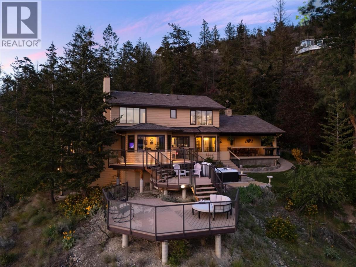 A rare offering where privacy, scale, and sweeping views converge—this 3.59-acre gated estate is the true definition of Okanagan living. Perfectly positioned to capture 180-degree, unobstructed lake and mountain views, the setting is nothing short of exceptional. From the moment you arrive, a sense of calm takes over. Surrounded by nature and complete privacy, this pristine property offers a lifestyle that feels worlds away—yet remains remarkably connected. Architecturally designed decks extend the living space outdoors, creating a seamless setting for entertaining, relaxing, and taking in the ever-changing landscape. The home spans over 3,000 sq.ft. with three spacious bedrooms plus a versatile den, thoughtfully designed for both everyday living and hosting. A beautifully updated kitchen anchors the main living area, complemented by a balance of formal and relaxed spaces, all oriented to maximize the views. What truly sets this property apart is the land—private, usable, and incredibly rare this close to the city. Located just 10 minutes to downtown Kelowna, 15 minutes to UBCO, and 20 minutes to the airport, it offers an unmatched balance of seclusion and convenience. This is a property that must be experienced—an opportunity to own a one-of-a-kind setting in one of the Okanagan’s most sought-after locations. (id:6769)