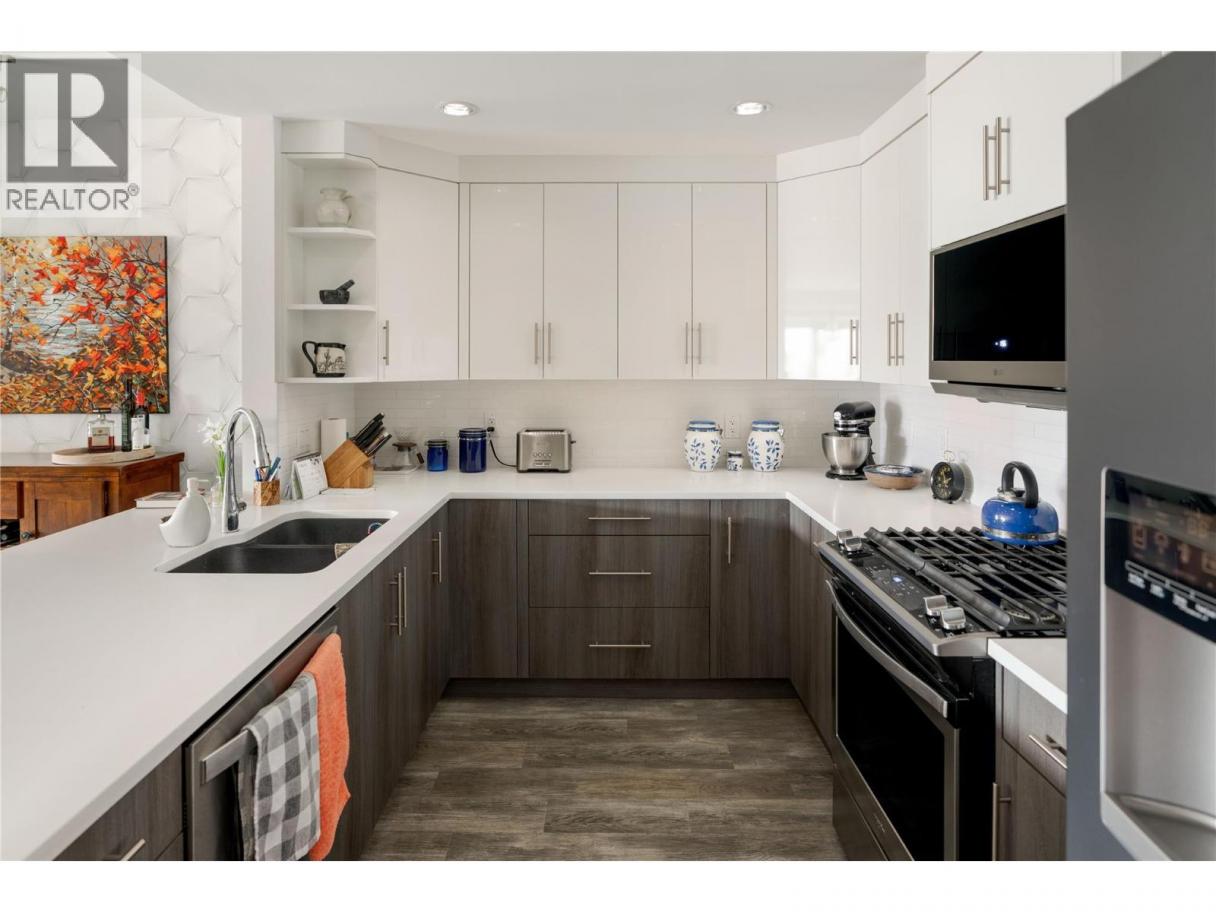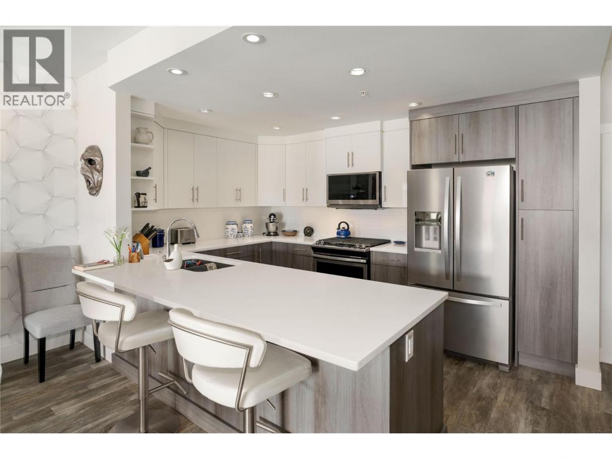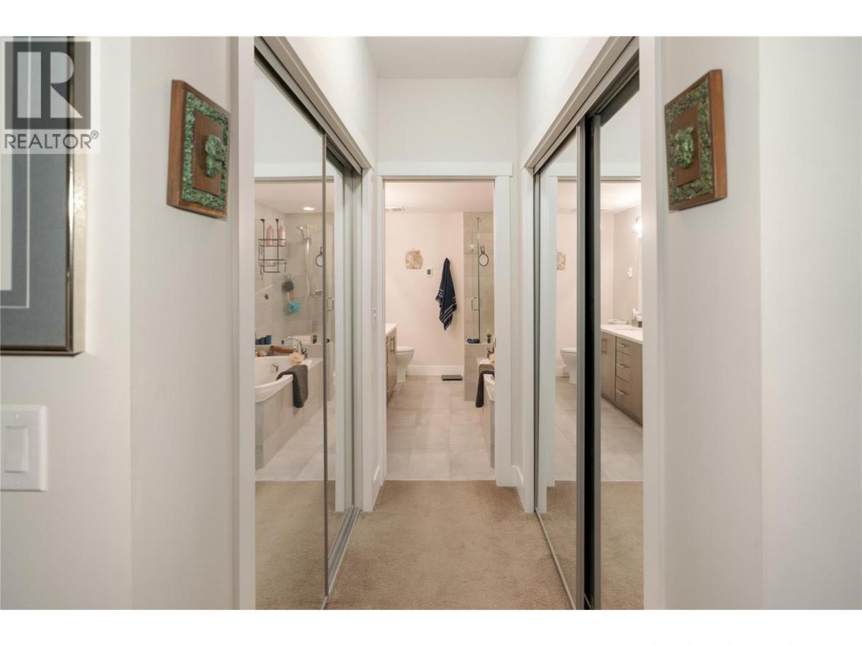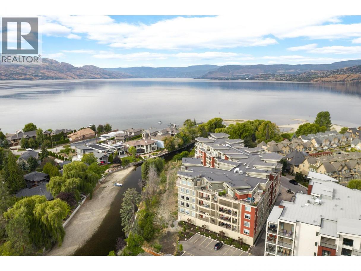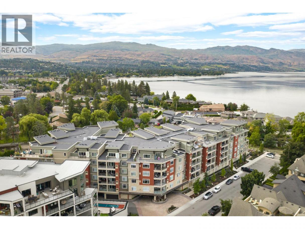 Resort-style living in the heart of the Lower Mission. Welcome to Waters Edge—an established community offering a true lock-and-leave lifestyle just steps to the shoreline, beaches, & everyday amenities. This spacious 2 bedroom, 2 bathroom residence offers bright, well-designed living. The open concept layout is functional & inviting, anchored by a generous kitchen featuring quartz countertops, gas range, stainless steel appliances & excellent storage. The kitchen flows seamlessly into the dining & living areas, where large windows bring in natural light and a fireplace creates a warm, comfortable gathering space. The primary suite is a standout, offering dual closets with organizers, and a beautifully finished ensuite complete with dual vanities, a glass shower & a soaker tub. The second bedroom is well separated for privacy & a full second bathroom and dedicated laundry room add everyday convenience. Step outside to the covered deck—perfect for morning coffee or evening unwinding. Waters Edge offers exceptional amenities including an outdoor pool, hot tub, fitness centre & social spaces, all within a secure, well-maintained building with parking. Surrounded by mature landscaping and just moments to the waterfront, mission creek trail, restaurants & shops, this location truly defines the Okanagan lifestyle. Just minutes from schools, shops, wineries, and the lake—this home offers a rare balance of elevated living and daily convenience in one of Kelowna’s most desirable settings. (id:6769)