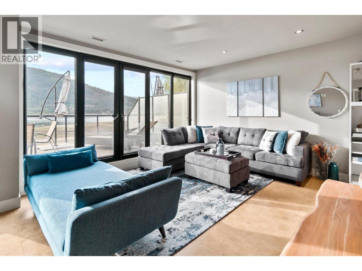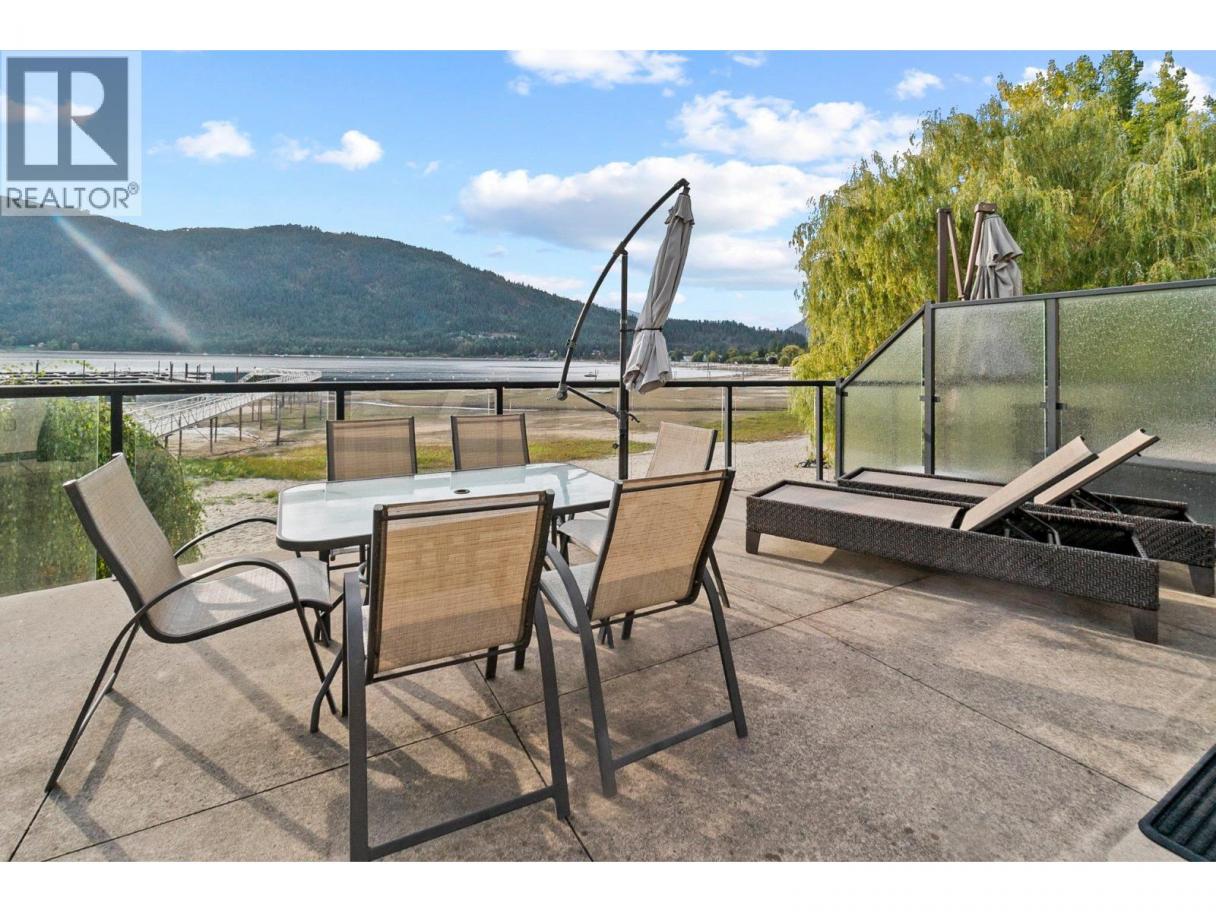 Experience the pinnacle of LAKESIDE living in this rare front facing, ground-floor unit at The Legacy on Mara. As the only CONCRETE building in Sicamous, The Legacy offers unparalleled peace and efficiency. Boasting floor-to-ceiling windows, this 3 bedroom, 2 bathroom unit invites a breathtaking 180-degree VIEW of Mara Lake directly into your living room. Or you can escape to your primary bedroom with continuous views of the lake and a SPA Like ENSUITE. You truly do experience lakeside living at it's finest! Now step out onto your expansive private deck—perfect for sunset cocktails—directly toward the pristine sandy beach or the HEATED underground pool. This TURNKEY offering, with strata fees including ALL UTILITIES is designed for the discerning owner. Featuring GEOTHERMAL climate control, TWO heated underground parking stalls, a private storage unit and most importantly a sought-after boat slip in the deepwater marina. Whether you are chasing world-class powder in Revelstoke (just 45 min away) or spending beautiful summers boating on the water, this is the ultimate four-season destination! (id:6769)