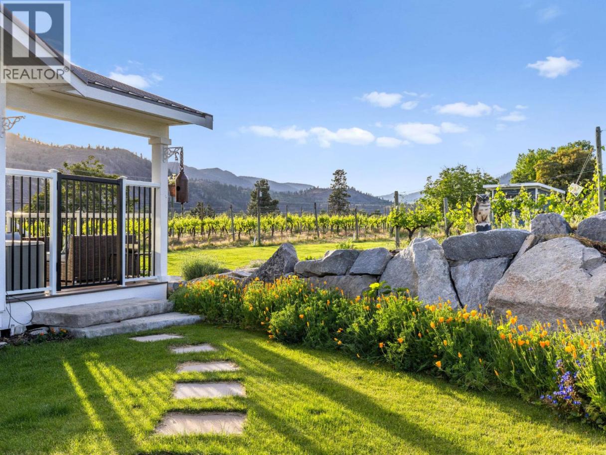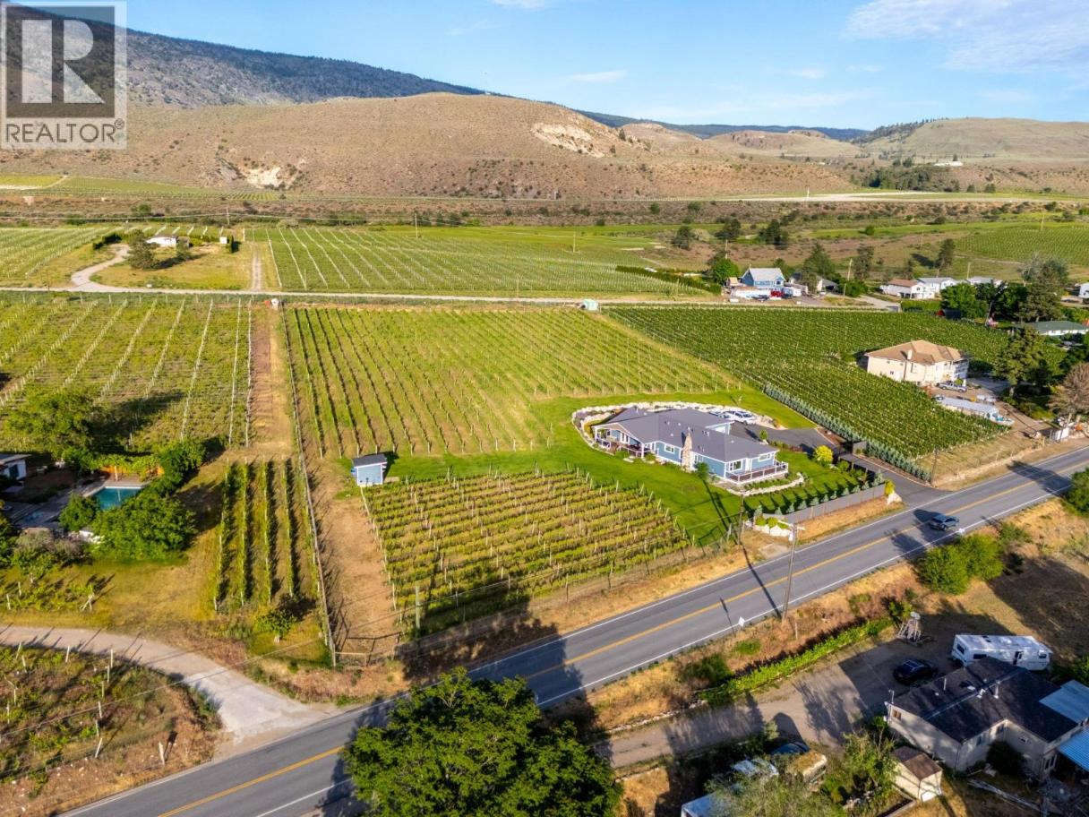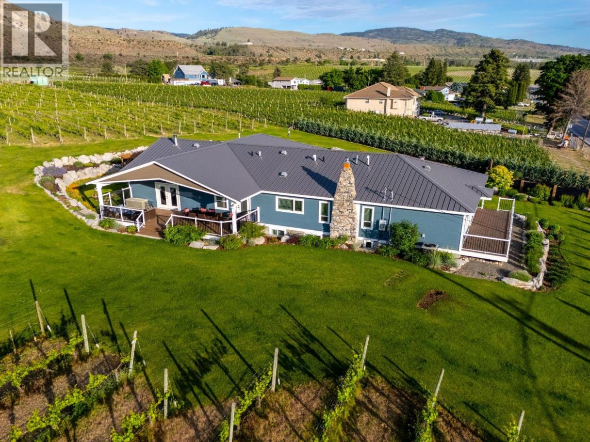 STUNNING HOME, VINEYARD ELEGANCE AND TURNKEY INCOME! Experience effortless vineyard ownership and immediate income from day one! This 3.22-acre Oliver estate features 2.2 acres of Roussanne grapes under contract with the acclaimed Le Vieux Pin Winery—offering hands-free cultivation, guaranteed revenue, and a passive return as you savour the South Okanagan lifestyle. This spectacular home boasts over 3400+ sqft of recently added on and completely renovated 5 Bedroom, 4 Bath home keeping the elegance farmhouse feel with the latest mechanical for full efficiency. Heating and cooling systems boast gas furnace with hot water on demand incorporated directly through the furnace, AC cooling, gas fire places in the master bedroom and living room. Seamless Indoor–Outdoor Entertaining Thoughtfully renovated for both intimate gatherings and grand fetes, the open-concept layout showcases European-inspired cement tile, expansive doors blurring the lines between indoors and out. Dine al fresco beneath a shaded pergola or sip wine on the oversized deck, surrounded by monarchs, hummingbirds, and lush pollinator gardens. The primary suite occupies its own wing, offering sweeping vineyard views—perfect for quiet mornings and evening unwinds. Just a short distance to downtown Oliver shopping, restaurants, recreation, the best wineries, parks, schools and more! Oliver features Fairview Mountain Golf Course and driving range and Area 27 Raceway Park only a few km away for those car enthusiasts! (id:6769)