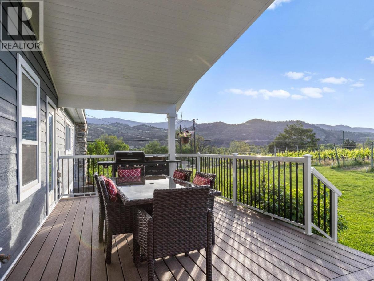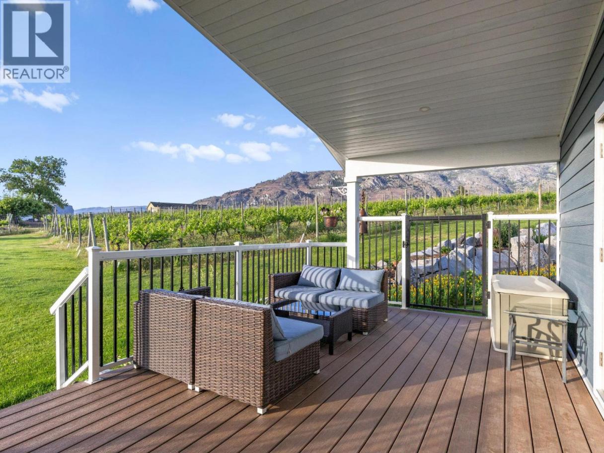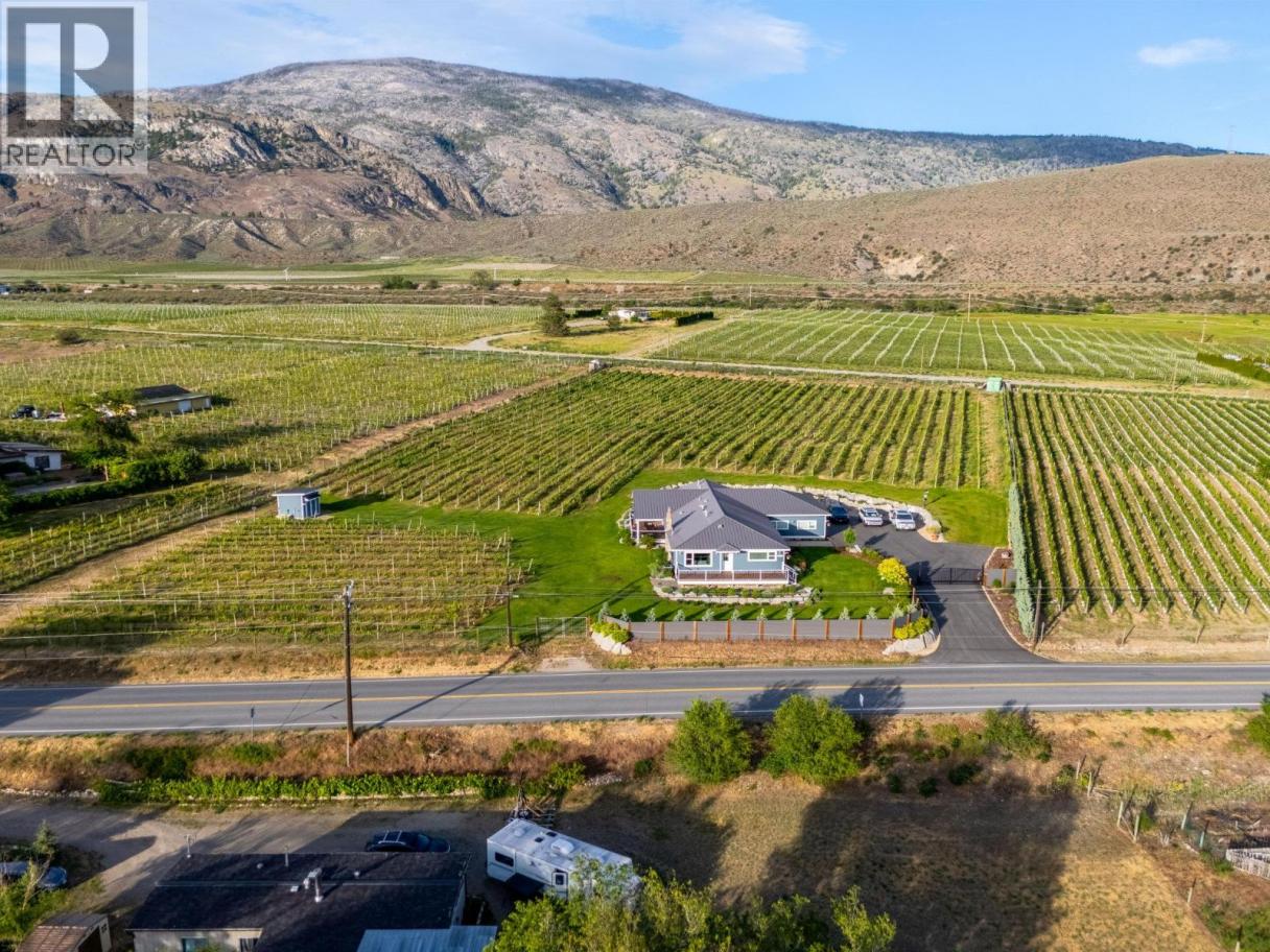 STUNNING HOME, VINEYARD ELEGANCE AND TURNKEY INCOME! Experience effortless vineyard ownership and immediate income from day one! This 3.22-acre Oliver estate features 2.2 acres of Roussanne grapes under contract with the acclaimed Le Vieux Pin Winery—offering hands-free cultivation, guaranteed revenue, and a passive return as you savour the South Okanagan lifestyle. This spectacular home boasts over 3400+ sqft of recently added on and completely renovated 5 Bedroom, 4 Bath home keeping the elegance farmhouse feel with the latest mechanical for full efficiency. Heating and cooling systems boast gas furnace with hot water on demand incorporated directly through the furnace, AC cooling, gas fire places in the master bedroom and living room. Seamless Indoor–Outdoor Entertaining Thoughtfully renovated for both intimate gatherings and grand fetes, the open-concept layout showcases European-inspired cement tile, expansive doors blurring the lines between indoors and out. Dine al fresco beneath a shaded pergola or sip wine on the oversized deck, surrounded by monarchs, hummingbirds, and lush pollinator gardens. The primary suite occupies its own wing, offering sweeping vineyard views—perfect for quiet mornings and evening unwinds. Just a short distance to downtown Oliver shopping, restaurants, recreation, the best wineries, parks, schools and more! Oliver features Fairview Mountain Golf Course and driving range and Area 27 Raceway Park only a few km away for those car enthusiasts! (id:6769)