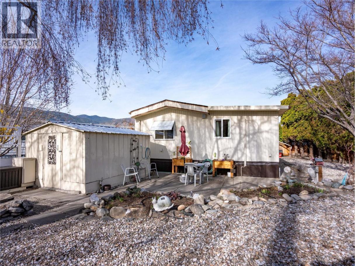 Caravilla Estates, a 55+ Community in Penticton. Step into a well-laid-out living space that feels both inviting and functional. The spacious primary suite provides a relaxing retreat at the end of the day, complemented by a convenient half bath. There is a second bedroom and also a full 4-piece main bathroom and a laundry area. A generous fenced backyard space gives you room to enjoy container gardening or a bit of fresh air. There’s even a garden shed for your tools and hobbies. The covered porch is one of those features that will quickly become your favourite spot since it's perfect for morning coffee or evening wine. With a 3-head heat pump for heating/cooling and two cozy gas fireplaces, this home keeps you comfortable year-round. You’ll appreciate parking for up to three vehicles, plus an additional side yard space for a small RV. Enjoy the community pool, (a big hit when the grandkids visit), or unwind in the hot tub. The Clubhouse is available for social gatherings. Situated just minutes from Skaha Lake, you’re close to walking paths and the beach and easy access to shopping and everyday amenities. Great value with a low monthly fee of just $208 and you own your own lot. This is an opportunity to enjoy a low-maintenance lifestyle without sacrificing ownership or independence. Book your showing today! (id:6769)