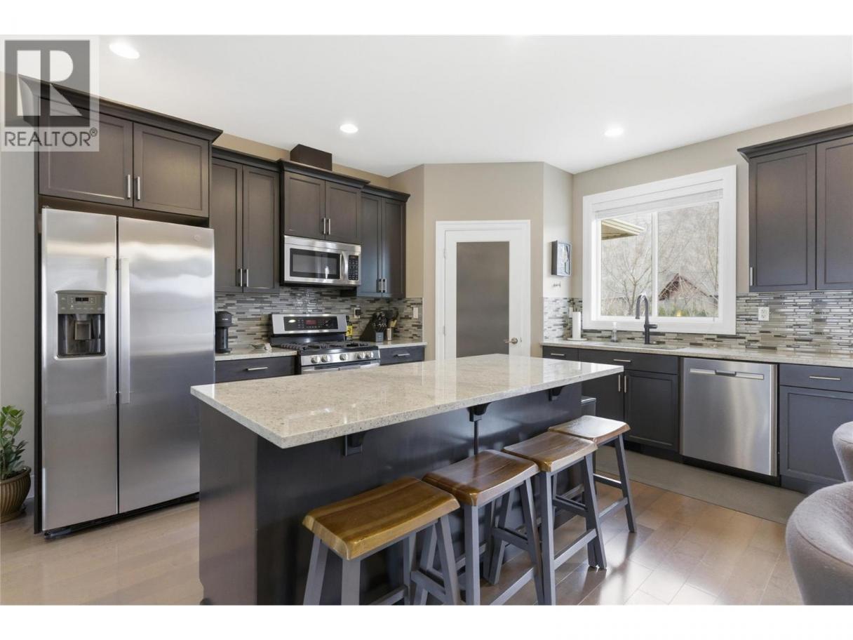 Step into this immaculate family home with great suite potential in Beachmount Estates. Main floor you will find a large open concept great room with tons of natural light & vaulted ceilings. Gorgeous kitchen offers stainless steel appliances, gas range, stone counters & a large pantry. Front & back decks with great views of the mountains. 3 bedrooms on the main including the large primary bedroom with double walk-in closets & ensuite bath a 3pc tiled shower. Also a 4 piece bath + separate laundry room with hookups to add main floor laundry. Downstairs offers 2 bedrooms, 4pc bath, large rec room, laundry & 2 separate entrances. Great suite potential with 100 amp sub panel & roughed in plumbing + option to keep 1 bedroom for main house use. Low-maintenance yard feat an 8x10 shed, covered seating area & grass space. Other features incl. 200 amp service, gas BBQ hookup, garage heater & more! Located in a nice neighbourhood close to the river's trail and Centennial park. Shopping, schools and transportation nearby. (id:6769)