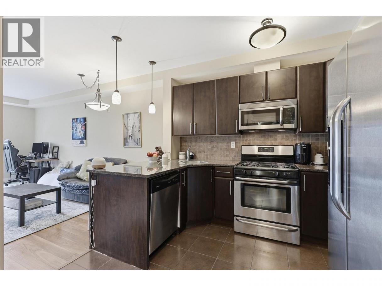 Welcome to elevated living in this stunning top-floor condo, where breathtaking views over the South Thompson River set the tone for a truly special home. Thoughtfully designed with one bedroom plus a den, the layout feels bright and spacious—offering the perfect balance of open living and a dedicated space for a home office, guest area, or quiet escape. The kitchen is both stylish and functional, featuring stainless steel appliances, a natural gas range, wood cabinetry, and polished granite countertops—ideal for everyday living and entertaining alike. Situated in a prime location just steps from TRU and only minutes to shopping, dining, and all Kamloops has to offer, convenience is at your doorstep. Whether you're entering the market, simplifying your lifestyle, or adding to your investment portfolio, this property offers flexibility with both rentals and pets allowed. Complete with secure underground parking and a dedicated storage locker, this is an exceptional opportunity to own a stylish, move-in-ready home in the heart of the city. (id:6769)
