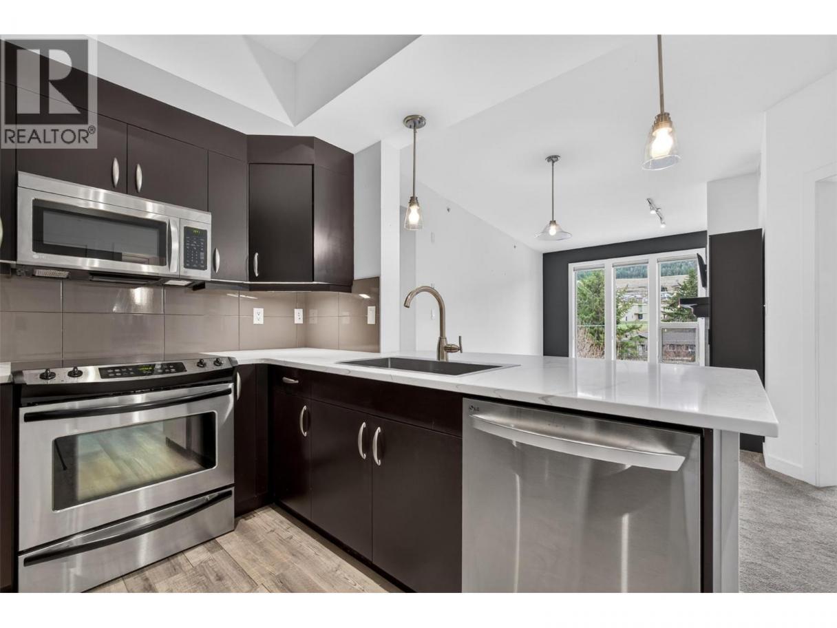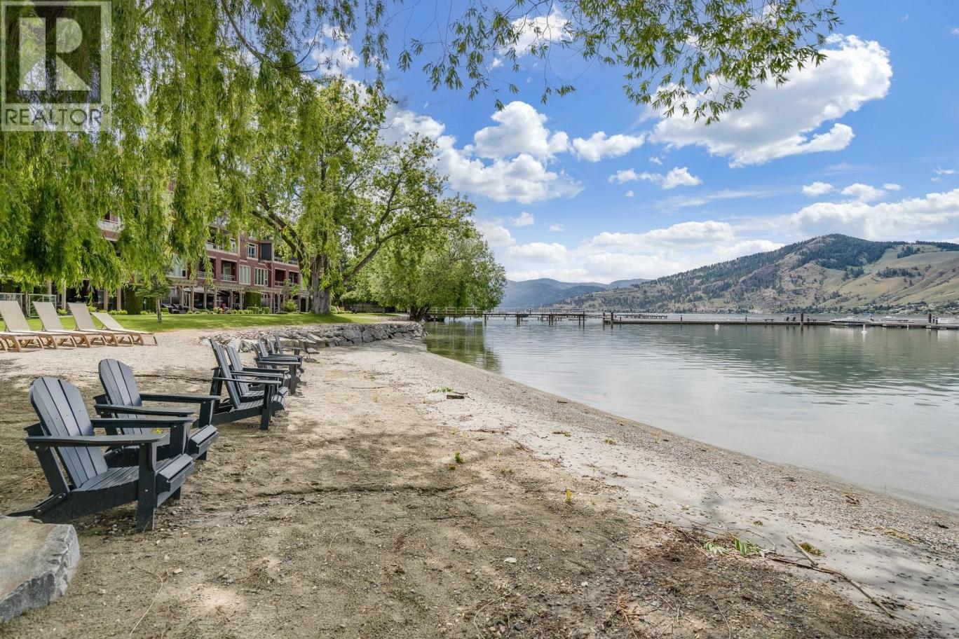 WHERE ELSE CAN YOU FIND THIS KIND OF VALUE? LAKEFRONT LIVING, YOUR OWN BOAT SLIP, AND SHORT-TERM RENTAL FLEXIBILITY-RARE!! Welcome to elevated, resort-inspired living at The Strand Lakeside Resort, where every day feels like a getaway along the shores of Okanagan Lake. This beautifully updated top-floor corner unit offers approximately 944 sq.ft. of bright, effortless living with 2 bedrooms and 2 full bathrooms. Soaked in natural light, the open-concept layout is designed for connection—whether you're hosting apres, beach dinners or unwinding fireside. The living room flows seamlessly onto a spacious, sun-filled patio with dual access, creating the perfect setting for morning coffee, easy summer lounging, and relaxed evenings under the Okanagan sky. The kitchen has been thoughtfully refreshed with quartz countertops, stainless appliances, a beverage fridge, and a highly functional pantry—blending style with everyday ease. Both bedrooms feel like private retreats, with the primary featuring a walk-through closet, ensuite, and charming Juliet balcony. The second bedroom offers incredible flexibility with a Murphy bed, Jack & Jill bath, and direct patio access—ideal for guests or maximizing rental appeal. With approx. $25,000 in upgrades, this home is truly move-in ready and includes secure underground parking and dedicated storage for added convenience. Step outside and immerse yourself in the full resort experience—private sandy beach, marina, pool, hot tub, and beautifully maintained grounds. Paddleboard in the morning, boat in the afternoon, and unwind on your private patio as the day winds down. Whether you're looking for a full-time home, a lock-and-leave escape, or a high-performing investment, this is Okanagan living at its most effortless—and most rewarding! (id:6769)