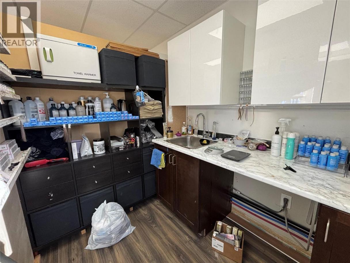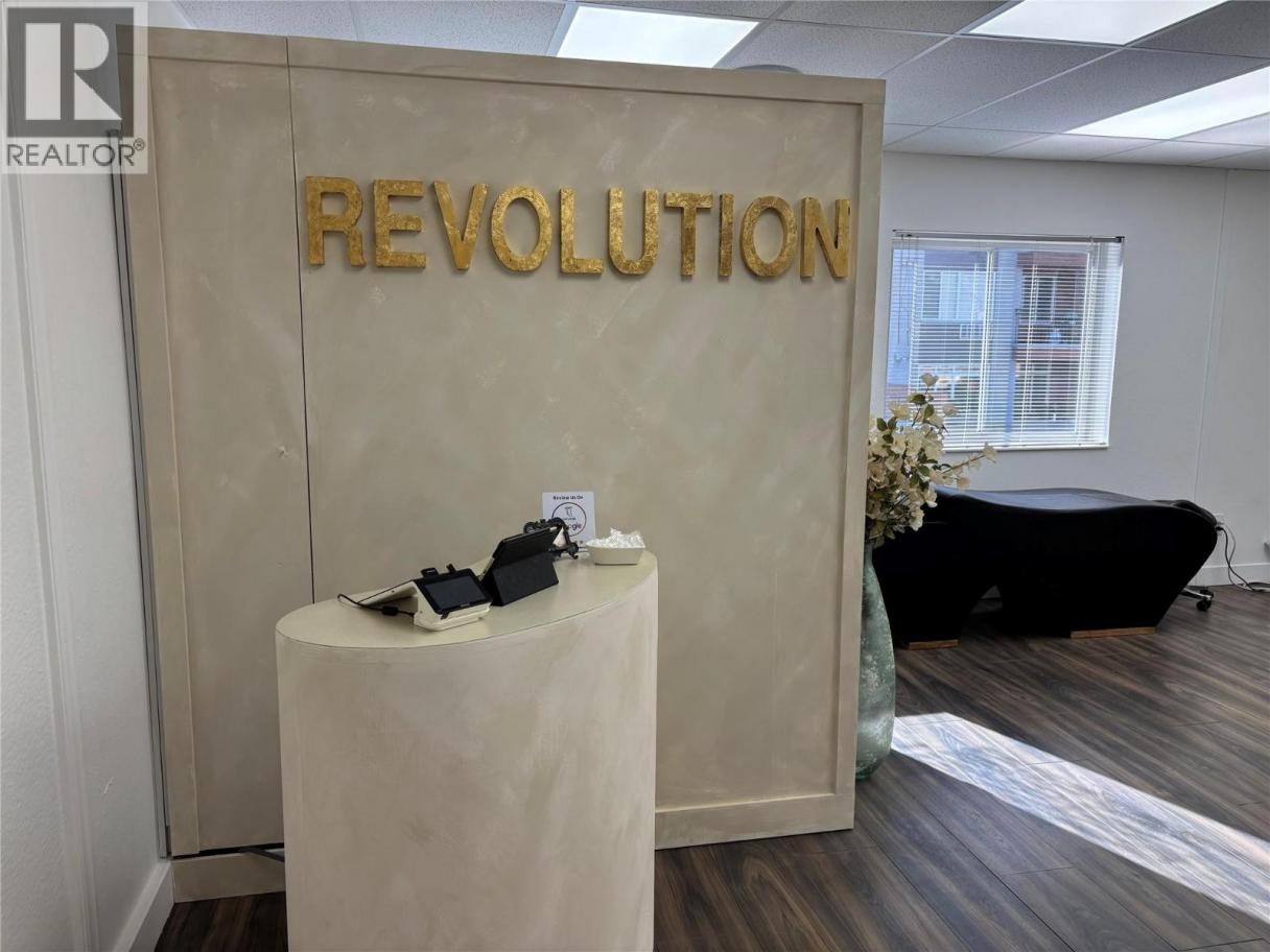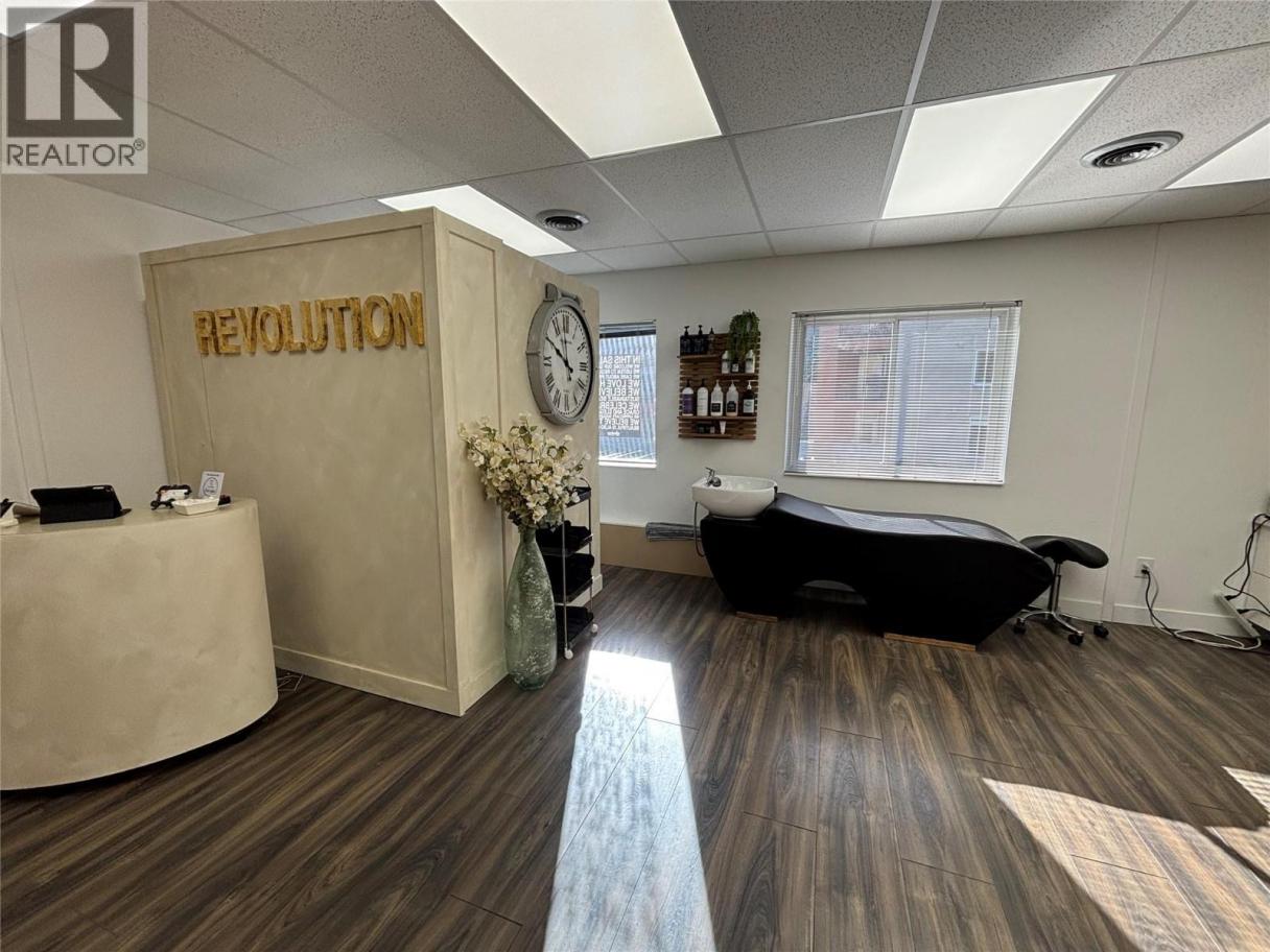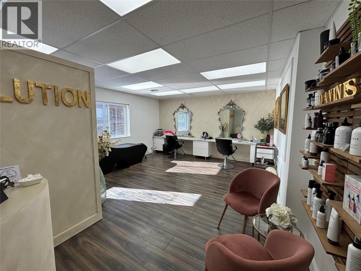 Bright, modern, and move-in ready, 201–1579 Sutherland Ave is a 392 SF second-floor unit offering a turnkey opportunity in a desirable central area of Kelowna. The space features durable vinyl plank flooring and a wall of south-facing windows that flood the unit with natural light, creating an inviting and elevated environment for both clients and customers. Currently built out as a hair salon, the open-concept layout offers excellent flexibility for a variety of uses, complemented by thoughtful improvements including two sinks—one of which is located within a well-designed storage area featuring ample counter space and shelving. Located within a well-maintained professional office building, the unit includes one dedicated parking stall, convenient access to a shared front parking lot for clients and customers, and use of common second-floor washrooms. A rare opportunity to secure a bright, functional, and versatile space in one of Kelowna’s most accessible central locations. Lease is triple net; the gross monthly rent includes estimated additional rent of $7.50 psf 2025. (id:6769)