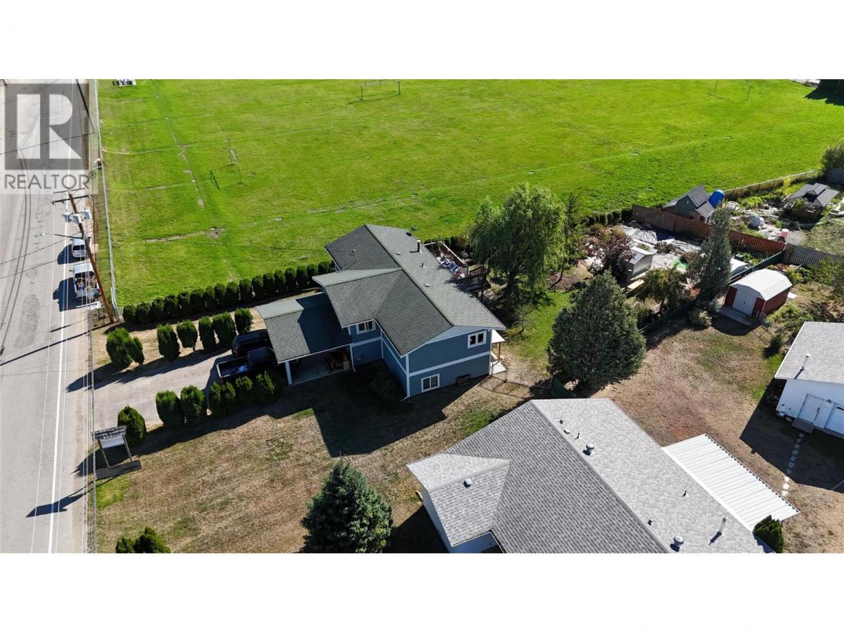 Mountain views, a spacious lot, and two full suites give this home plenty of perks while being conveniently located in town. A gardener's dream awaits outside, with beds prepared & covered, ready for your choice of crops. Border gardens add charm with flowers & mature trees provide welcoming shade during summer. The fully fenced backyard provides a safe, private space for children & pets, while the drive-through gate allows for easy access with vehicles. Ample parking, including two covered spaces, a paved driveway, & additional oversized parking on both sides. Inside, the upper suite includes two large bedrooms, a bright kitchen & dining area, and a large living room that opens to the sun deck. Downstairs, are two more large bedrooms, a second kitchen, and an open-concept living & dining space. Both levels offer separate entrances, along with their own laundry, bathroom & storage areas. This well-maintained home has seen numerous thoughtful updates, including a new furnace, hot water tank, deck, siding, sheds, insulation, windows & doors; new counter tops & tub upstairs in 2025, in-law suite completed in 2024. Extras include a 100-gallon rain barrel system, two storage sheds, a lawn mower, weed whacker, & irrigation lines. - Located within walking distance to schools, shops, community events, parks, sports & the beach. Two minutes drive to the hwy 97A & town center; 20 min to Salmon Arm, 28 min to Vernon, 3min to Shuswap River, 19 min to Mara Lake, 33 min to Mabel Lake. (id:6769)