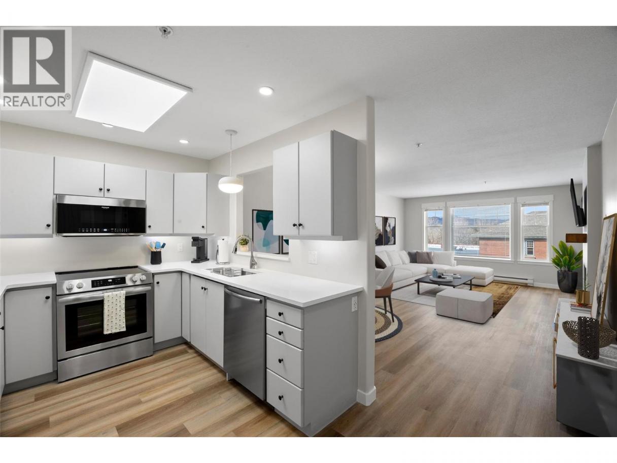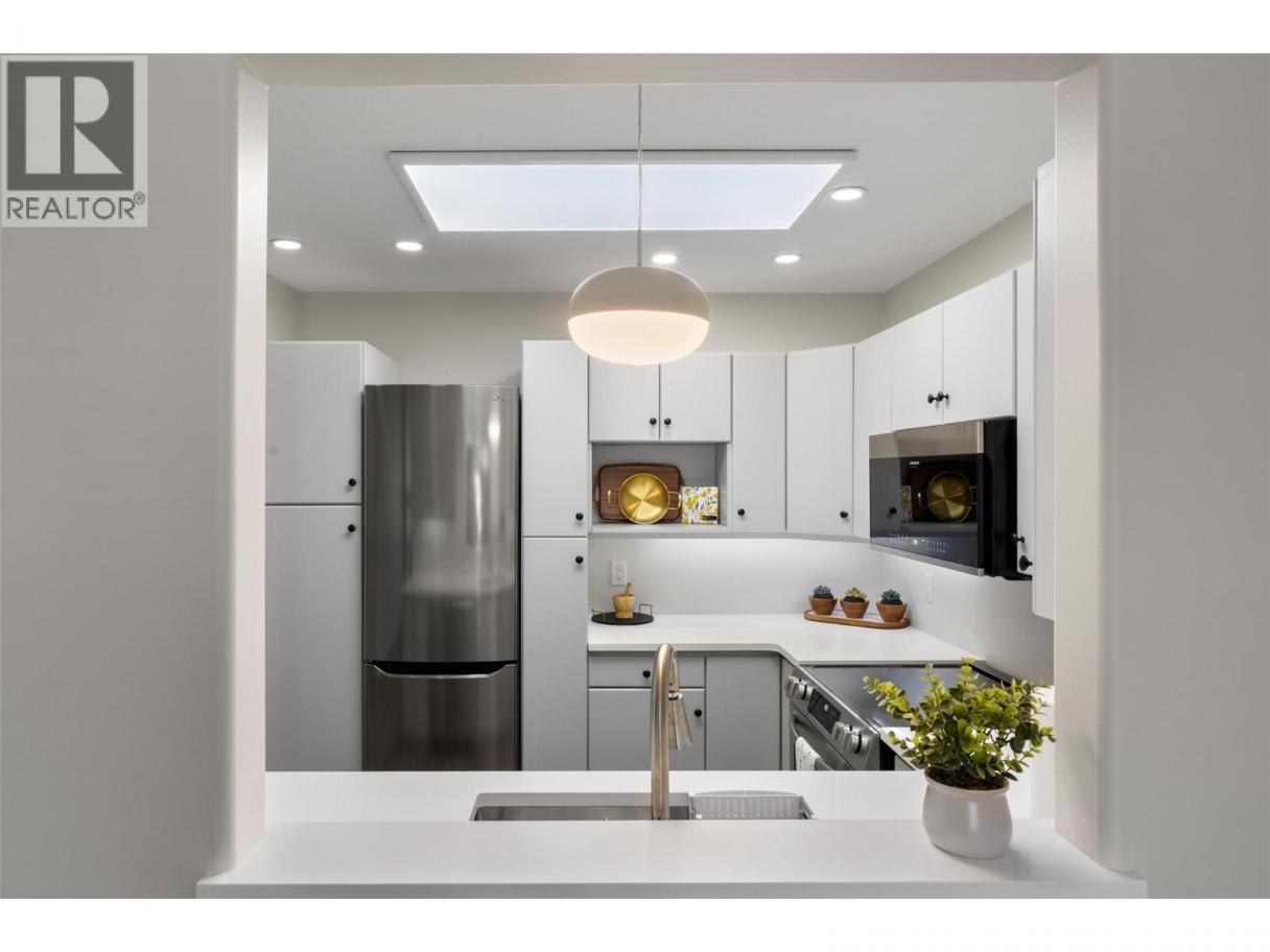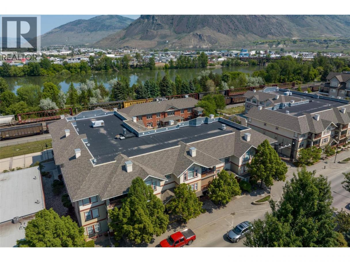 This bright, second-floor 2-bed, 2-bath condo is perfectly located in the heart of downtown Kamloops, right next to the Sandman Centre and just steps from Riverside Park and the scenic Rivers Trail along the Thompson River. Located on the courtyard side, protected from road and train noise, this peaceful North East-facing corner unit has it all - close to shops, restaurants, and events, without giving up easy access to nature. The unit has been freshly updated with new quartz countertops, all brand new high-end appliances, including washer & dryer, new paint throughout, new flooring, new window trim, new light fixtures and beautifully renovated bathrooms. The unit also features a large walk-in closet through the en-suite in the primary bedroom, a spacious patio where you can sit back and enjoy the mountain views and an ambient gas fireplace in the living room for those cozy evenings in. Plenty of storage/closet space throughout, and a large storage locker is included, just steps away from the unit and with power, perfect for a deep freeze. The building has the benefit of a large meeting/library space which can be rented for private use, and 1 secure parking stall is included in the heated underground garage, in a prime location adjacent to the elevator entrance, with easy disabled access. Low-maintenance downtown living with modern finishes, in a highly sought-after strata development. (id:6769)