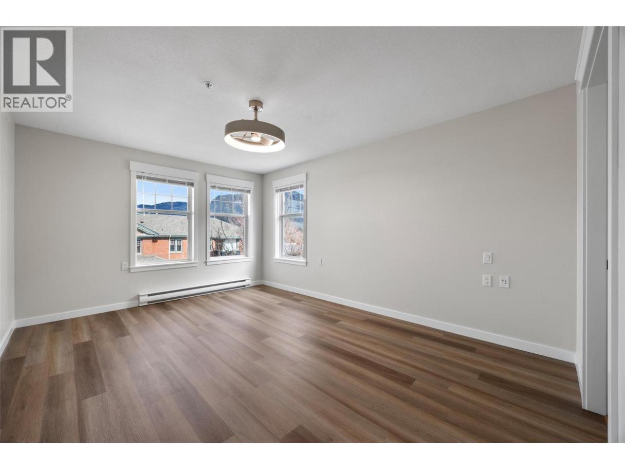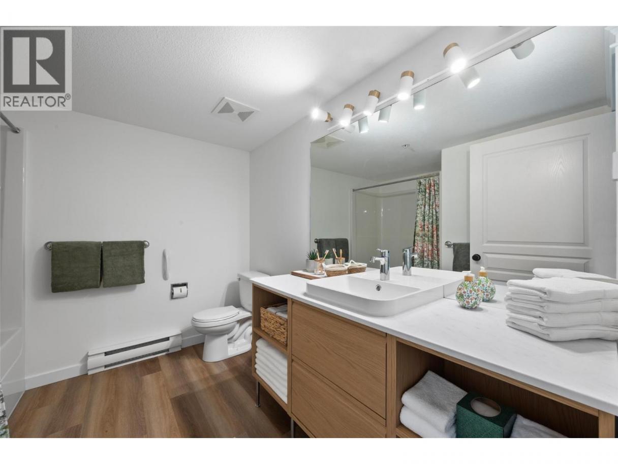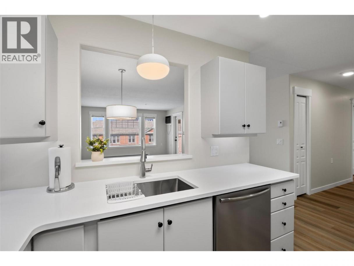 This bright, second-floor 2-bed, 2-bath condo is perfectly located in the heart of downtown Kamloops, right next to the Sandman Centre and just steps from Riverside Park and the scenic Rivers Trail along the Thompson River. Located on the courtyard side, protected from road and train noise, this peaceful North East-facing corner unit has it all - close to shops, restaurants, and events, without giving up easy access to nature. The unit has been freshly updated with new quartz countertops, all brand new high-end appliances, including washer & dryer, new paint throughout, new flooring, new window trim, new light fixtures and beautifully renovated bathrooms. The unit also features a large walk-in closet through the en-suite in the primary bedroom, a spacious patio where you can sit back and enjoy the mountain views and an ambient gas fireplace in the living room for those cozy evenings in. Plenty of storage/closet space throughout, and a large storage locker is included, just steps away from the unit and with power, perfect for a deep freeze. The building has the benefit of a large meeting/library space which can be rented for private use, and 1 secure parking stall is included in the heated underground garage, in a prime location adjacent to the elevator entrance, with easy disabled access. Low-maintenance downtown living with modern finishes, in a highly sought-after strata development. (id:6769)