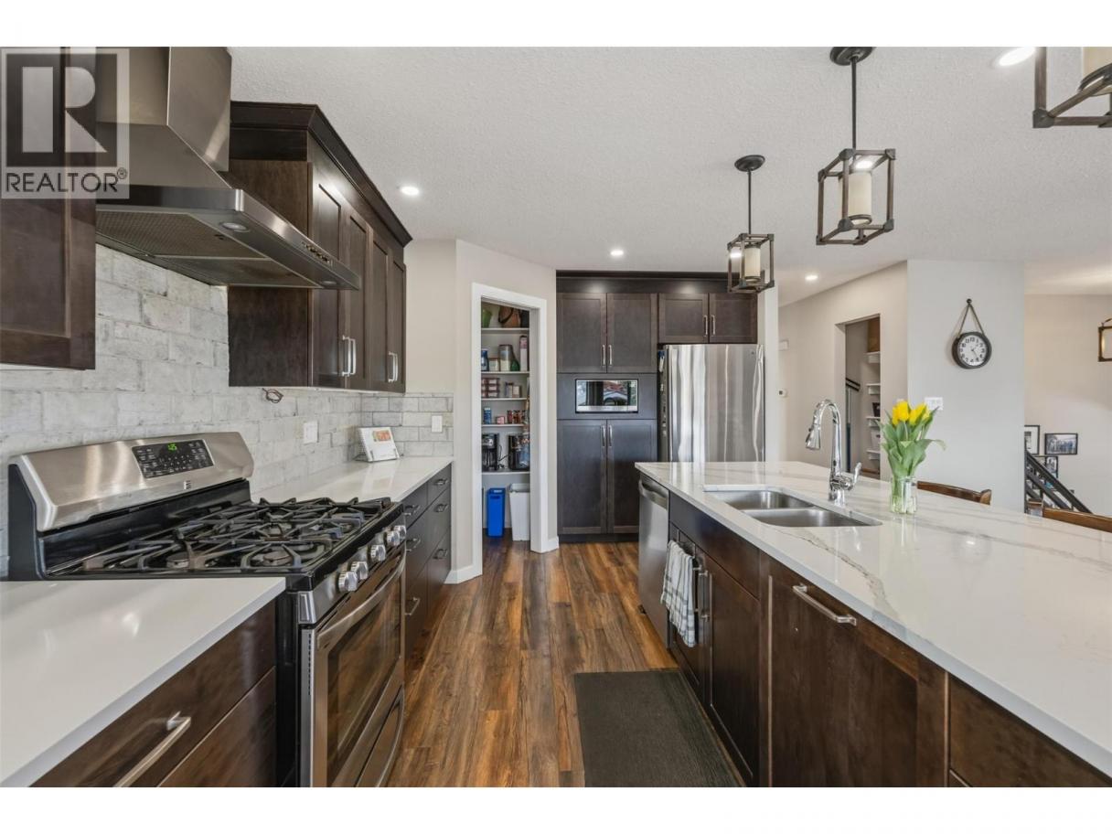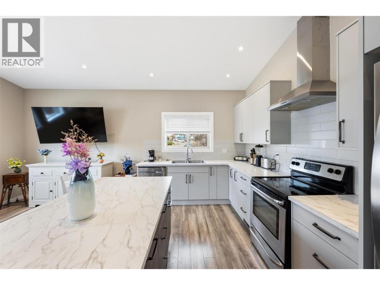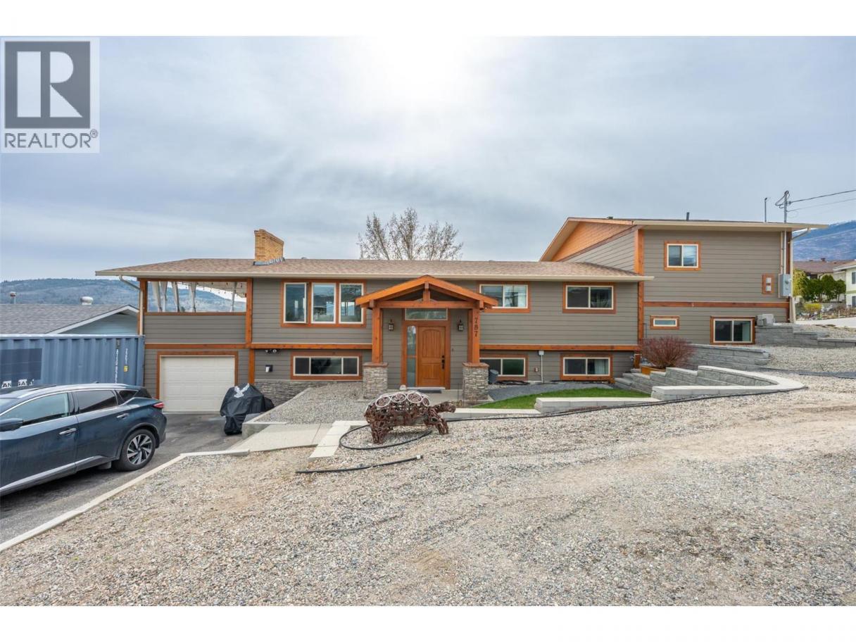 Perched to capture sweeping east-to-south valley views, this extensively updated Oliver home delivers space, flexibility, and income potential. The main residence offers approx. 2,600 sq.ft. with 5 bedrooms and 3 bathrooms—3 beds on the main level upstairs including the primary bedroom and ensuite. A fully renovated kitchen features new cabinetry, counters, lighting, and a walk-in pantry, opening to a generous living area and massive covered patio. Updated vinyl windows, HardiePlank exterior with cedar accents, new windows, updated forced air gas furnace, A/C and water softening system. Downstairs adds 2 bedrooms, a full bath, pellet stove, and an extra-long garage (over 40 ft) ideal for vehicles, storage, or a workshop. But what makes this property standout is the (almost new), self-contained attached carriage home (additional 1,100 sq.ft.) w/ separate utilities. This smart 1-bed, 2-bath layout offers an upper-level kitchen with ample storage and a 2-piece bath, plus a lower-level primary, office nook, and full 4-piece ensuite. The carriage home is currently rented at $1,850/month. plus electricity, providing immediate income or mortgage relief. Outdoor features include underground irrigation, new glass railings and duradeck on the deck overlooking the valley. All combined, this property features 3800 sq.ft. of living space. Ideal for multi-generational living or leveraging suite income to purchase your family home! You've been waiting for something unique-It's here! (id:6769)