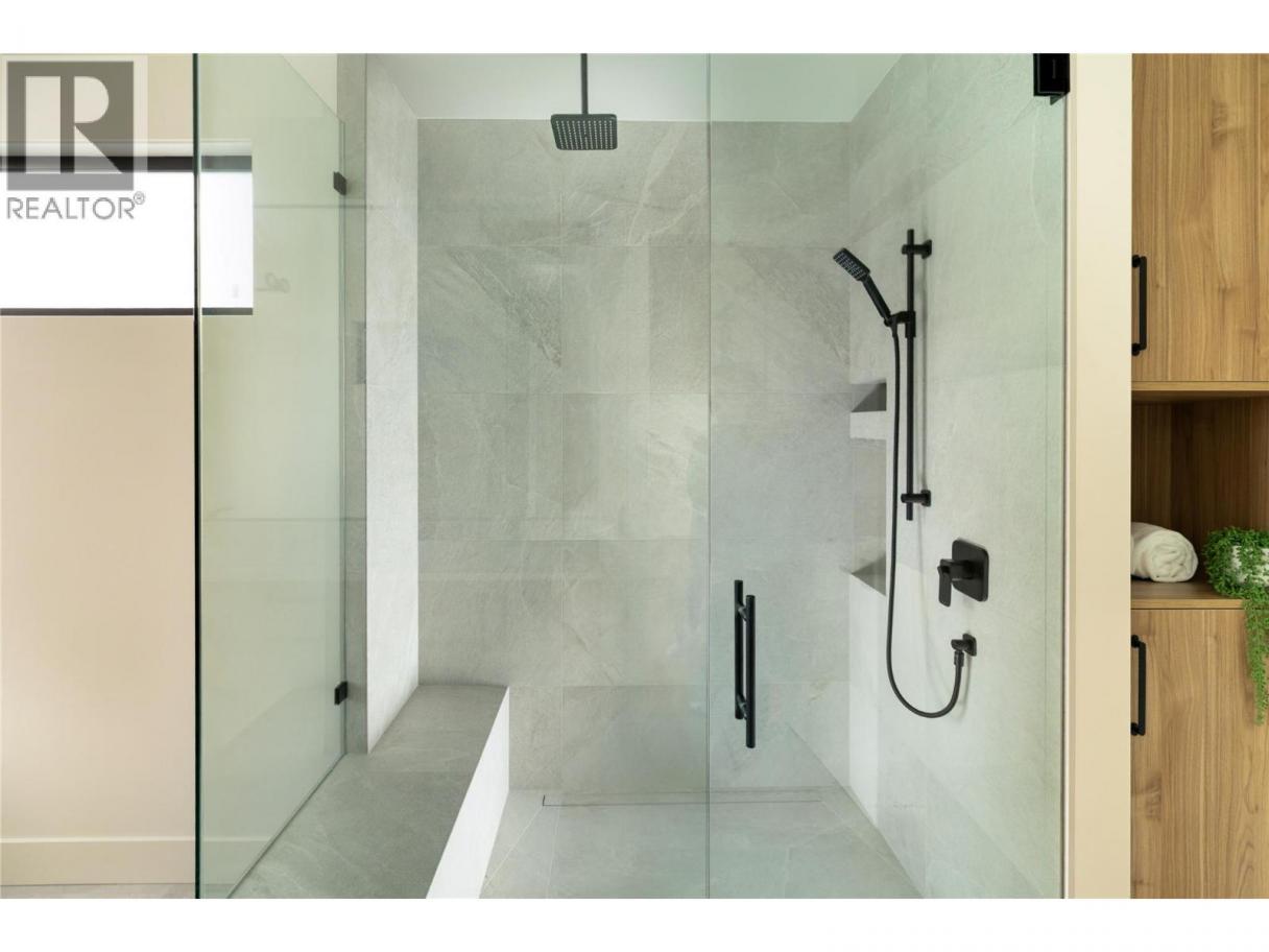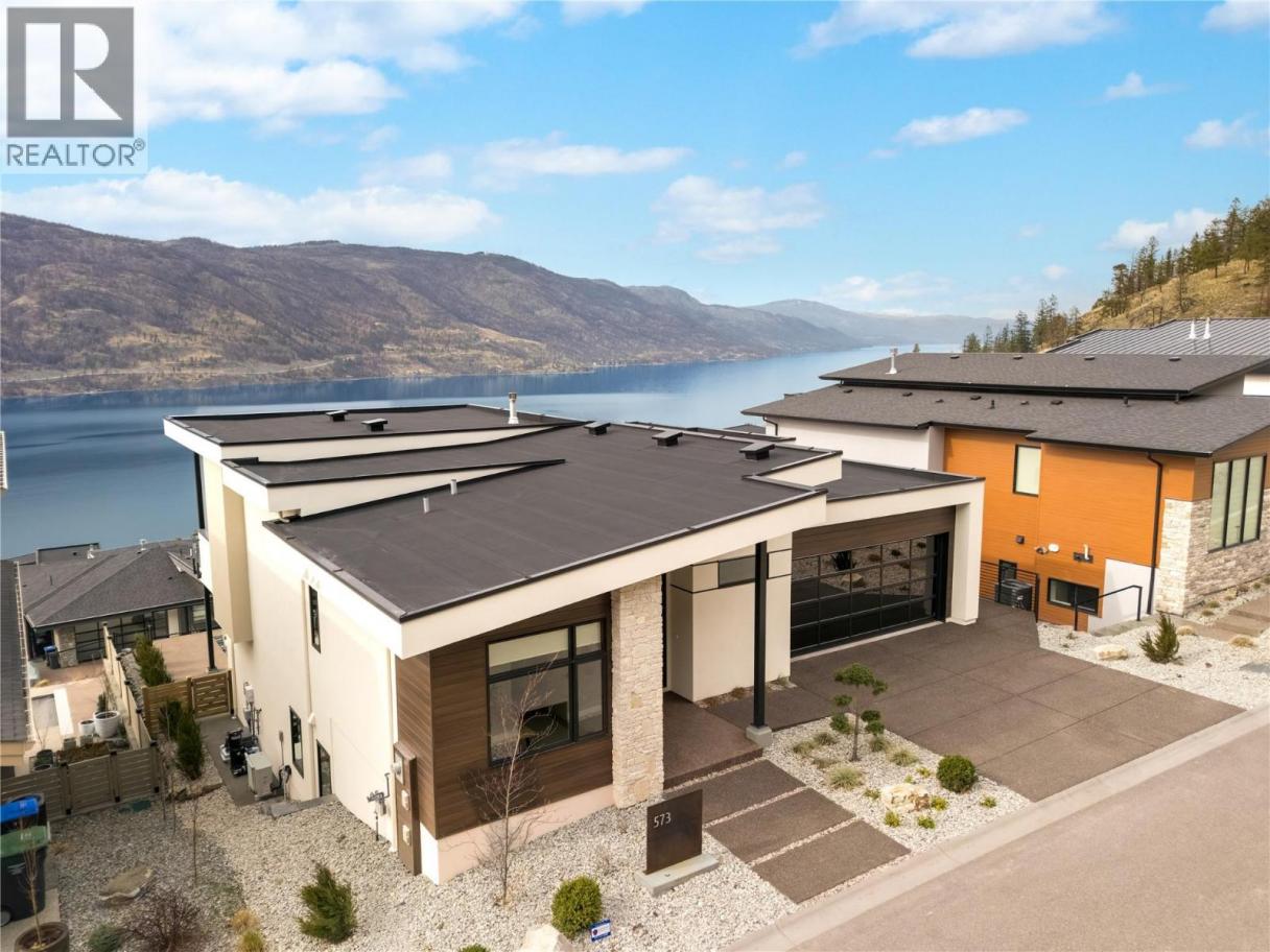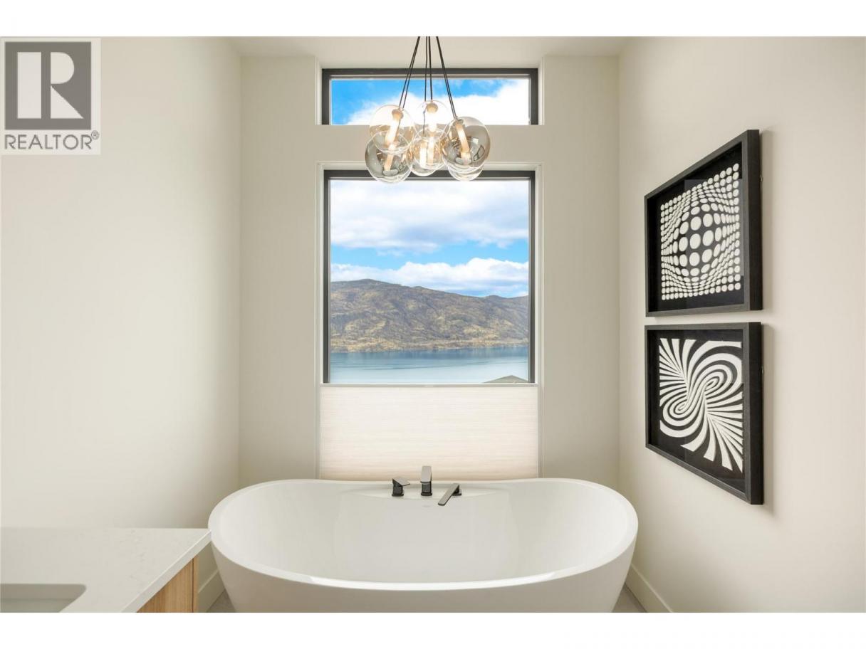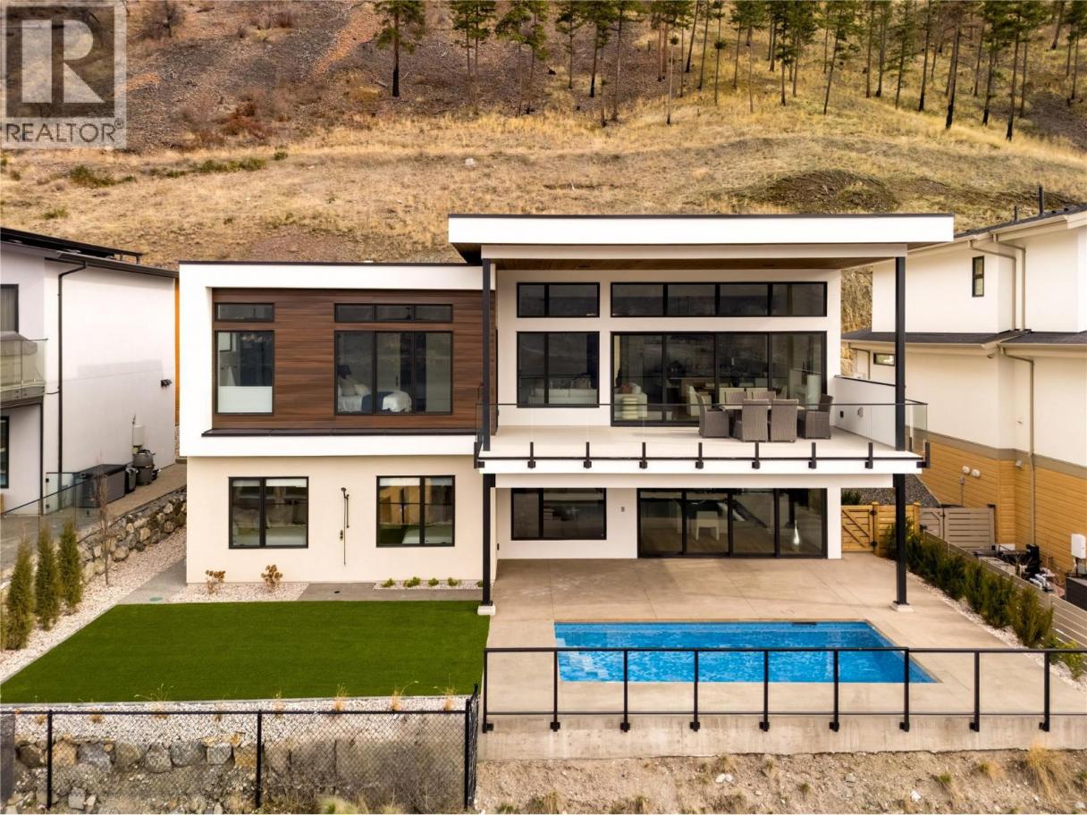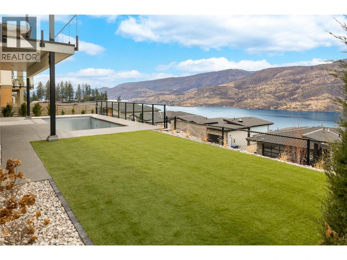Stunning lake views from this newly completed home on the most private street in North Clifton Estates. This 4300 square foot luxury home features a salt water pool with an auto cover, yard space, a 2.5 car garage, plus driveway space for 2 cars. Enjoy the quiet location beside the mountain with endless hiking trails, and yet still be only an 8 minute drive to Kelowna's lively downtown core. Featuring 4 bedrooms, 4 bathrooms and an office, this home is open concept with an elegant and organic modern vibe. There are (2) 4 panel multi slide doors in the upper and lower levels, creating a beautiful indoor/outdoor feel. Features include a climate controlled wine room, 2 fireplaces with custom finishes, a gorgeous lighting package, soaring ceilings and hardwood floors on the main level. Extra luxuries include built in speakers, a security system, epoxy floors in the garage and a 2 zoned heating and cooling system. The lower level rec room has tones of space, plus there is another open space for either a theater room, gym or playroom. Professional landscaping includes a fenced yard, with room for garden boxes or extra space for the dogs and kids, and low maintenance, irrigated plantings with syn lawn- which means no mowing:) (id:6769)