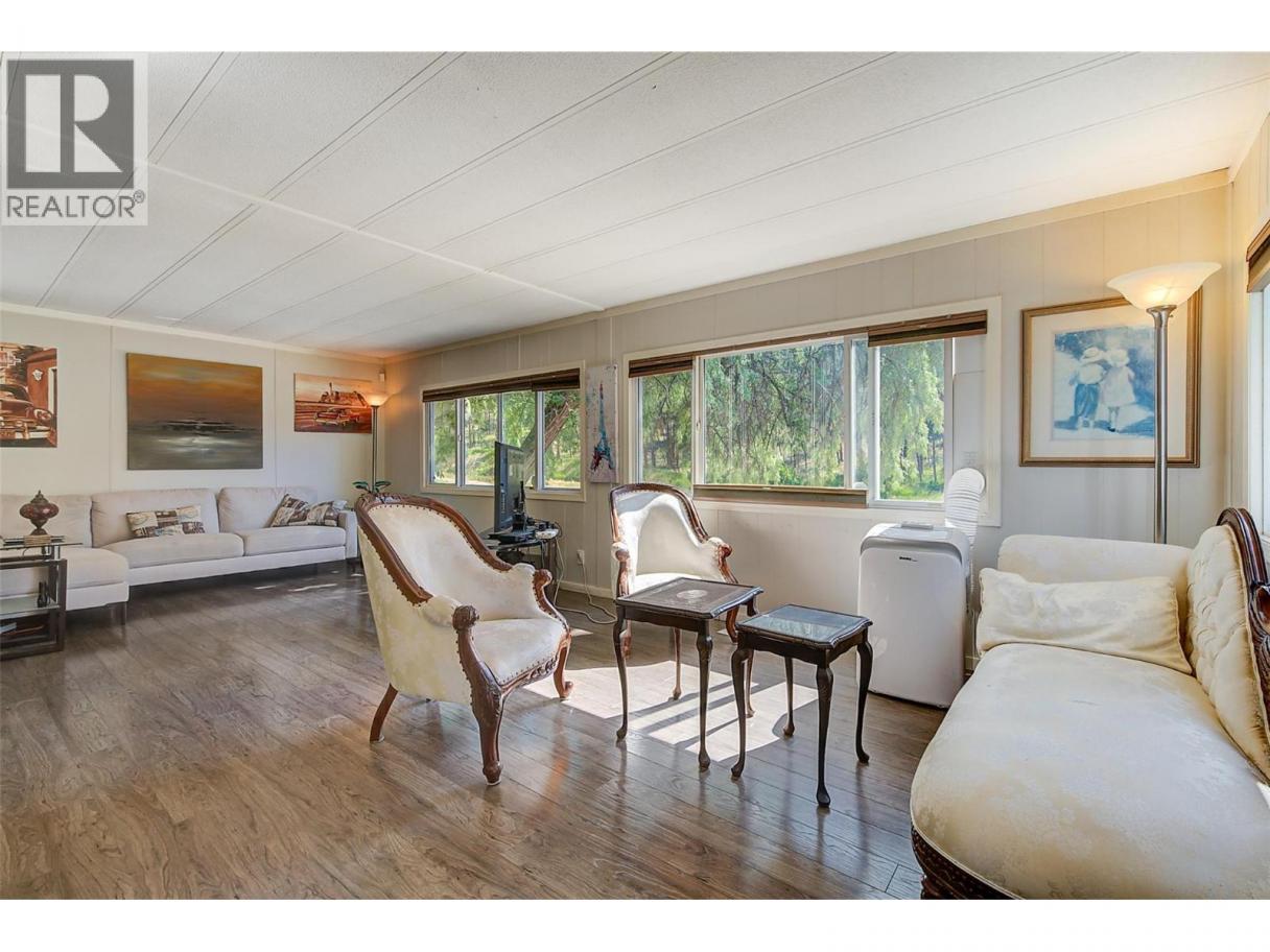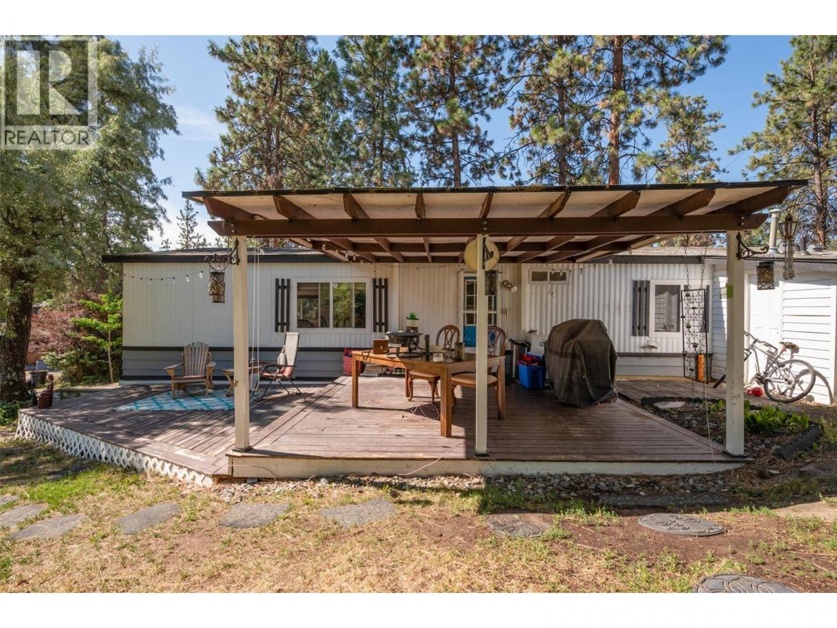 Great Location! This inviting 2-bedroom, 2-bathroom home offers a fantastic opportunity for comfortable and affordable Okanagan living. Step inside this updated (2015) double-wide mobile home, ideally situated in a well managed family park in West Kelowna, where pets are welcome, too! One of the standout features of this home is its generous pad area, creating a truly park-like setting. Image enjoying your mornings on the large covered deck surrounded by green space. This outdoor space is perfect for gardening, dining, relaxing and perfect for kids and pets, too! (One dog and two cats, with park approval and no restrictions on dog breeds or size. No vicious or dangerous dogs allowed. Enjoy the convenience of being just minutes from shopping, restaurants, Okanagan Lake beaches, walking/hiking trails, wineries, a golf course, transit, schools. All the amenities for everyday life. Call today to book a tour and make your move. (id:6769)