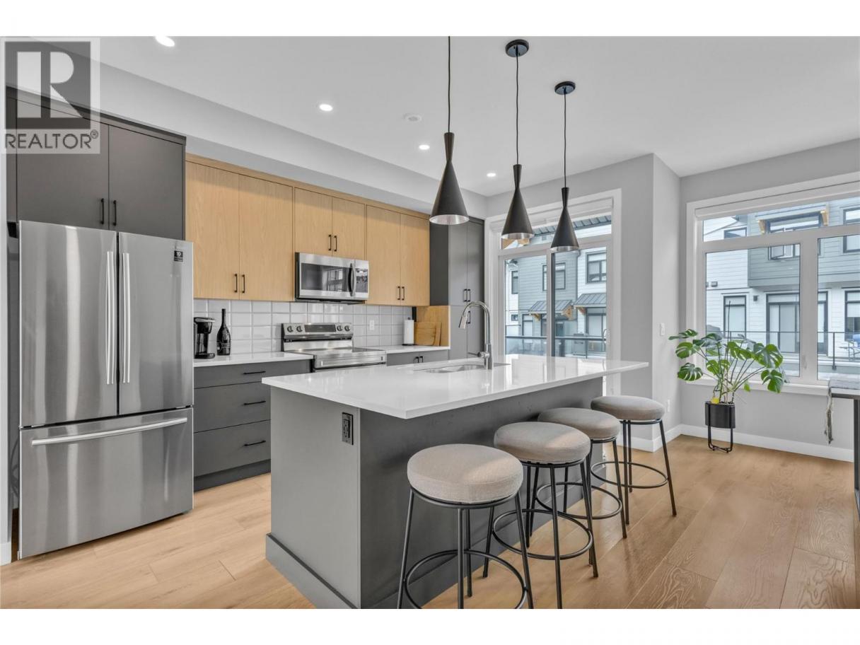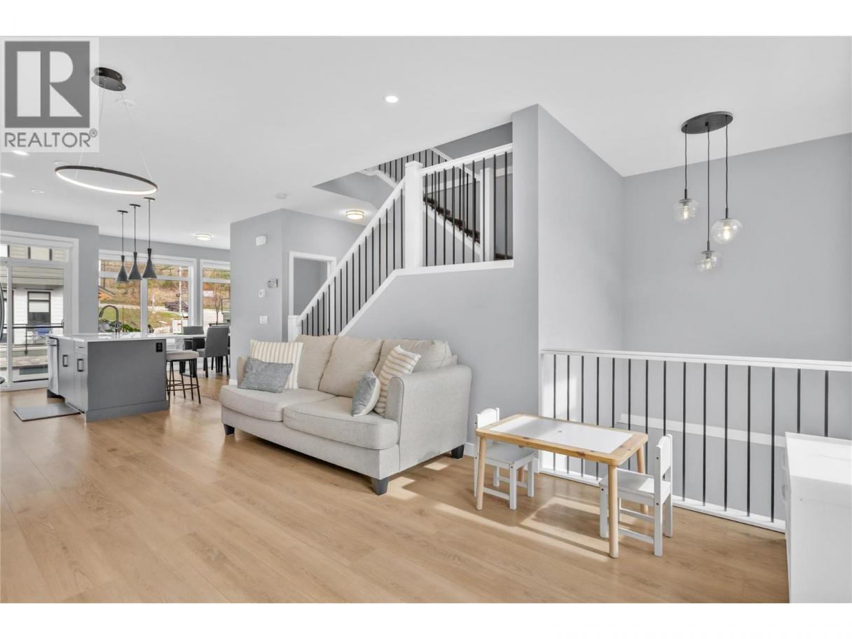 Tucked away in family-friendly Glenmore, this beautifully maintained three bedroom plus den, two and a half bath townhome offers the perfect blend of comfort, functionality, and lifestyle. Positioned away from Clifton and Cara Glen Court, this home enjoys a peaceful setting while backing directly onto the complex’s green space—ideal for relaxing, entertaining, or keeping an eye on the kids from your private patio, complete with a gas hookup. The thoughtfully designed layout features a bright multi-use flex room on the lower level—perfect as a home office, gym, or guest space—with large windows and direct access to the green area and entry. The main living area extends seamlessly to a covered deck and spacious terrace, creating a calm outdoor retreat. Upstairs, the main suite captures beautiful mountain views, adding to the home’s tranquil feel. Pride of ownership shines throughout—this four year-old home is in excellent condition, smoke-free and pet-free since new. A rare highlight is the oversized driveway with parking for two full-sized vehicles in addition to the double garage—an uncommon and highly convenient feature in the neighbourhood. An exceptional opportunity to own a quiet, well-located home in one of Kelowna's most desirable communities. Wonderful location! Only minutes from Costco, Orchard Park Shopping Centre, Downtown Kelowna, the Cultural District, Parks and Beaches, UBCO, the Airport, and more, but away from the hustle and bustle of town. (id:6769)