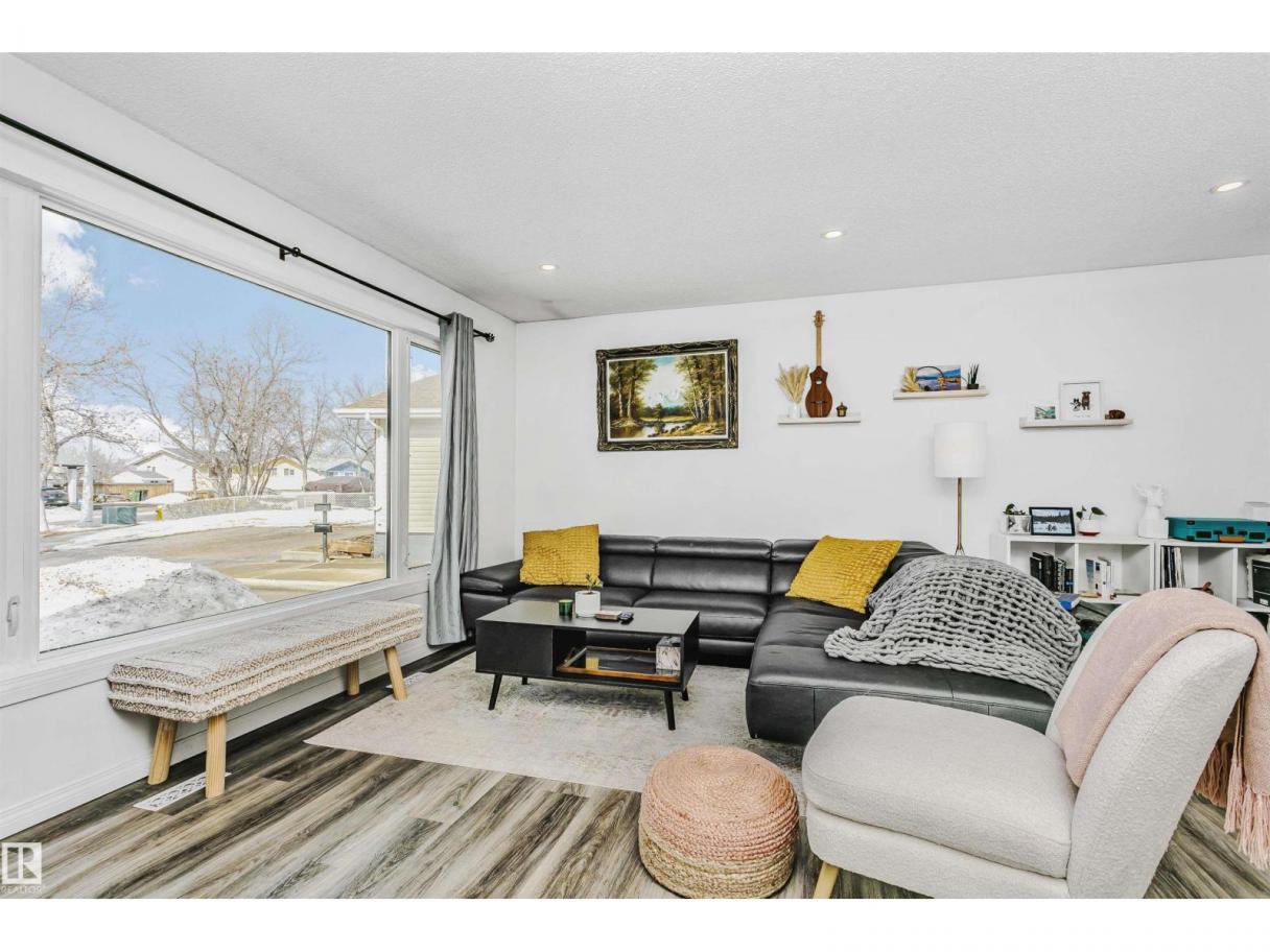 SPACIOUS 1,155 sq. ft. bungalow offering 4 bedrooms, 3 bathrooms, NUMEROUS UPDATES & a FULLY FINISHED BASEMENT! Lovingly maintained with newer shingles & vinyl siding for lasting curb appeal. The beautifully upgraded kitchen features abundant cabinetry, new countertops, backsplash, floating shelves & updated hardware—perfect for both everyday living & entertaining. Newer vinyl plank flooring flows throughout, complemented by new interior & closet doors, updated bathrooms, new lighting & a new HWT. The primary suite offers a custom built-in wardrobe & 2 pc ensuite. The fully finished basement features a large family room with a cozy freestanding wood pellet stove—ideal for relaxing or gathering. Enjoy a professionally landscaped, fully fenced yard backing onto green space for added privacy. Close to schools, hospital, recreation & shopping—Welcome Home! (id:6769)