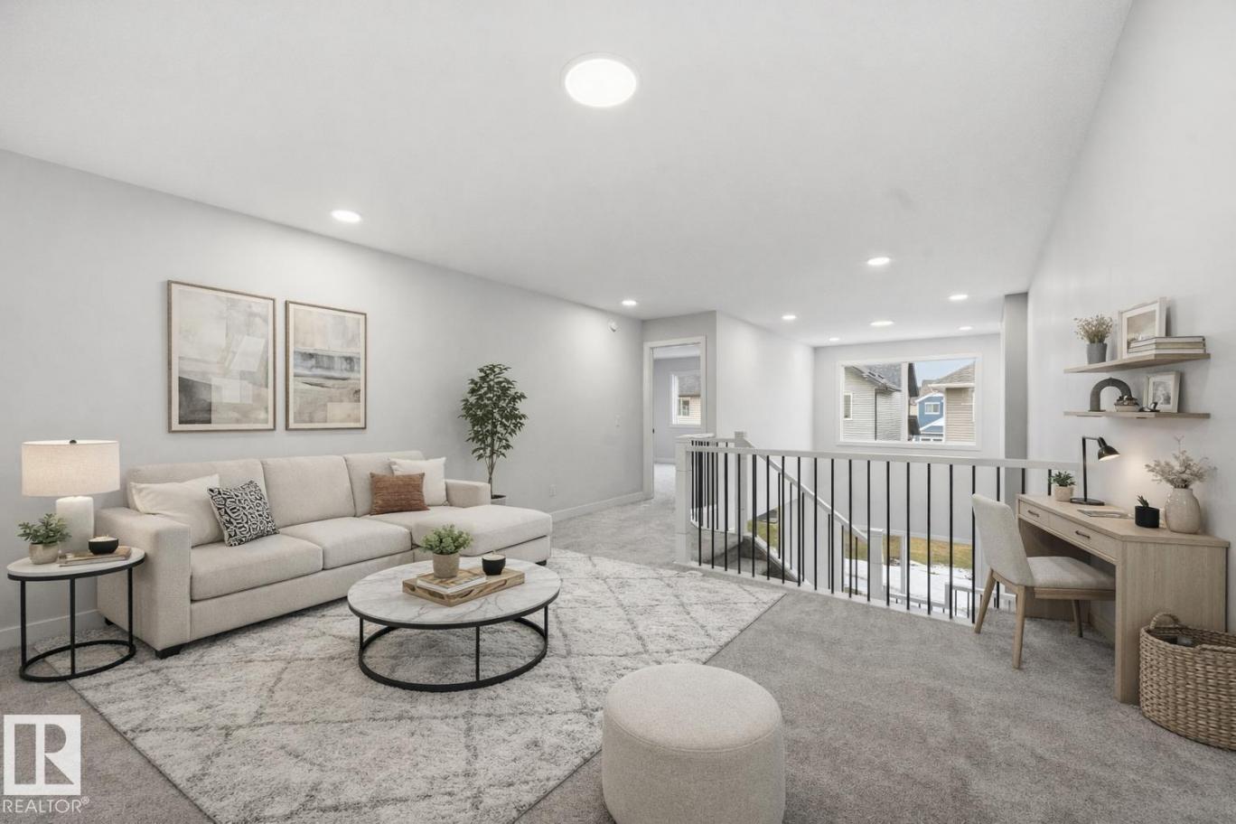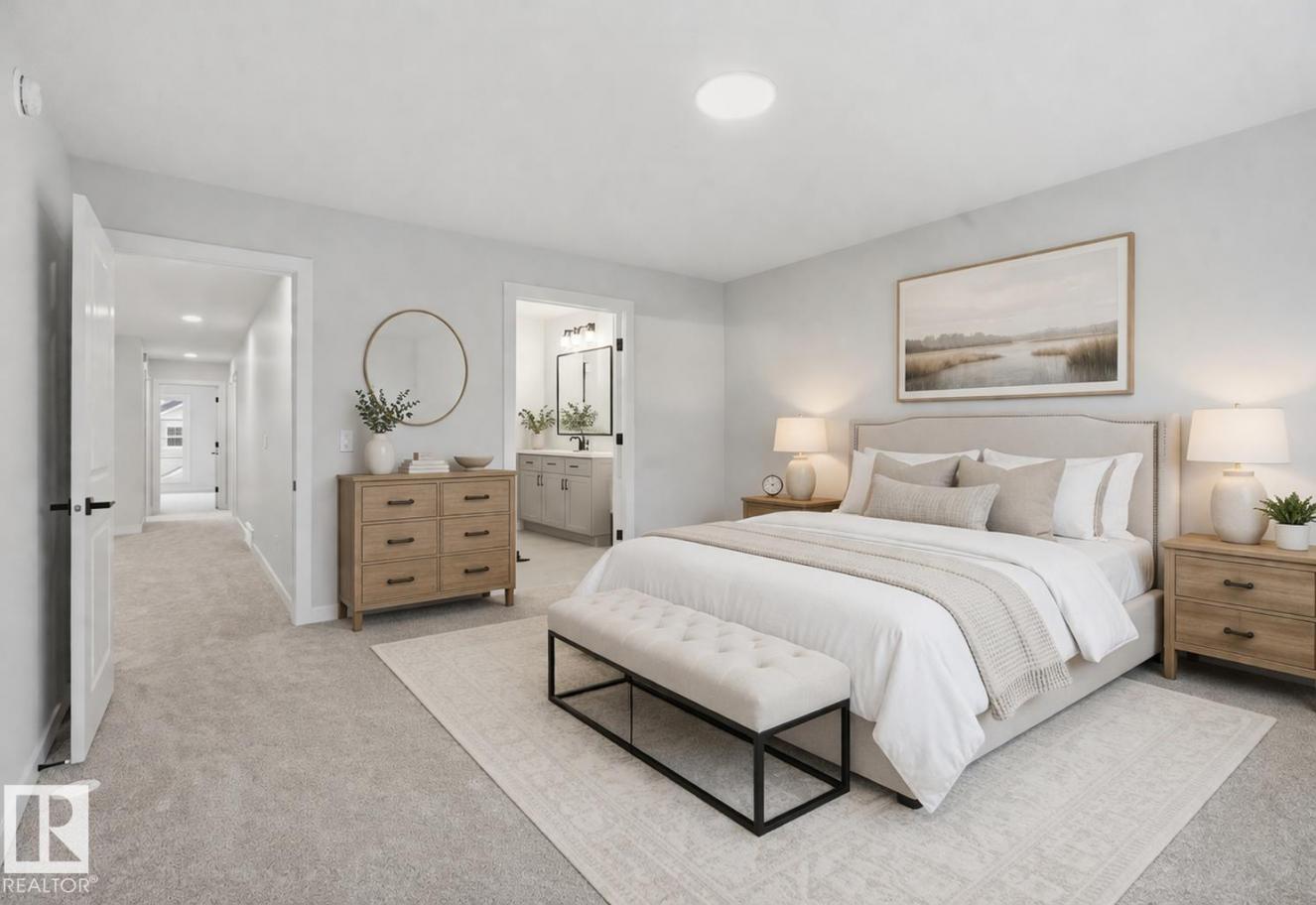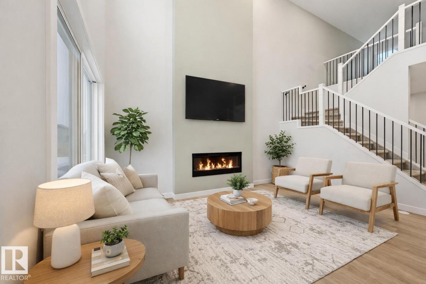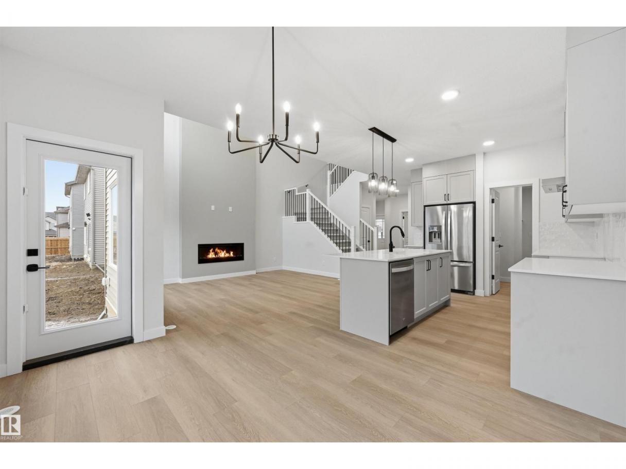 Quality built by Landmark Homes (with nearly 50 years experience in Edmonton)! Boasting nearly 2,100sf this popular floor plan includes a MAIN FLOOR BEDROOM & FULL BATH plus 3 bedrooms upstairs. Bright interior with OPEN-TO-BELOW living room with floor-to-ceiling feature wall & electric fireplace. Kitchen upgrades include full height & soft-close cabinetry, counter-to-cabinet backsplash & a walk through pantry. Plush carpeted 2nd level w/ bonus room, laundry room & large primary retreat with 5pc ensuite & walk-in closet. Features include: SIDE ENTRANCE, 9' ceilings, ENERGY STAR STAINLESS STEEL APPLIANCES including washer & dryer, LVP flooring, cast iron spindle railings & more. With a focus on innovative & energy efficient homes, find features such as tankless hot water heater, high velocity heating system, heat recovery ventilator, 3-stage air purification system, triple pane windows, R50 insulation, spray foam in garage, frost wall in basement & more. See the difference, feel the difference! (id:6769)