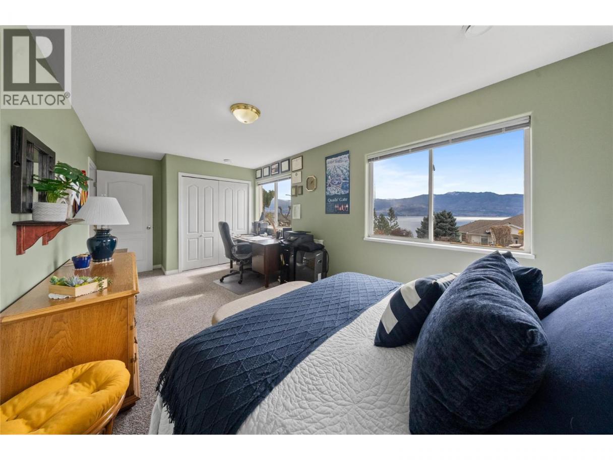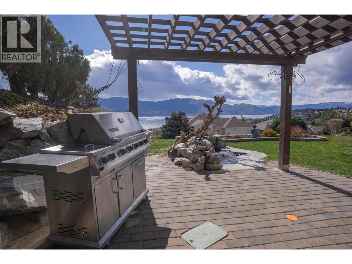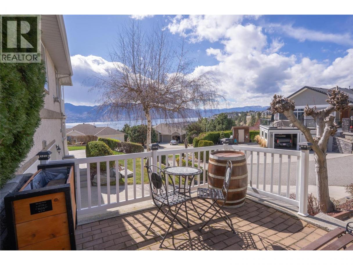 First time offered for sale - Meticulously maintained 4 bedroom home with outrageous views of the Lake! Perched perfectly, this south-facing corner lot showcases the Okanagan like few others can. Upstairs, the home features 3 bedrooms, including the Primary Bedroom with 4-piece ensuite. There are also two living rooms, a formal dining room and kitchen all complete with stunning views. The home has been lovingly cared for and features granite counters in the kitchen and all 3 bathrooms. The second living room off the kitchen spills out onto your covered patio- taking in the view with a glass of wine has never been easier! Downstairs features another rec/living room (Which could easily be a 5th bedroom if desired), oversized bedroom (currently functioning as an office and guest bed room), full bathroom, laundry and a massive storage room which could also be used as a play room or workout area. Also downstairs is access to the attached double car garage. The mechanical has been updated and features a new furnace, heat pump and hot water tank! Outside, the grounds are equally well-maintained. The strategically located hot tub at the rear provides amazing views that only this unique corner-lot can provide. This one is the whole package, book your showing today. (id:6769)