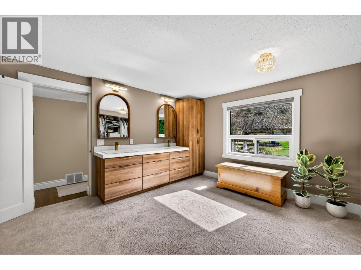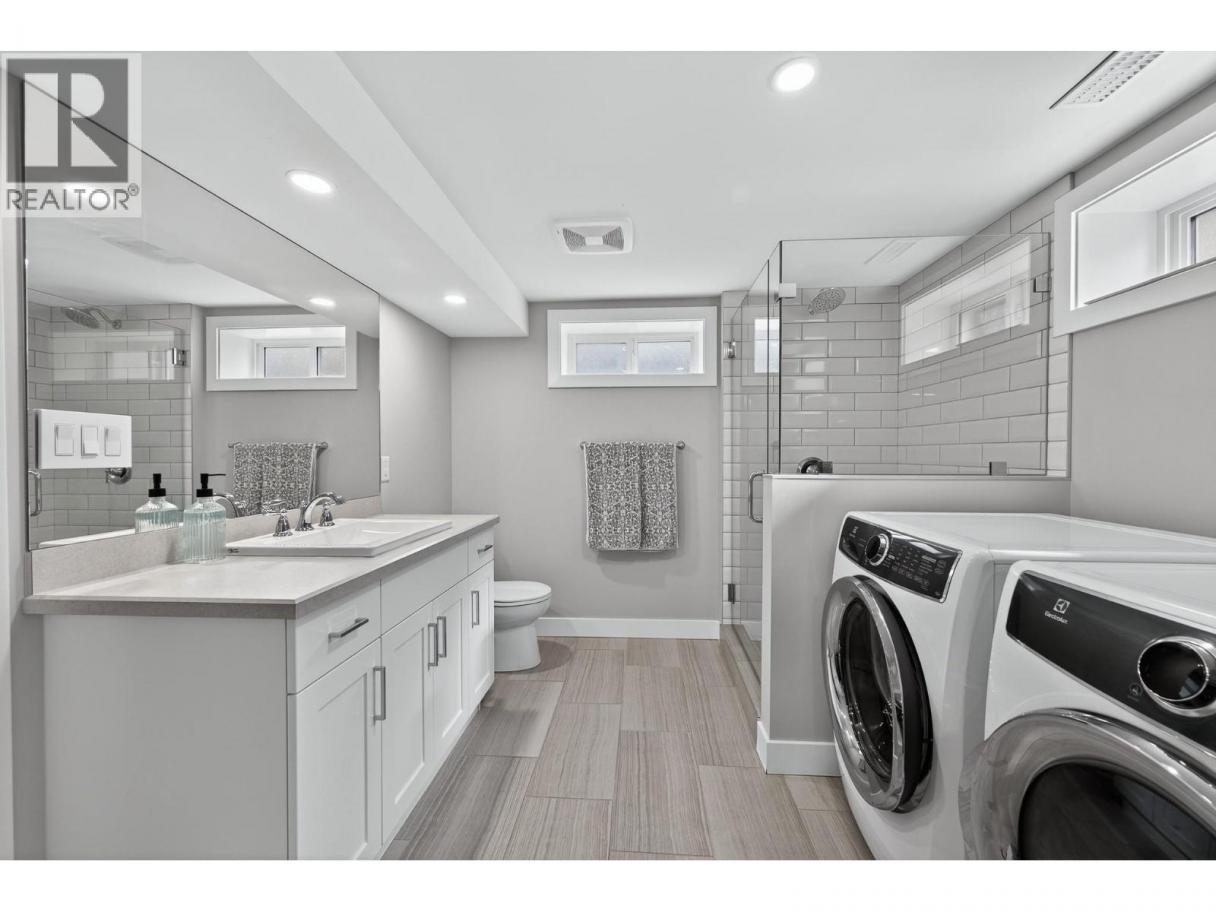 This desirable Valleyview 4-bedroom, 2-bath home offers nearly 2,000 sq. ft. of living space and features original hardwood flooring throughout the bright main floor, which includes a welcoming living room and a well-appointed kitchen with stainless steel appliances, ample storage, and a cozy dining nook with access to the fully fenced yard. The spacious primary bedroom provides double sinks for added convenience and abundance natural light with windows on either side of the room. Completing the main floor are two additional bedrooms and a 4-piece bathroom. The fully finished basement includes a large rec room with an electric fireplace and built-in storage, a generous laundry room with a 3-piece bathroom featuring a custom tiled shower and heated tile floors, plus a dedicated wine cellar. Outside, enjoy a beautifully landscaped backyard with a pergola-covered patio, terraced garden beds, raised boxes, and three storage sheds. Recent updates include a new roof, eavestroughs, doors, windows, siding, and exterior paint, along with a fenced deer-proof yard, underground sprinklers, upgraded electrical, and a 7-year-old furnace, hot water tank, and A/C. This move-in-ready home blends charm, comfort, and modern convenience in a fantastic location. All measurements approx. (id:6769)