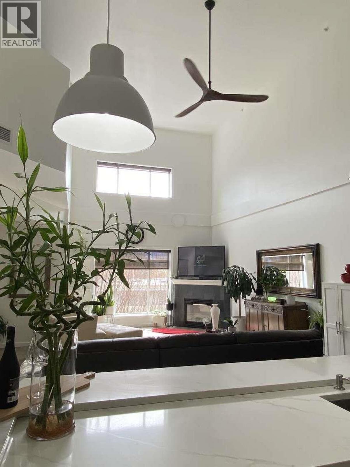 *** For more information, please click Brochure button. *** Prime 2-storey top floor condo spanning an impressive 2007 sq. ft. in a boutique style 3-storey 27 unit building. This rare gem offers unparalleled privacy, abundant natural light with southern exposure and a sense of spaciousness rarely found in downtown Kelowna. Extensive updated renovations that include fresh paint, sleek vinyl plank flooring, modern doors, window blind coverings, modern light fixtures, central vacuum system, built in Murphy bed with pantry cabinets, bonus storage room on the second level with 20' of pantries floor to ceiling and 12' of closet storage. Generous kitchen spanning 10' x 18' of cabinets with a 9' island boasting new appliances, cabinet hardware, soft close doors & drawers, sink and faucet, counter island with additional new cabinets, backsplash and hood fan. Soaring 20' ceilings that create a dramatic open concept flowing into the expansive living area - perfect for entertaining or relaxing. An indulgent 1 bedroom + 3 full bathroom layout, ideal for those seeking luxurious space. 12' x 9' generous sized balcony with natural gas BBQ hook up. Mechanical room is located on the balcony complete with a new A/C coil. In-suite new washer & dryer. Location is everything here, steps from downtown restaurants, entertainment, cultural scene and the lake. Very conveniently close to Kelowna General Hospital. Enjoy beaches, boardwalks parks, bike paths and trails-all without needing a car. (id:6769)