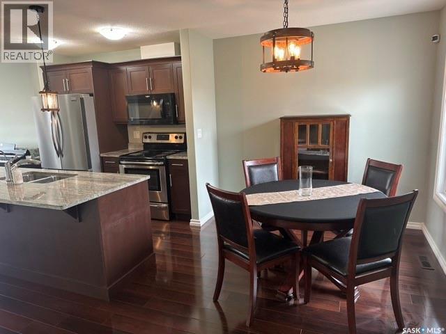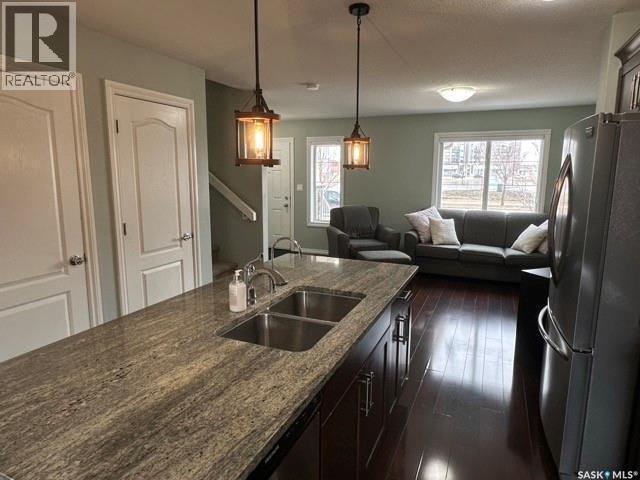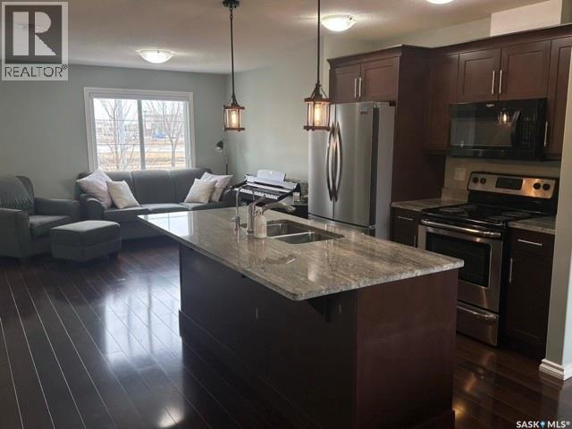 Check out this fabulous 2 storey 2 bedroom townhouse with single attached garage located in Harbour Landing with easy access to all amenities. Step into the back entry from the attached garage and see the open great room design and a convenient 2 piece bathroom to the side. The kitchen features dark stained maple cabinets with beautiful granite countertops featuring a large island with breakfast bar and a convenient pantry. The kitchen also comes complete with fridge, stove, over the range microwave and a built in dishwasher. The great room has tons of natural light due to the large windows. The extra large primary bedroom on the second floor has a large walk in closet and 3 piece ensuite with shower. The large second bedroom has a walk thru closet to its own private 4 piece bathroom. Completing the second floor is convenient stacked laundry. The basement is unfinished and features two large windows and rough in plumbing for future bathroom. This home is truly a pleasure to show. For a virtual walkthru please click on the link or view in you browser https://unbranded.youriguide.com/4542_harbour_landing_dr_regina_sk/ (id:6769)