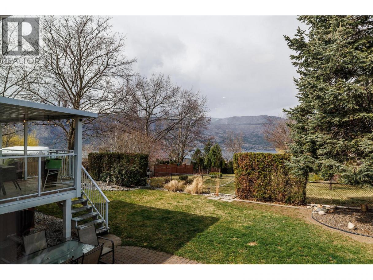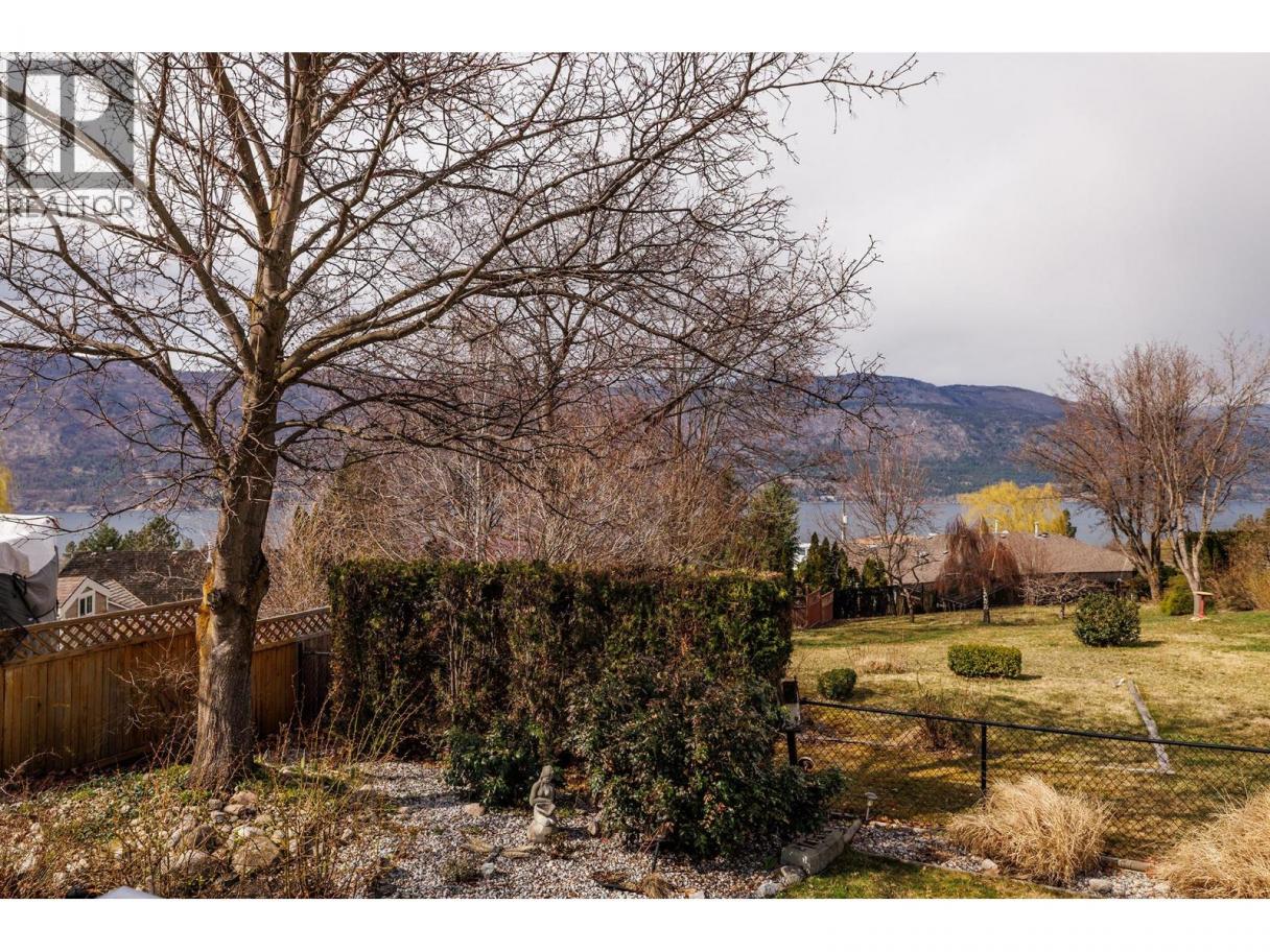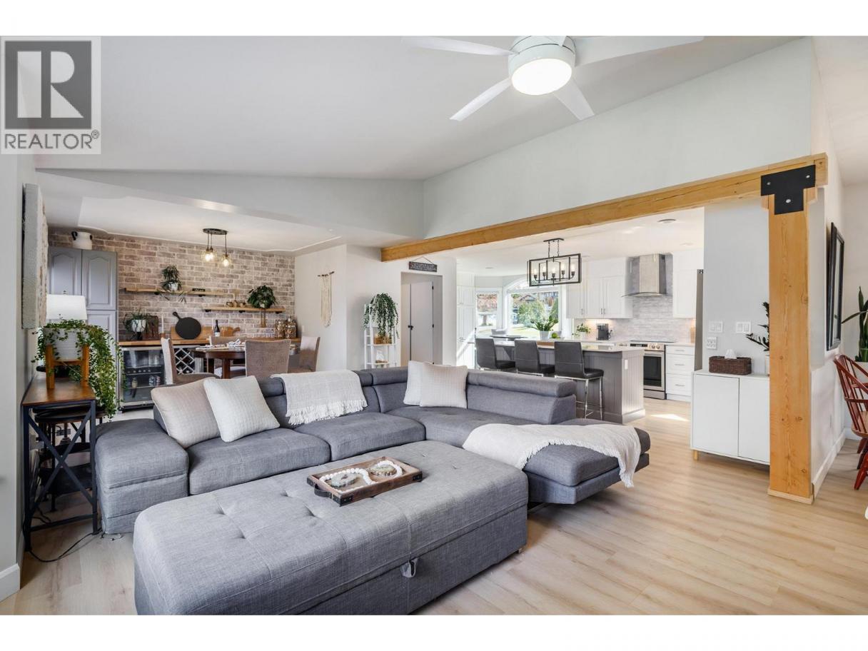 Beautifully updated rancher set on a quiet cul-de-sac on a flat lot with views of Okanagan Lake and ample parking. Vaulted ceilings in the living and dining areas create a bright, open feel with an elevated sense of space. The recently renovated kitchen is a standout, featuring new appliances, quartz countertops, a large pantry, a window bench with built-in storage, and an oversized island with seating. A stylish wine and coffee bar with both a wine fridge and a beverage fridge adds to the home’s appeal. Durable LVP flooring runs throughout. The main level offers three bedrooms and two beautifully renovated bathrooms, while the lower level provides additional flexibility with a bedroom, rec room, and flex space—ideal for a home gym or den. With a separate rear entry and existing plumbing access in the workshop area, the home presents excellent suite potential. Furnace (2009), A/C (2005), hot water tank (2020), & roof (2005). Fenced yard with chain link installed in 2021 adds privacy. Located just 15 minutes from Kelowna International Airport and within walking distance to renowned wineries including Ex Nihilo Vineyards, Arrowleaf Cellars, Gray Monk Estate Winery, Intrigue Wines, & O'Rourke's Peak Cellars. Enjoy easy access to Jack Seaton Park and nearby Davidson Road Elementary School, making this an ideal home for both lifestyle and convenience. (id:6769)