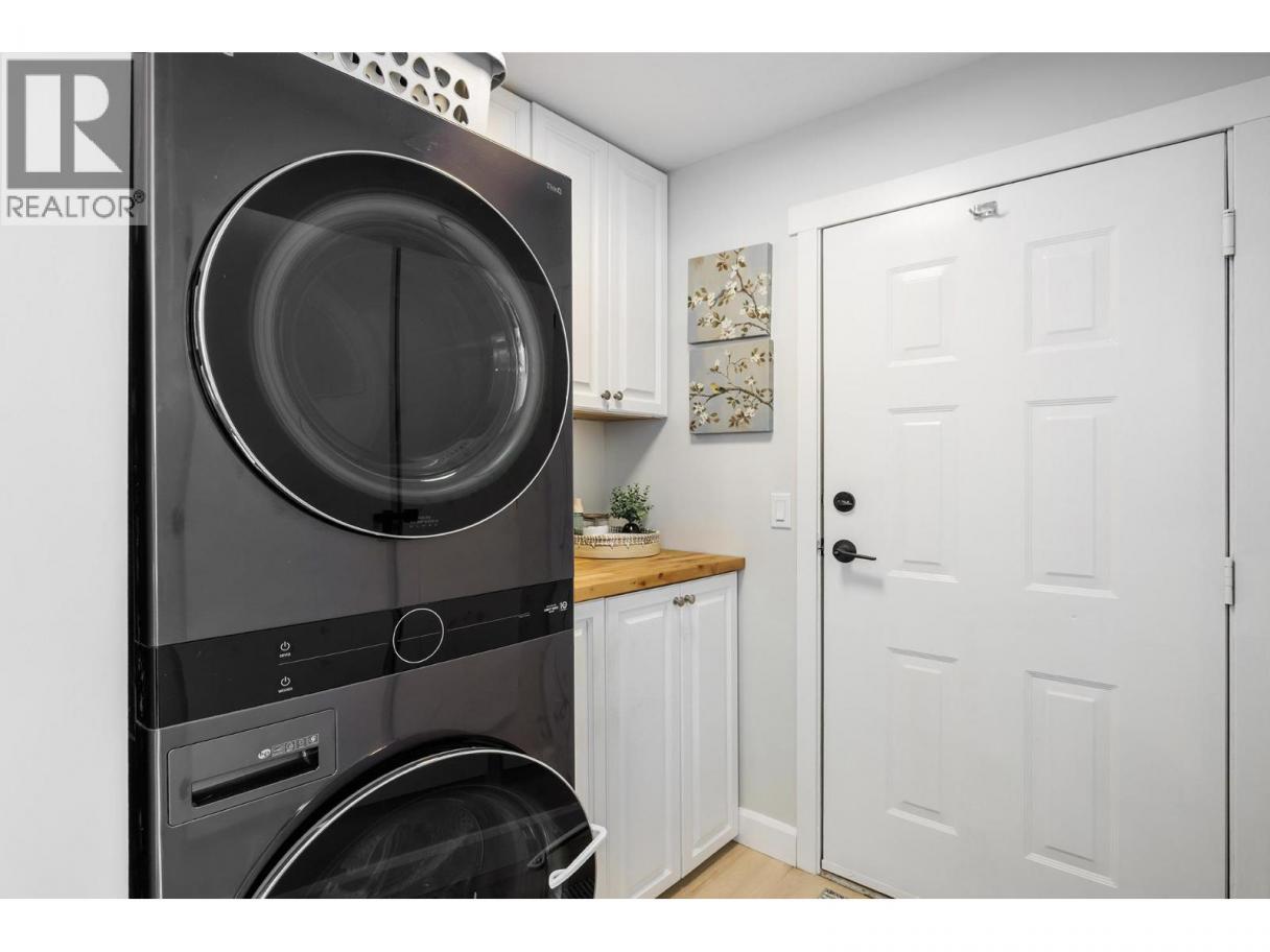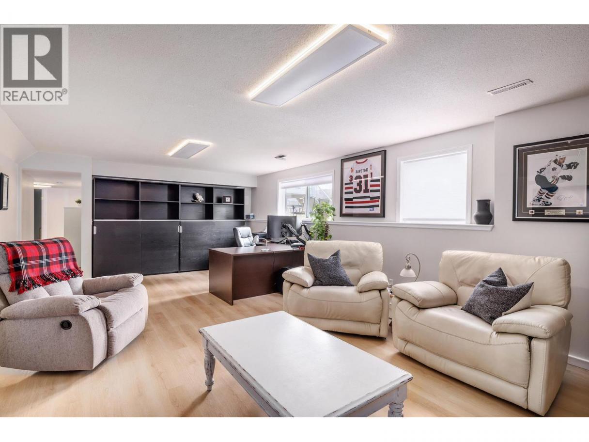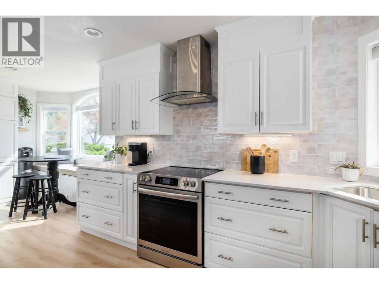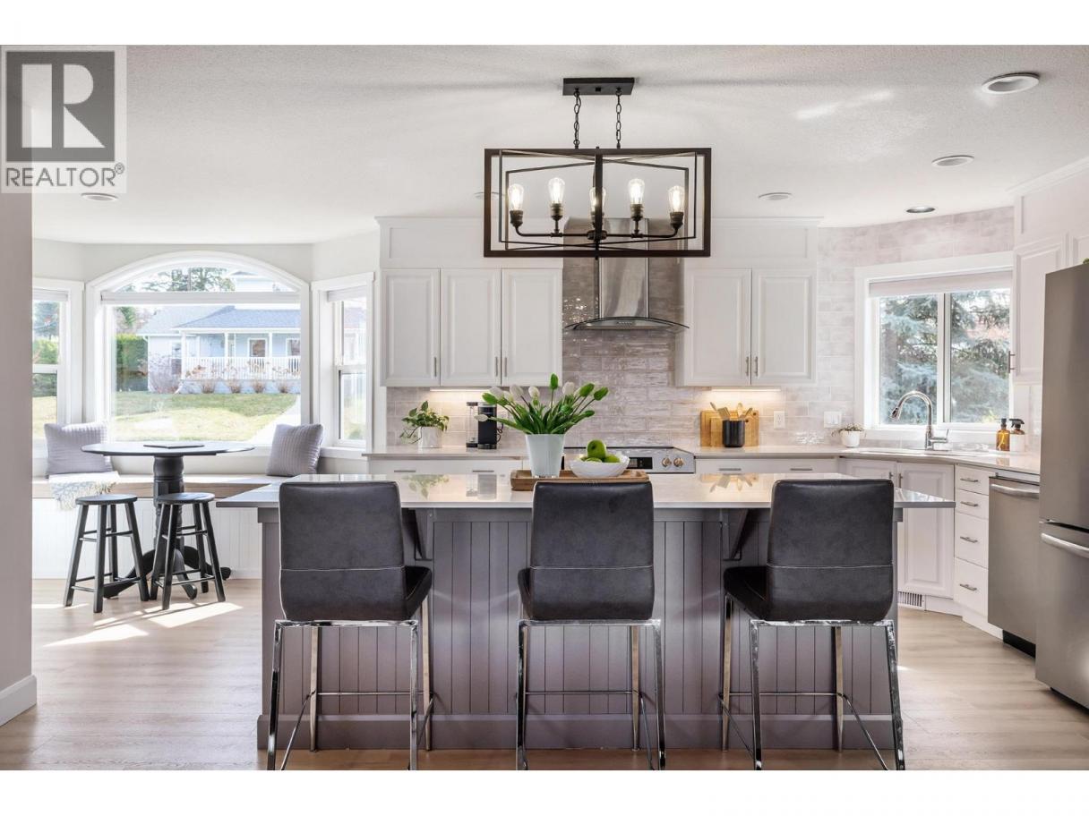 Beautifully updated rancher set on a quiet cul-de-sac on a flat lot with views of Okanagan Lake and ample parking. Vaulted ceilings in the living and dining areas create a bright, open feel with an elevated sense of space. The recently renovated kitchen is a standout, featuring new appliances, quartz countertops, a large pantry, a window bench with built-in storage, and an oversized island with seating. A stylish wine and coffee bar with both a wine fridge and a beverage fridge adds to the home’s appeal. Durable LVP flooring runs throughout. The main level offers three bedrooms and two beautifully renovated bathrooms, while the lower level provides additional flexibility with a bedroom, rec room, and flex space—ideal for a home gym or den. With a separate rear entry and existing plumbing access in the workshop area, the home presents excellent suite potential. Furnace (2009), A/C (2005), hot water tank (2020), & roof (2005). Fenced yard with chain link installed in 2021 adds privacy. Located just 15 minutes from Kelowna International Airport and within walking distance to renowned wineries including Ex Nihilo Vineyards, Arrowleaf Cellars, Gray Monk Estate Winery, Intrigue Wines, & O'Rourke's Peak Cellars. Enjoy easy access to Jack Seaton Park and nearby Davidson Road Elementary School, making this an ideal home for both lifestyle and convenience. (id:6769)