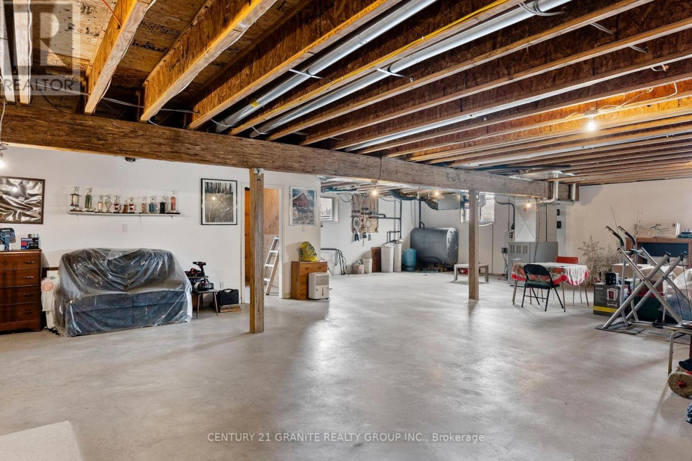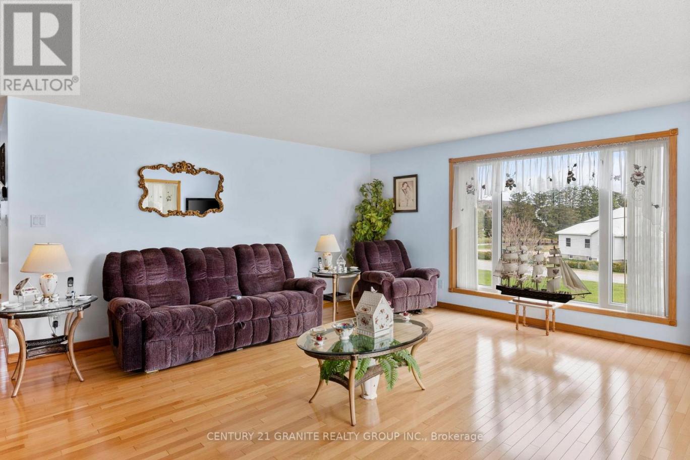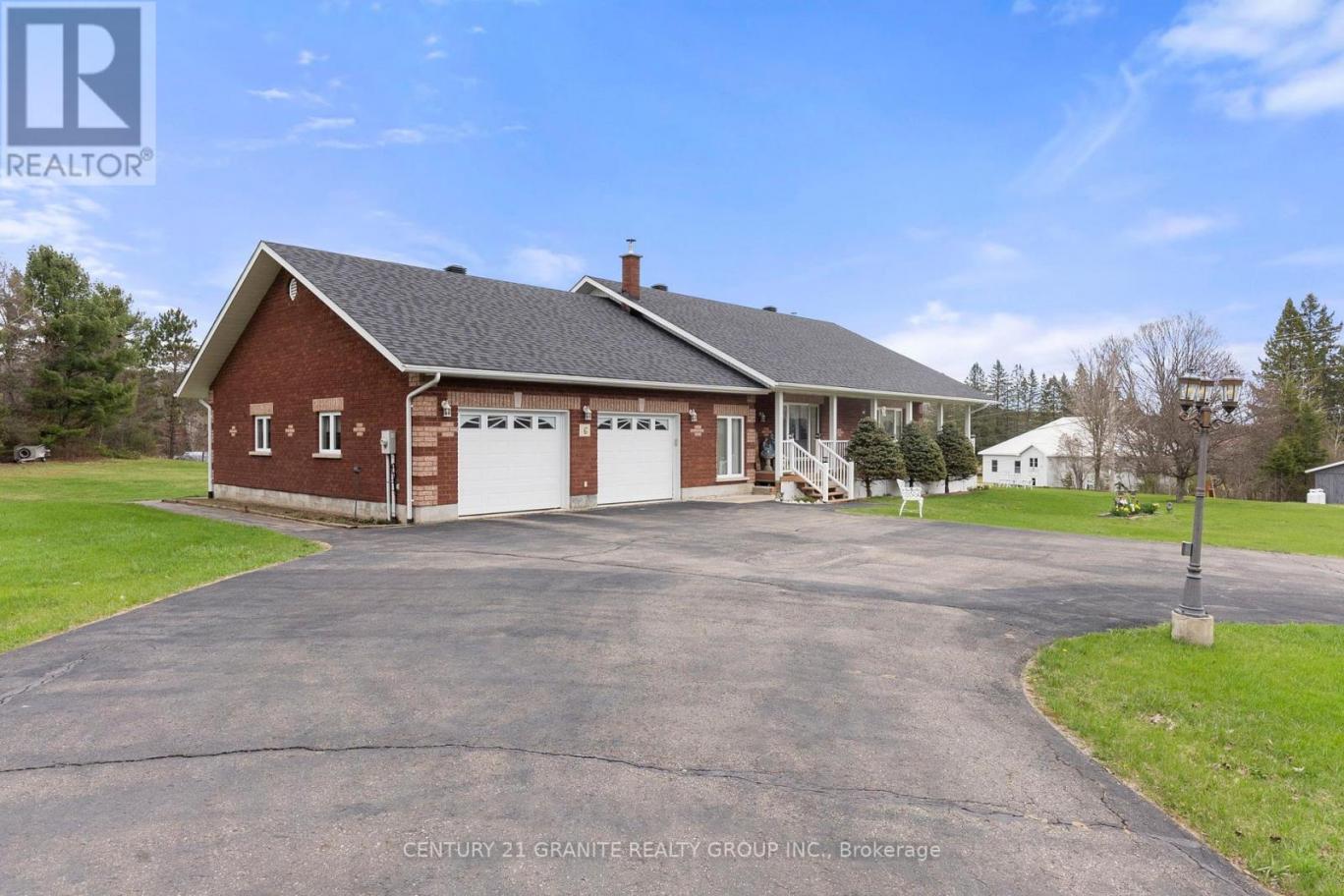 An exceptionally built solid brick home set on 1.3 acres! This stunning property features a rare 4-car attached garage. Nicely situated on a large, level lot with clear views of the manicured lawns and gardens. The property boasts a beautifully paved circular driveway that adds a touch of elegance and convenience. Inside, you'll be greeted by large windows that flood the space with natural light, hardwood floors throughout the main living spaces. The custom kitchen has an expansive dining room for those that love to entertain, while the generous living room offers a cozy retreat for relaxation. With 2 main floor bedrooms and 2 full bathrooms and main floor laundry this home is designed for comfortable living at all stages. Plenty of room to expand in the partially finished full basement that adds and additional 1,400 sq ft of living space complete with a cozy wood stove. Only 20 minutes to the town of Bancroft and just minutes away from crown land, lakes. (id:6769)