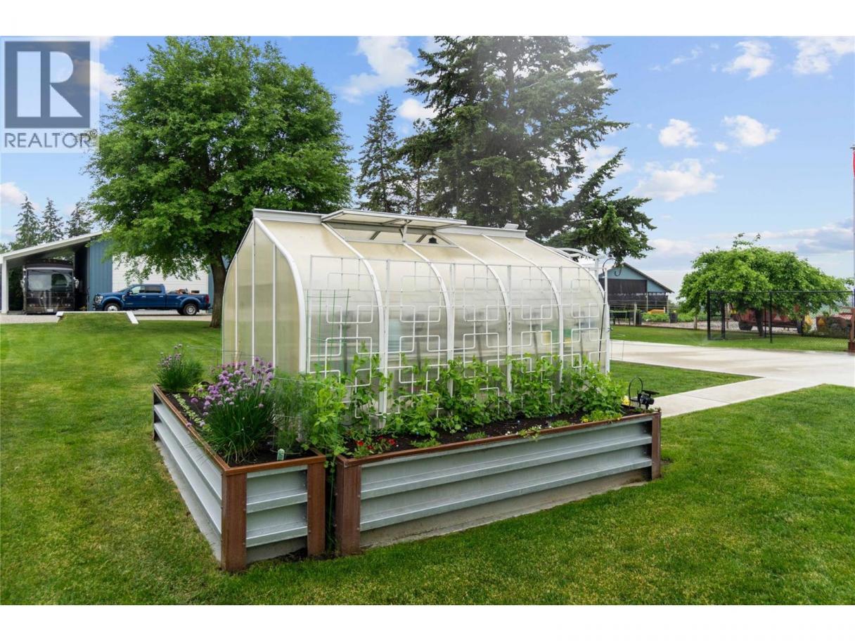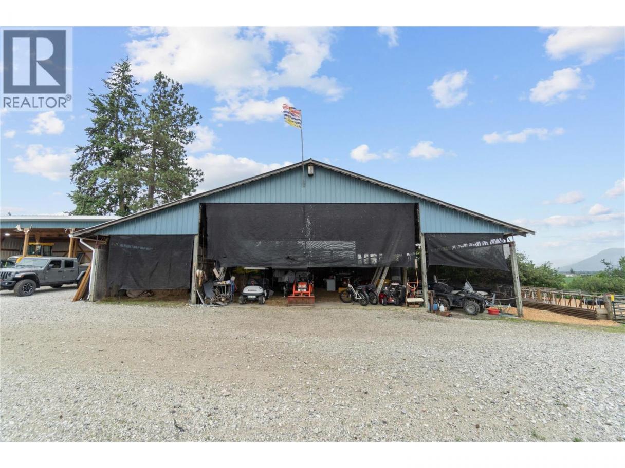 Live the homesteading lifestyle on this meticulously developed private 13-acre estate just minutes to Armstrong & Vernon. Fully fenced, irrigated & remotely gated, this exceptional property combines luxury living with a self sustaining farmstead. The renovated 3 bed, 2 bath home features geothermal heating/cooling, solar power, new roof, windows & dream kitchen. The master offers a spa-like ensuite and walks right out to a covered patio with saltwater hot tub & valley views. Natural gas fireplace, mini-splits & geo thermal heating and cooling ensure year-round comfort. 50 GPM well, underground irrigation, 3000 gal cistern, 6KW solar (house & shop), EV charging & extensive electrical upgrades. Extensive food production includes orchards (plum, pears, cherries, peaches, apples) , berries (Strawberries, raspberries, blueberries), grapes, asparagus, raised beds, trellised gardens & greenhouse with power/water. Equestrian & farm-ready with a 10-acre hay field in production, cross fencing, shelters, auto waterers, heated chicken coop, mobile chicken tractor, walk-in meat cooler, pole barn, hay storage & 40'x44' heated shop (natural gas + wood). Private forest, landscaped grounds, deer-frequented fields, security system, LED lighting & fibre Optic + Starlink internet complete this turnkey lifestyle property. Zoned for second residence. 40ft covered RV parking with plug in. Set up so you hardly need to go to town. Comes with a newer fully hooked up, winter ready RV trailer also. (id:6769)